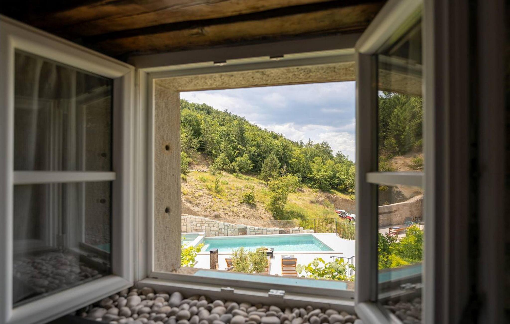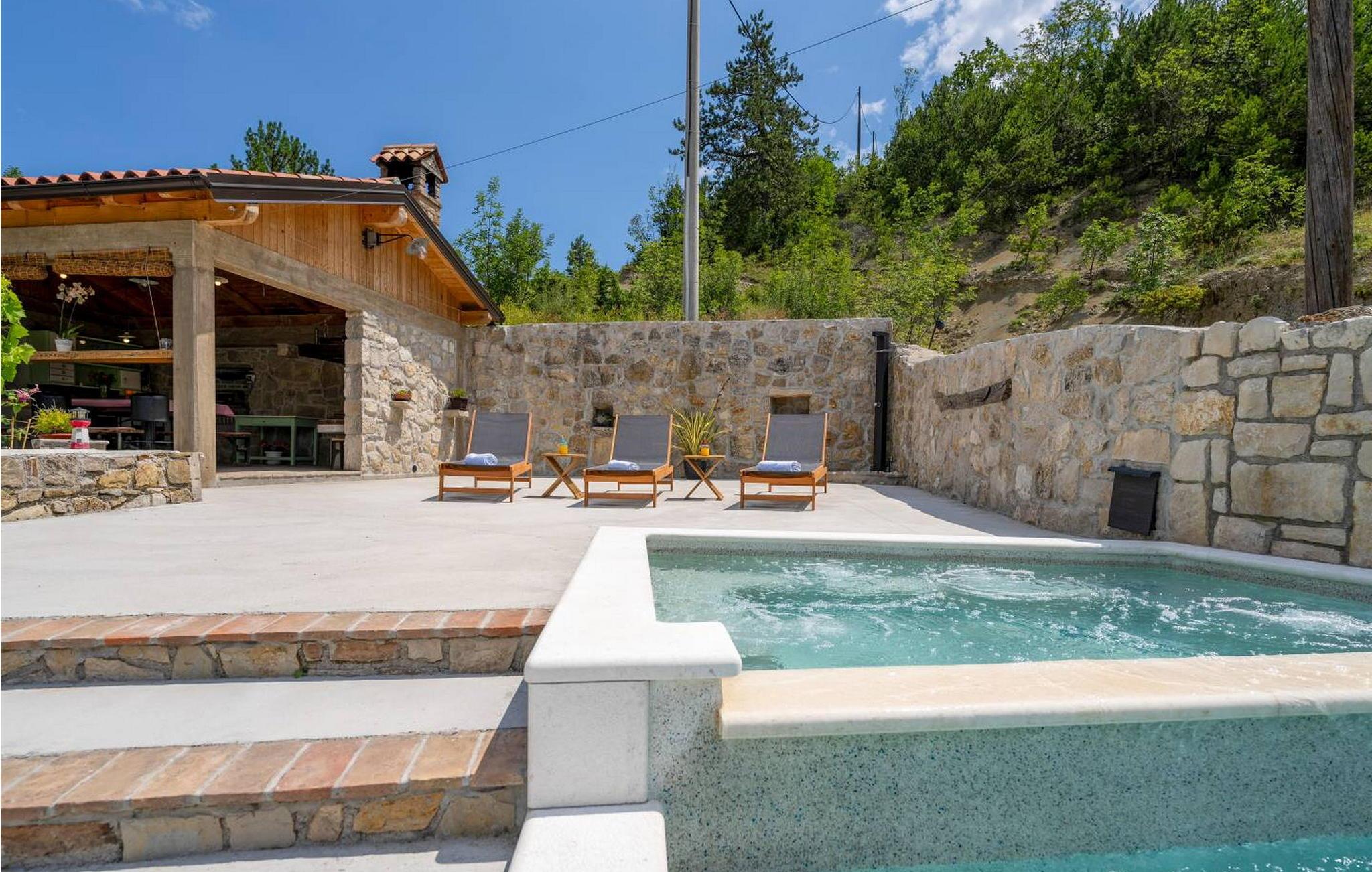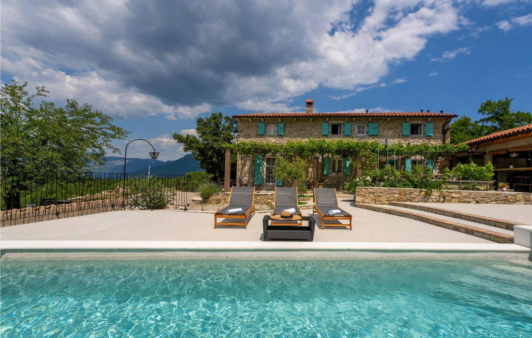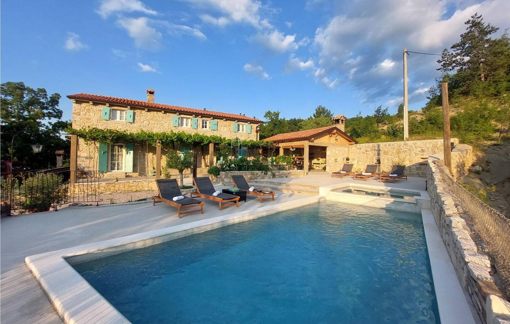 Casa Zamarija er et feriehus til 7 personer med swimmingpool i en meget rolig beliggenhed nær Labin. Dette hus er et typisk istrisk stenhus, renoveret med en masse opmærksomhed og kreativitet, og hver detalje er et rigtigt lille kunstværk. Labin ligger kun 3 km derfra, mens Rabac og talrige velholdte strande ligger 6 km derfra. I den rummelige have kan gæsterne nyde en swimmingpool med hydromassage og børnebassin, liggestole til solbadning, et overdækket sommerkøkken med brændeovn, en udendørs bruser og flere parkeringspladser. Huset er omgivet af grønne områder og er ideelt til en afslappende ferie i absolut fred. Casa Zamarija består af en stueetage, hvor der er en stue, en spisestue, et fuldt udstyret køkken og et badeværelse. På husets første sal er der tre soveværelser med hvert sit badeværelse. Klimaanlægget til værelserne på første sal er placeret på gangen. To værelser har en dobbeltseng og et værelse har tre senge. Bemærk venligst, at denne ejendom ikke accepterer ungdomsgrupper eller polterabends. En ungdomsgruppe på denne ejendom er en gruppe bestående af personer på 26 år eller derunder. Book ikke denne ejendom, hvis du er en ungdomsgruppe eller et polterabend, da din reservation vil blive afvist efter booking, hvilket kan omfatte ved ankomst til ejendommen eller under dit ophold, og du vil ikke blive refunderet.