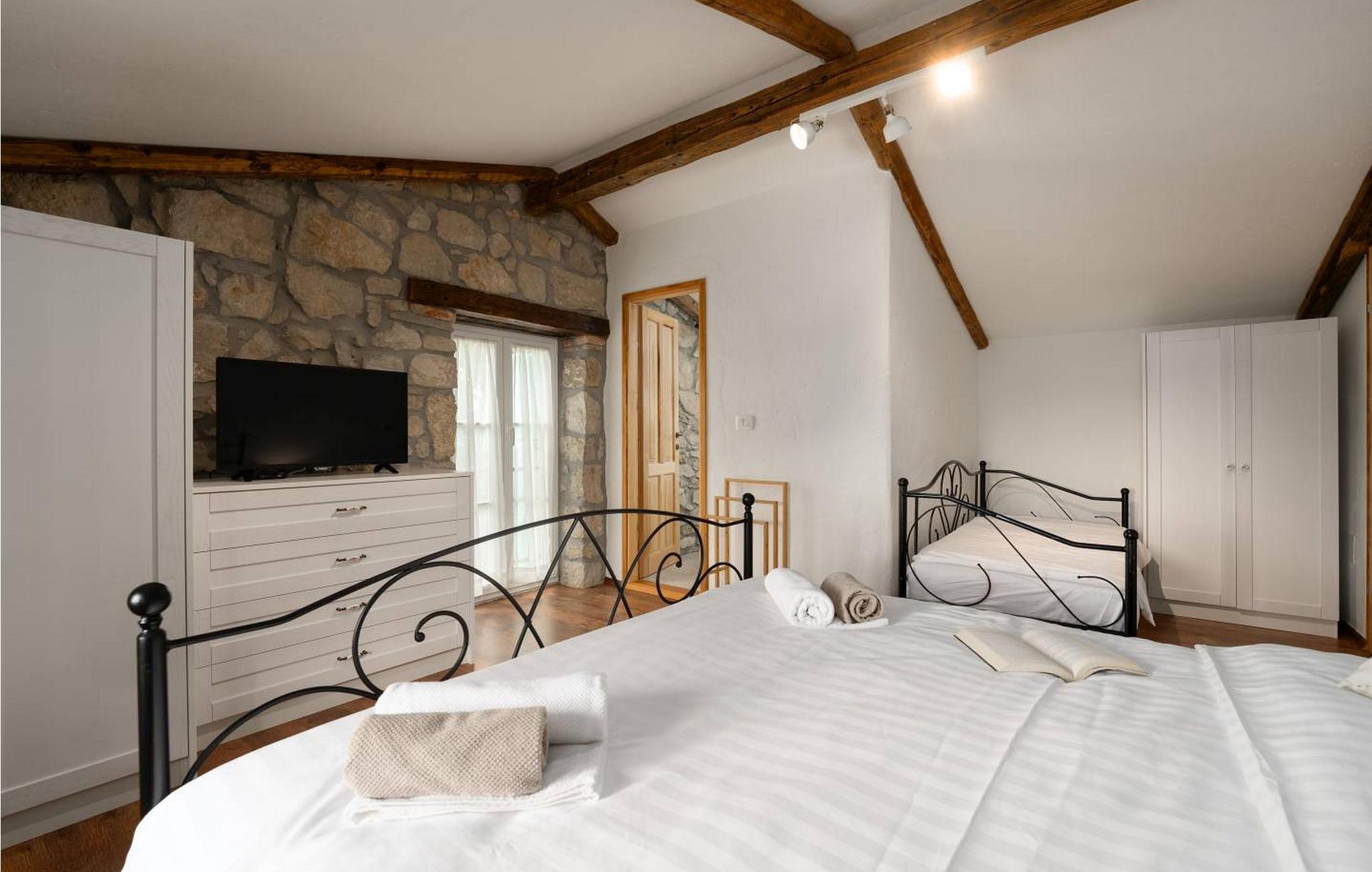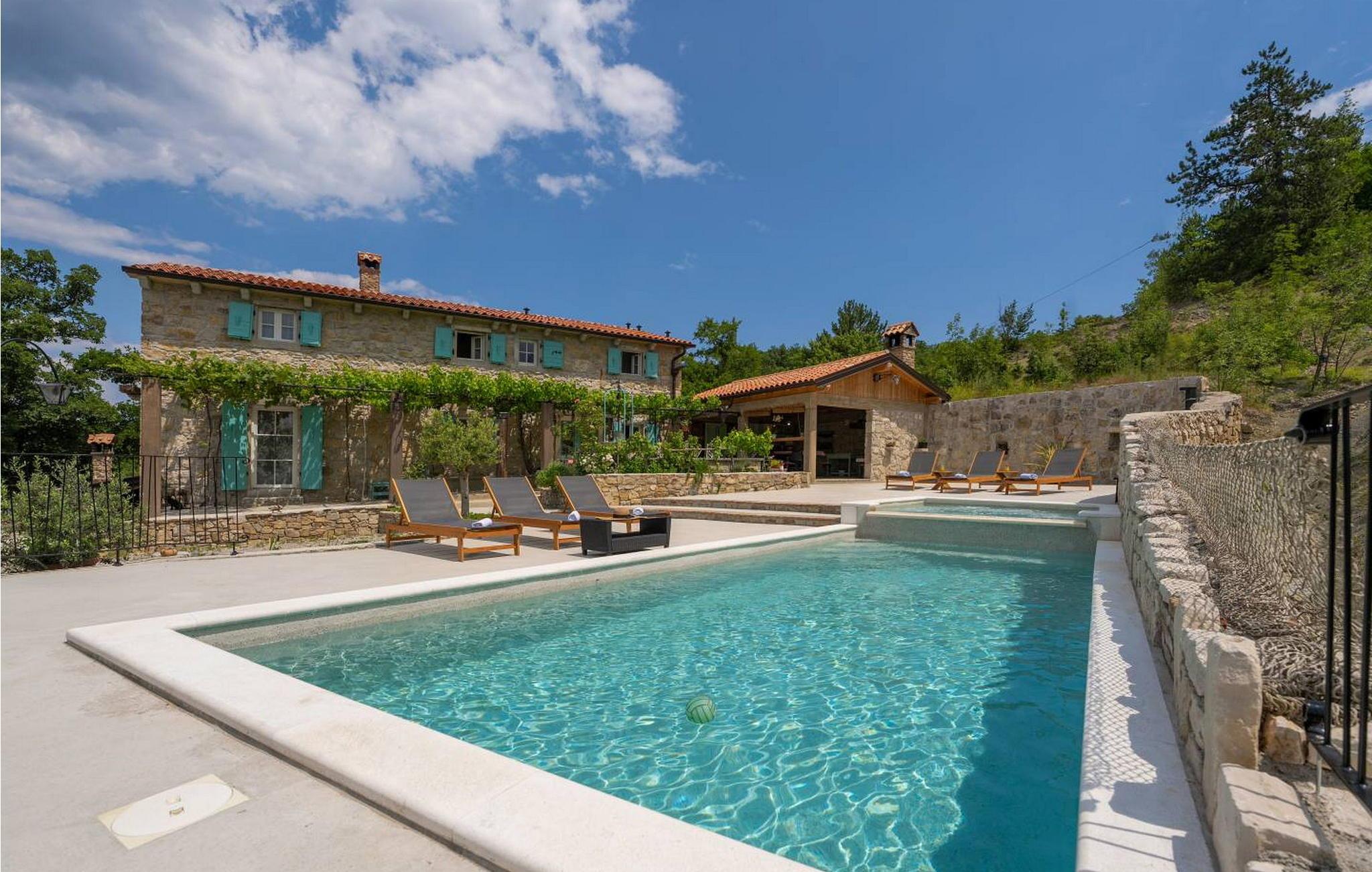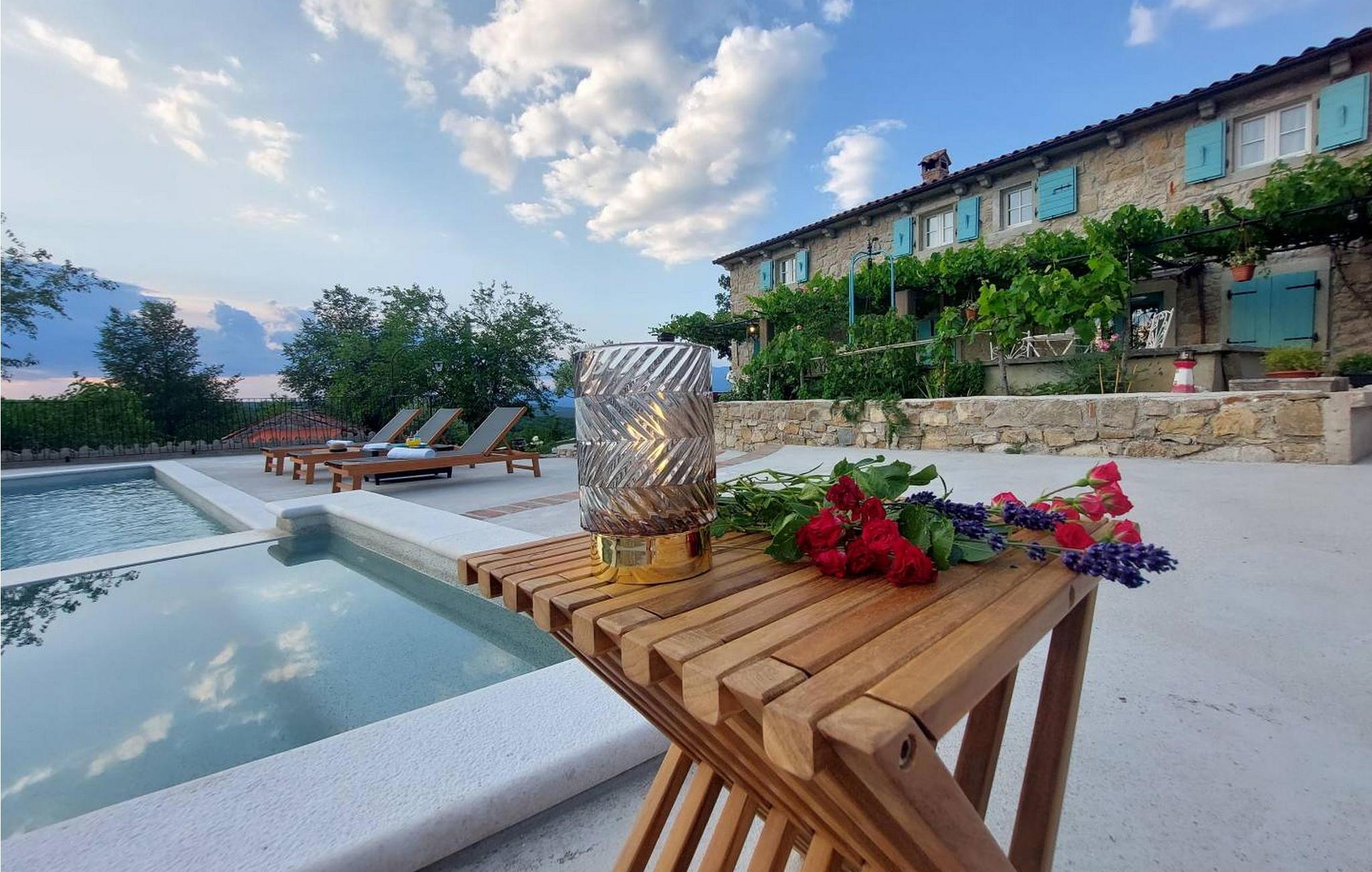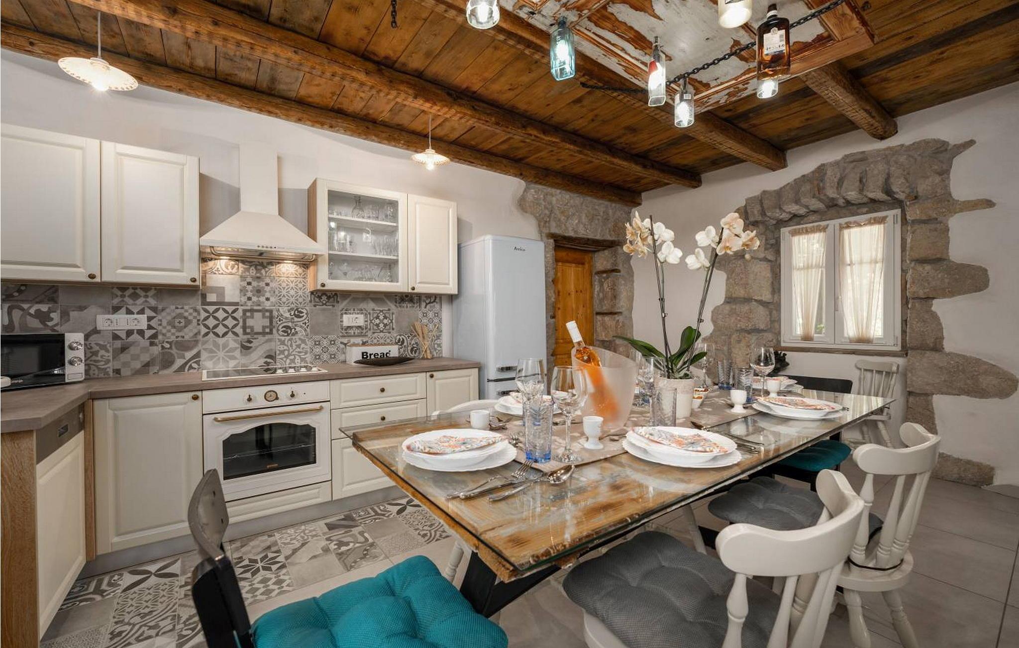 Casa Zamarija er et feriehus til 7 personer med swimmingpool i en meget rolig beliggenhed nær Labin. Dette hus er et typisk istrisk stenhus, renoveret med en masse opmærksomhed og kreativitet, og hver detalje er et rigtigt lille kunstværk. Labin ligger kun 3 km derfra, mens Rabac og talrige velholdte strande ligger 6 km derfra. I den rummelige have kan gæsterne nyde en swimmingpool med hydromassage og børnebassin, liggestole til solbadning, et overdækket sommerkøkken med brændeovn, en udendørs bruser og flere parkeringspladser. Huset er omgivet af grønne områder og er ideelt til en afslappende ferie i absolut fred. Casa Zamarija består af en stueetage, hvor der er en stue, en spisestue, et fuldt udstyret køkken og et badeværelse. På husets første sal er der tre soveværelser med hvert sit badeværelse. Klimaanlægget til værelserne på første sal er placeret på gangen. To værelser har en dobbeltseng og et værelse har tre senge. Bemærk venligst, at denne ejendom ikke accepterer ungdomsgrupper eller polterabends. En ungdomsgruppe på denne ejendom er en gruppe bestående af personer på 26 år eller derunder. Book ikke denne ejendom, hvis du er en ungdomsgruppe eller et polterabend, da din reservation vil blive afvist efter booking, hvilket kan omfatte ved ankomst til ejendommen eller under dit ophold, og du vil ikke blive refunderet.