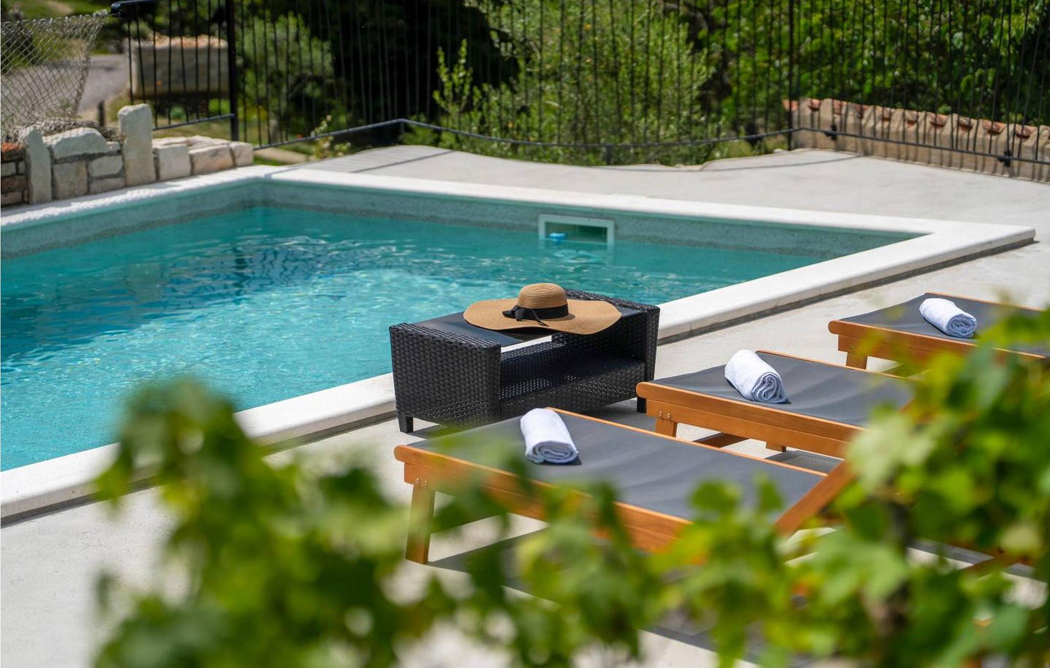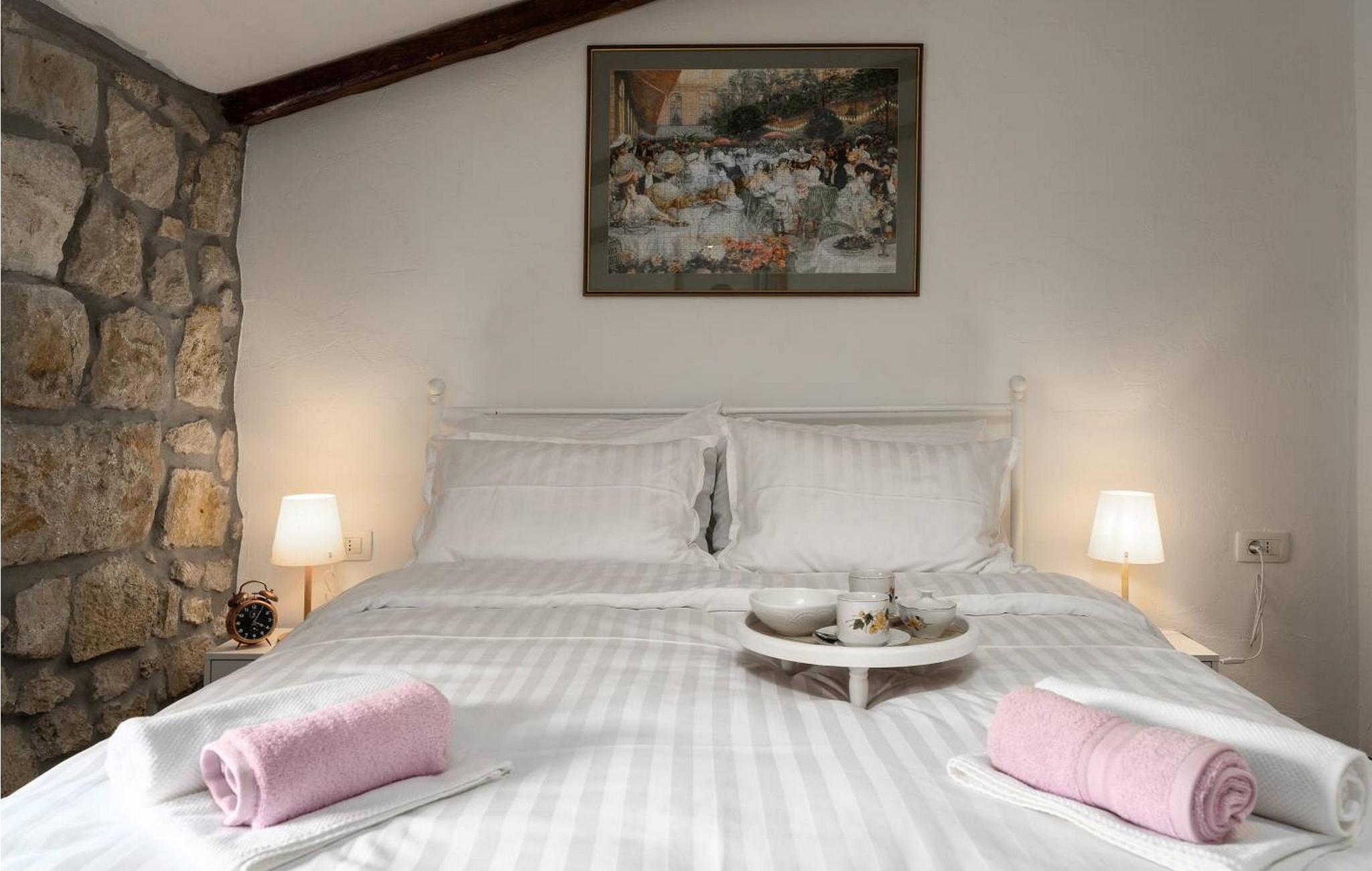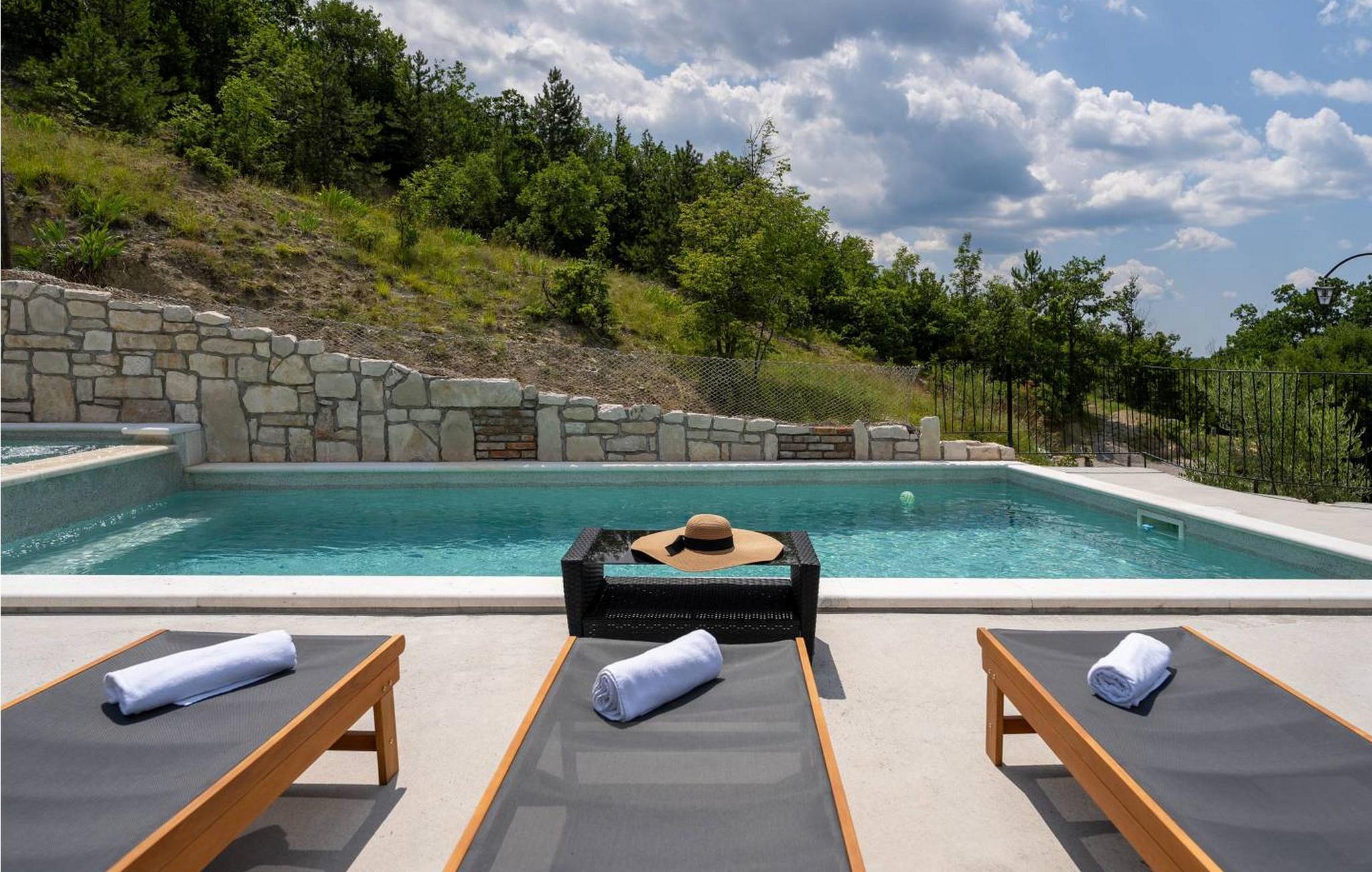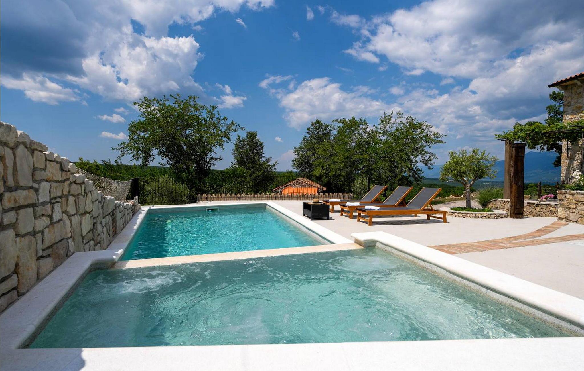 Casa Zamarija er et feriehus til 7 personer med swimmingpool i en meget rolig beliggenhed nær Labin. Dette hus er et typisk istrisk stenhus, renoveret med en masse opmærksomhed og kreativitet, og hver detalje er et rigtigt lille kunstværk. Labin ligger kun 3 km derfra, mens Rabac og talrige velholdte strande ligger 6 km derfra. I den rummelige have kan gæsterne nyde en swimmingpool med hydromassage og børnebassin, liggestole til solbadning, et overdækket sommerkøkken med brændeovn, en udendørs bruser og flere parkeringspladser. Huset er omgivet af grønne områder og er ideelt til en afslappende ferie i absolut fred. Casa Zamarija består af en stueetage, hvor der er en stue, en spisestue, et fuldt udstyret køkken og et badeværelse. På husets første sal er der tre soveværelser med hvert sit badeværelse. Klimaanlægget til værelserne på første sal er placeret på gangen. To værelser har en dobbeltseng og et værelse har tre senge. Bemærk venligst, at denne ejendom ikke accepterer ungdomsgrupper eller polterabends. En ungdomsgruppe på denne ejendom er en gruppe bestående af personer på 26 år eller derunder. Book ikke denne ejendom, hvis du er en ungdomsgruppe eller et polterabend, da din reservation vil blive afvist efter booking, hvilket kan omfatte ved ankomst til ejendommen eller under dit ophold, og du vil ikke blive refunderet.