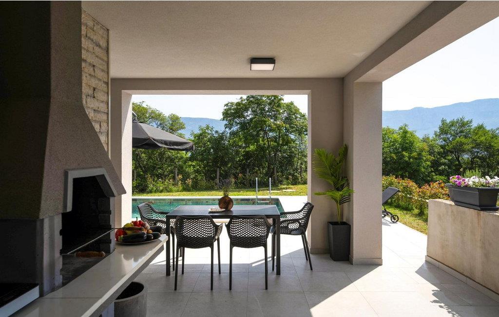 Velkommen til Villa Milena, et roligt feriested omgivet af frodige grønne områder med en betagende udsigt over Vojak, den højeste top i Istrien. Villaens have er en oase af afslapning og byder på en privat swimmingpool, liggestole og en parasol til din komfort. Det overdækkede sommerkøkken er udstyret med grill, køleskab og opholdsområde, ideelt til udendørs spisning. Der er også en legeplads, der sikrer sjov for alle aldre og rigelig parkering for din bekvemmelighed. Indenfor byder villaen på en rummelig stue med en betagende udsigt over Ucka og en spisestue, der fører ud til en smuk balkon med siddepladser, hvor du kan slappe af og nyde landskabet. Villaen kombinerer problemfrit moderne komfort med omgivelsernes naturlige skønhed, hvilket gør den til en ideel base for din ferie i Istrien. Beliggende i en rolig beliggenhed nær Kršan, tilbyder denne villa et perfekt tilbagetog i naturen, mens den kun er en kort køretur fra lokale faciliteter såsom en butik, café og restaurant. Den nærmeste strand i Plomin ligger kun 7 km væk og giver nem adgang til den smukke istriske kyst. Kršan er en charmerende landsby fyldt med historie, med sin middelalderborg og det maleriske landskab, der giver et indblik i det traditionelle liv i Istrien, samtidig med at det er en port til regionens udendørs eventyr. Bemærk venligst, at denne ejendom ikke accepterer ungdomsgrupper eller polterabender. En ungdomsgruppe på denne ejendom består af personer på 26 år eller derunder.