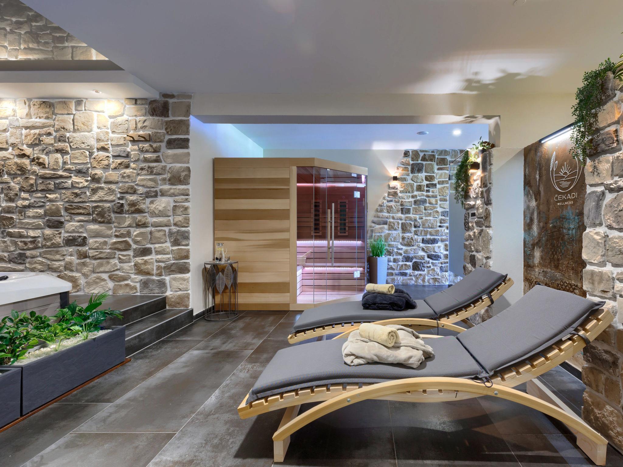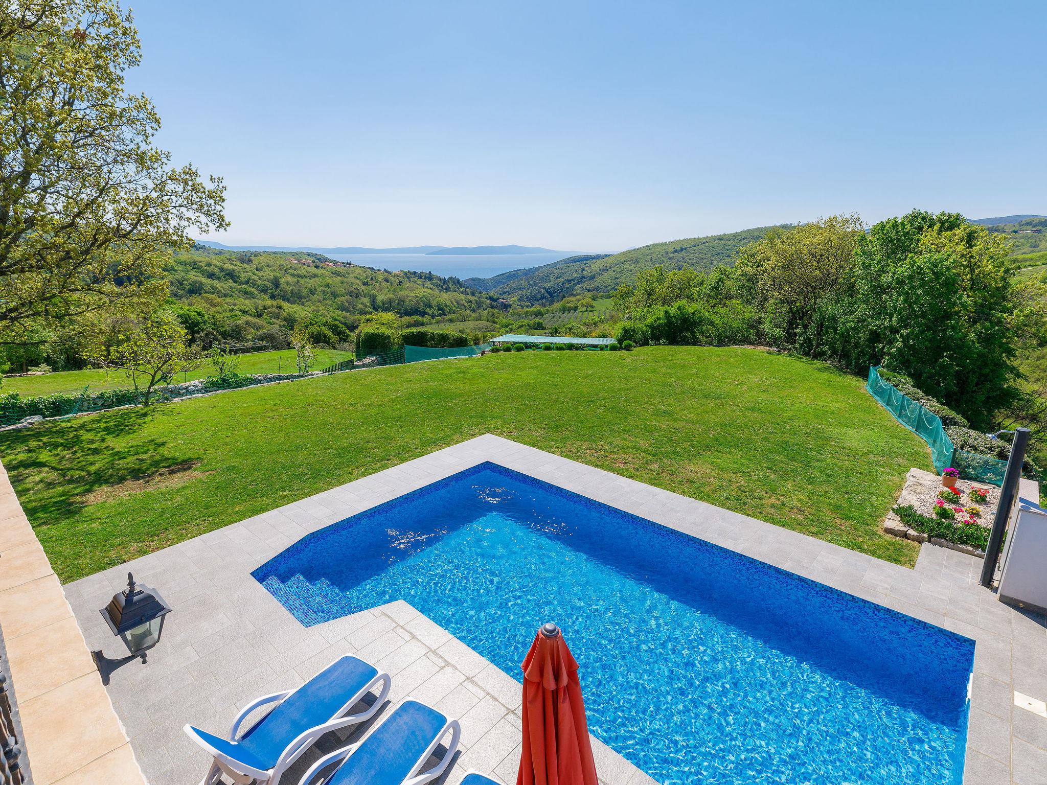 Beautiful single-family house "Panorama 1", 2 storeys. In the district of Cekadi 700 m from the centre of Labin, in a quiet, sunny, elevated position, 5 km from the sea, in the countryside. Private: property 800 m2 (fenced), beautiful garden with lawn and wildlife garden, swimming pool angular, heated (8 x 4 m, depth 140 cm, seasonal availability: 01.Jan. - 31.Dec.) with internal staircase. Outdoor shower, terrace (15 m2), barbecue, pool maintenance by the owner/gardener. In the house: internet access, sauna (extra). Hot tub (extra). Relaxation room, spa area (extra), washing machine. Parking at the house on the premises. Shop 300 m, supermarket 1.2 km, restaurant 1.2 km, bus stop 1.1 km, pebble beach 5 km. Riding stable 3 km, walking paths from the house 100 m, cycle lane 150 m. Possibility of trips by house owner's boat (on request, extra). ,Spa area (hot tub, infrared sauna) for private use (extra, with a pre-booked appointment) located at the distance of 20 m.