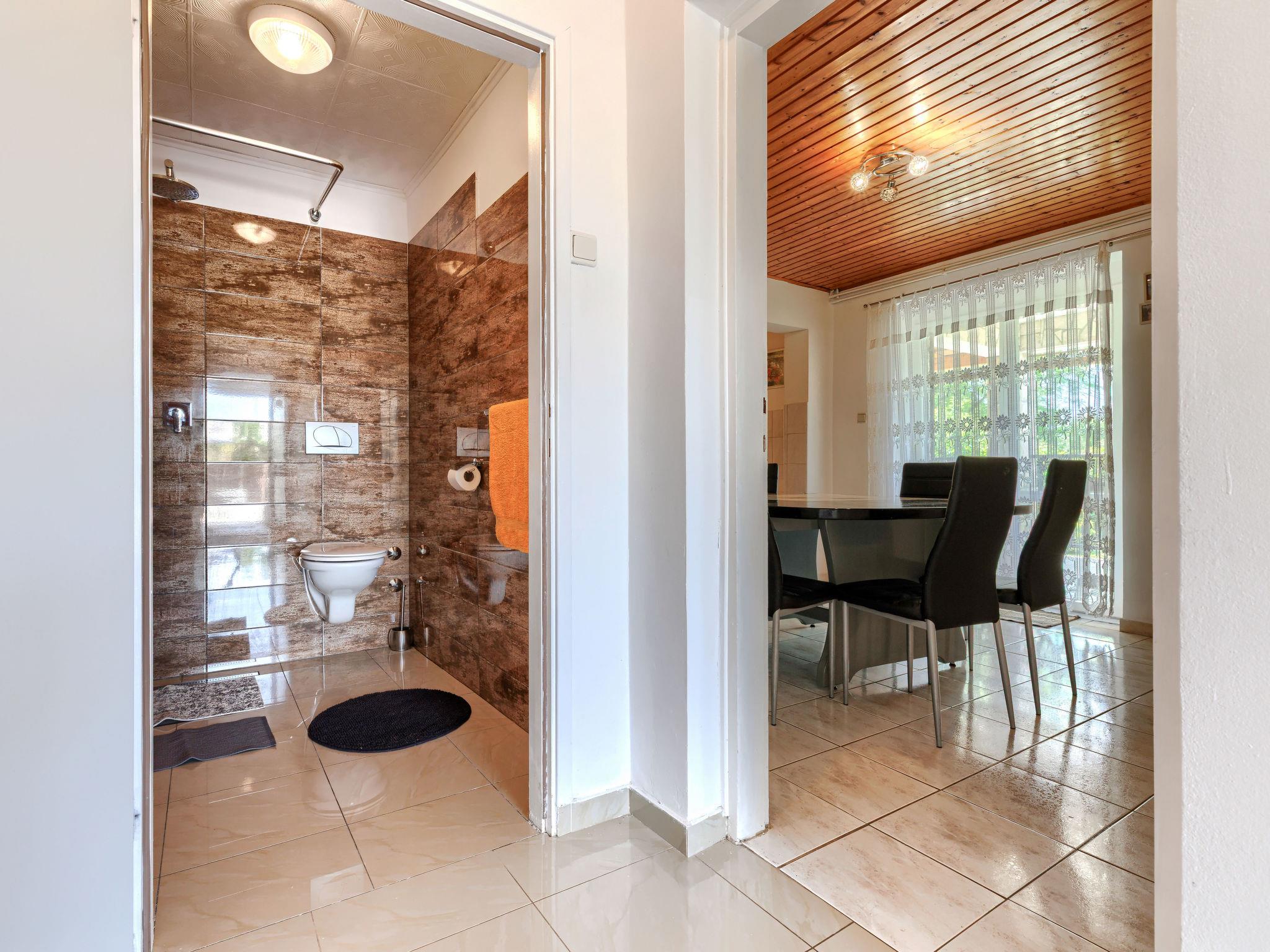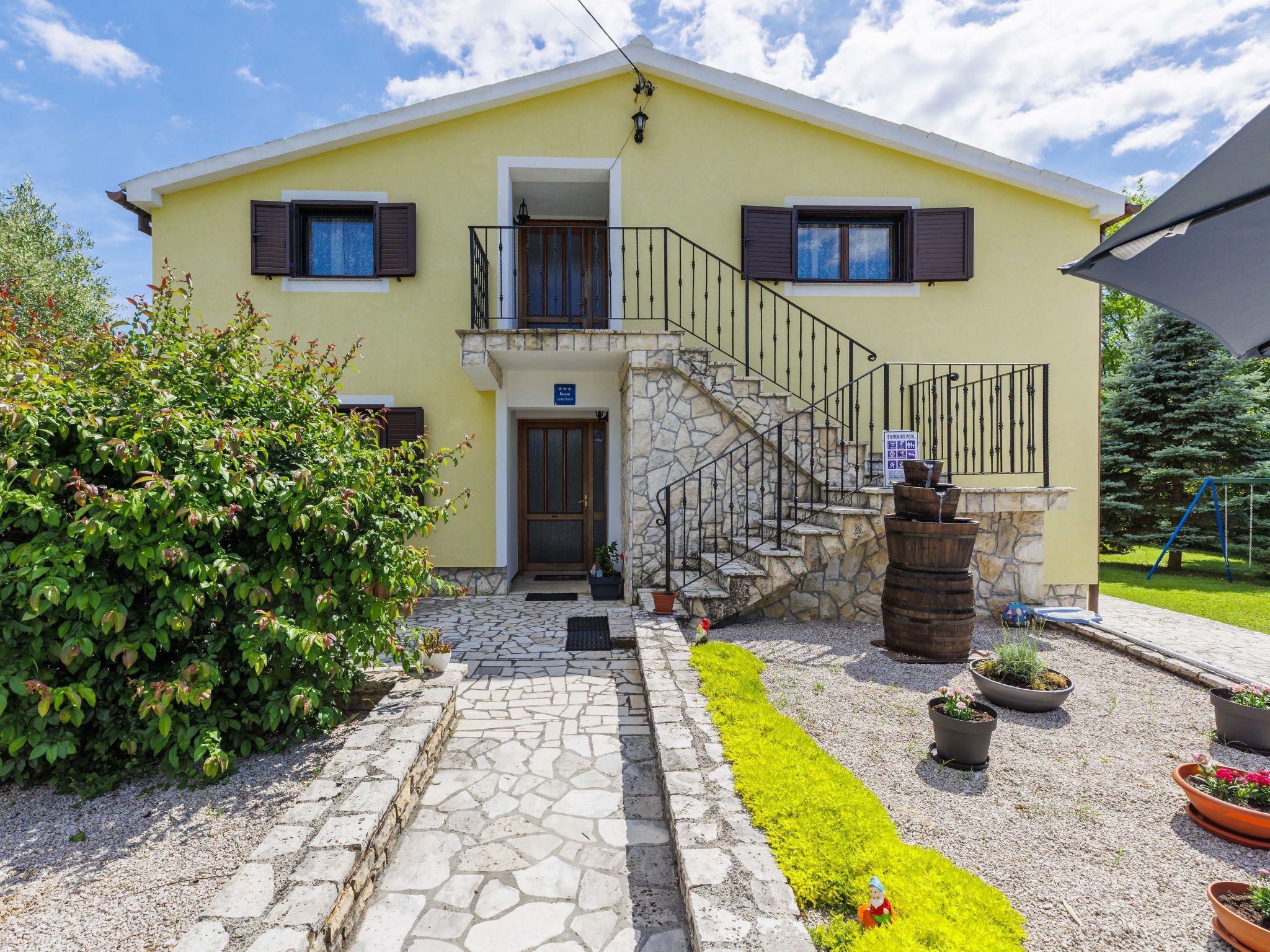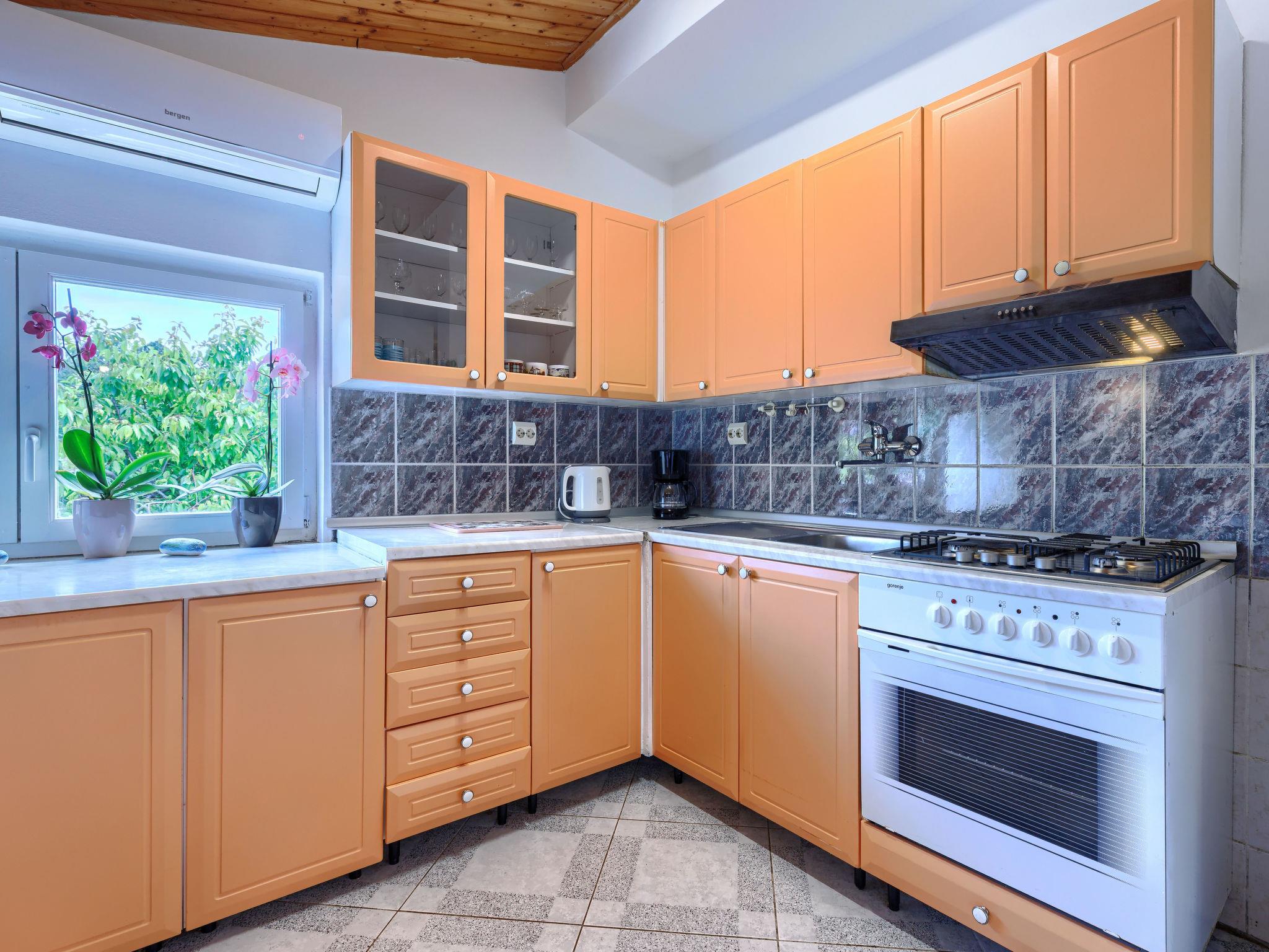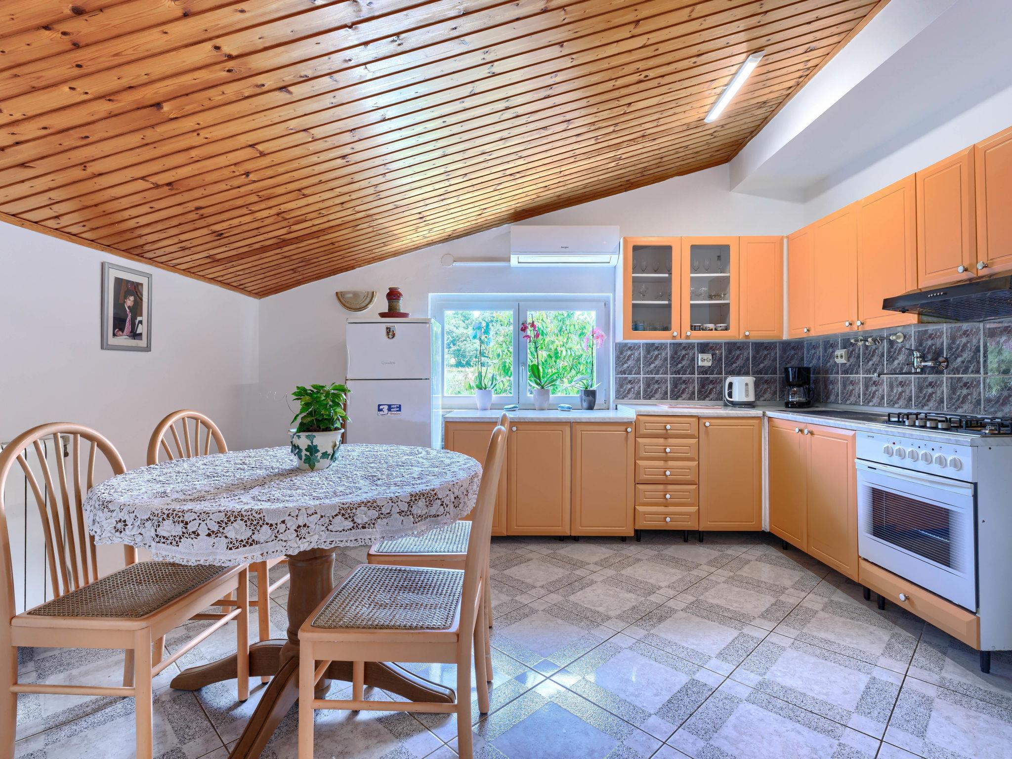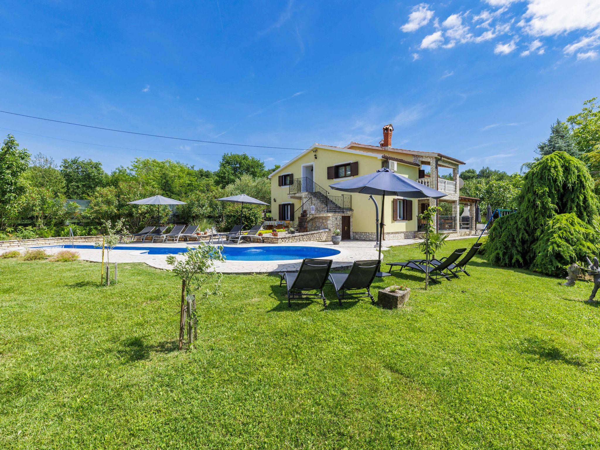 Semi-detached house "Ve-Ma", 2 storeys. In the hamlet Kapelica 2.5 km from the centre of Labin, in a quiet, sunny position, 6 km from the sea. Private: property 1'700 m2, garden, swimming pool (60 m2, depth 70 - 150 cm, seasonal availability: 18.May. - 29.Sep.) with internal staircase. Unconventional pool shape. Outdoor shower, barbecue. In the house: internet access, washing machine. Parking at the house on the premises. Shop 2.5 km, restaurant 2 km, bus stop 3.4 km, pebble beach 6 km, rocky beach 6 km. Cycle lane 100 m. The owner does not accept any youth groups. The house consists of 2 apartments, rented as one unit.