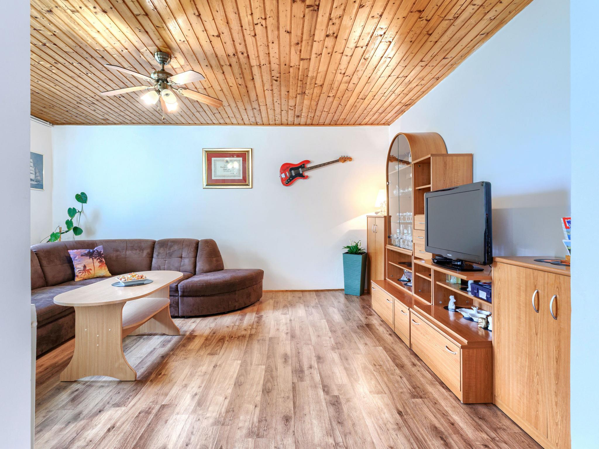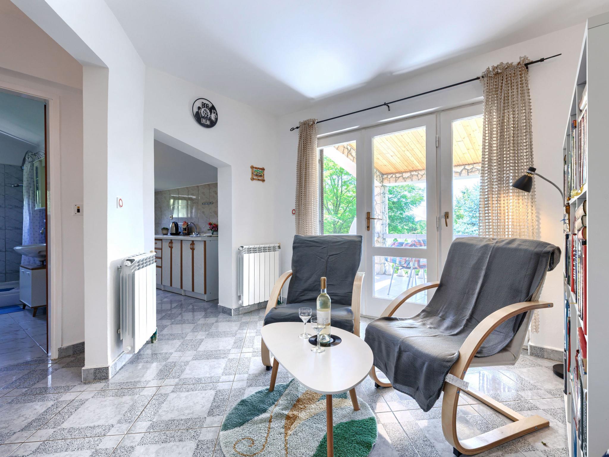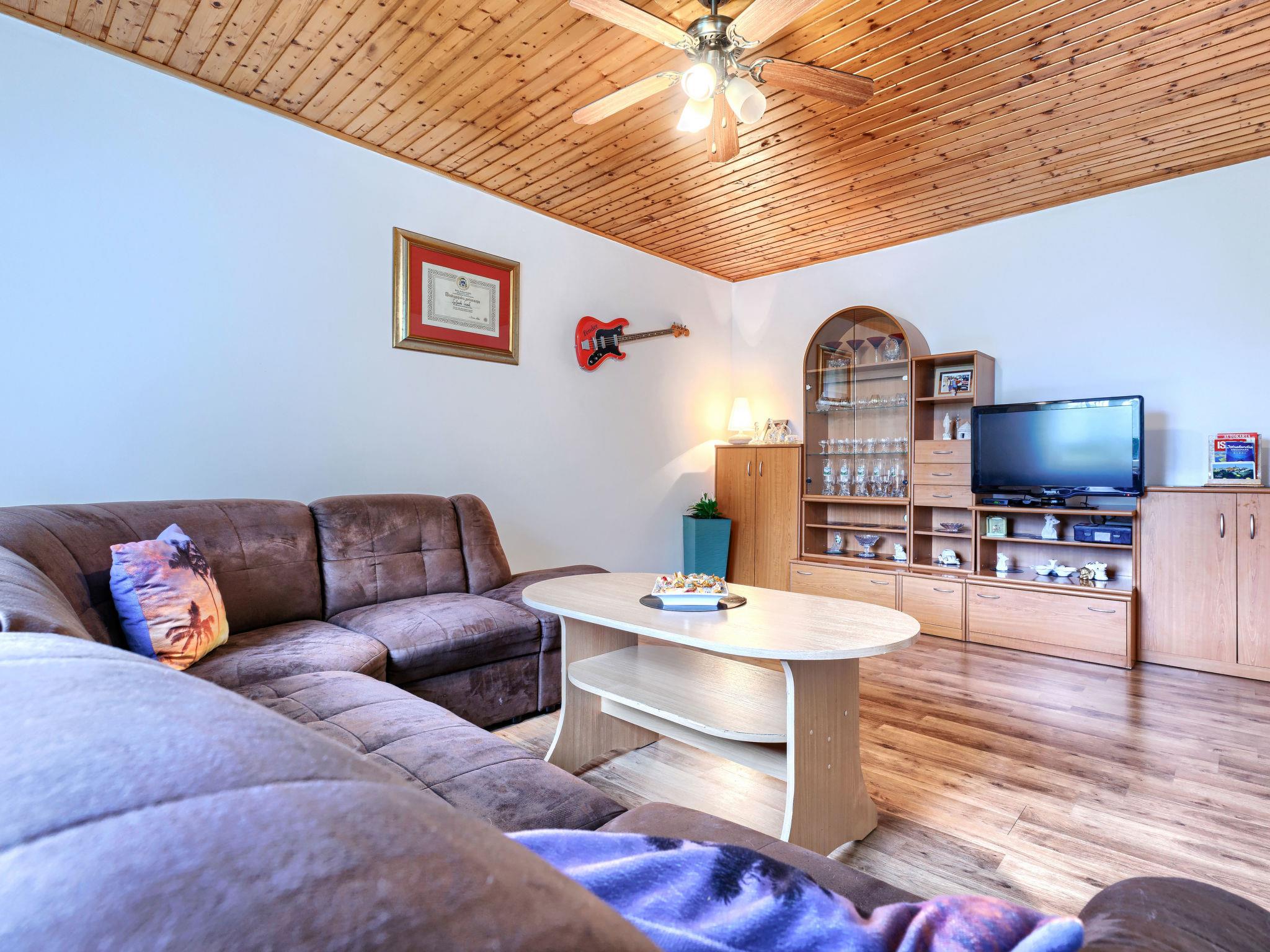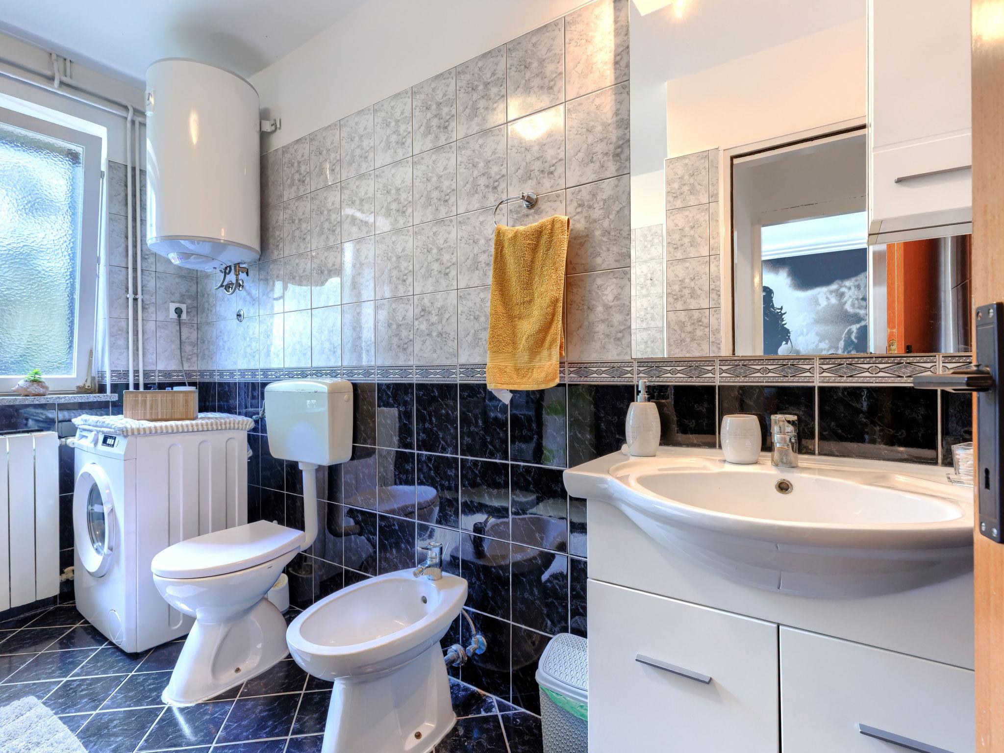 Semi-detached house "Ve-Ma", 2 storeys. In the hamlet Kapelica 2.5 km from the centre of Labin, in a quiet, sunny position, 6 km from the sea. Private: property 1'700 m2, garden, swimming pool (60 m2, depth 70 - 150 cm, seasonal availability: 18.May. - 29.Sep.) with internal staircase. Unconventional pool shape. Outdoor shower, barbecue. In the house: internet access, washing machine. Parking at the house on the premises. Shop 2.5 km, restaurant 2 km, bus stop 3.4 km, pebble beach 6 km, rocky beach 6 km. Cycle lane 100 m. The owner does not accept any youth groups. The house consists of 2 apartments, rented as one unit.