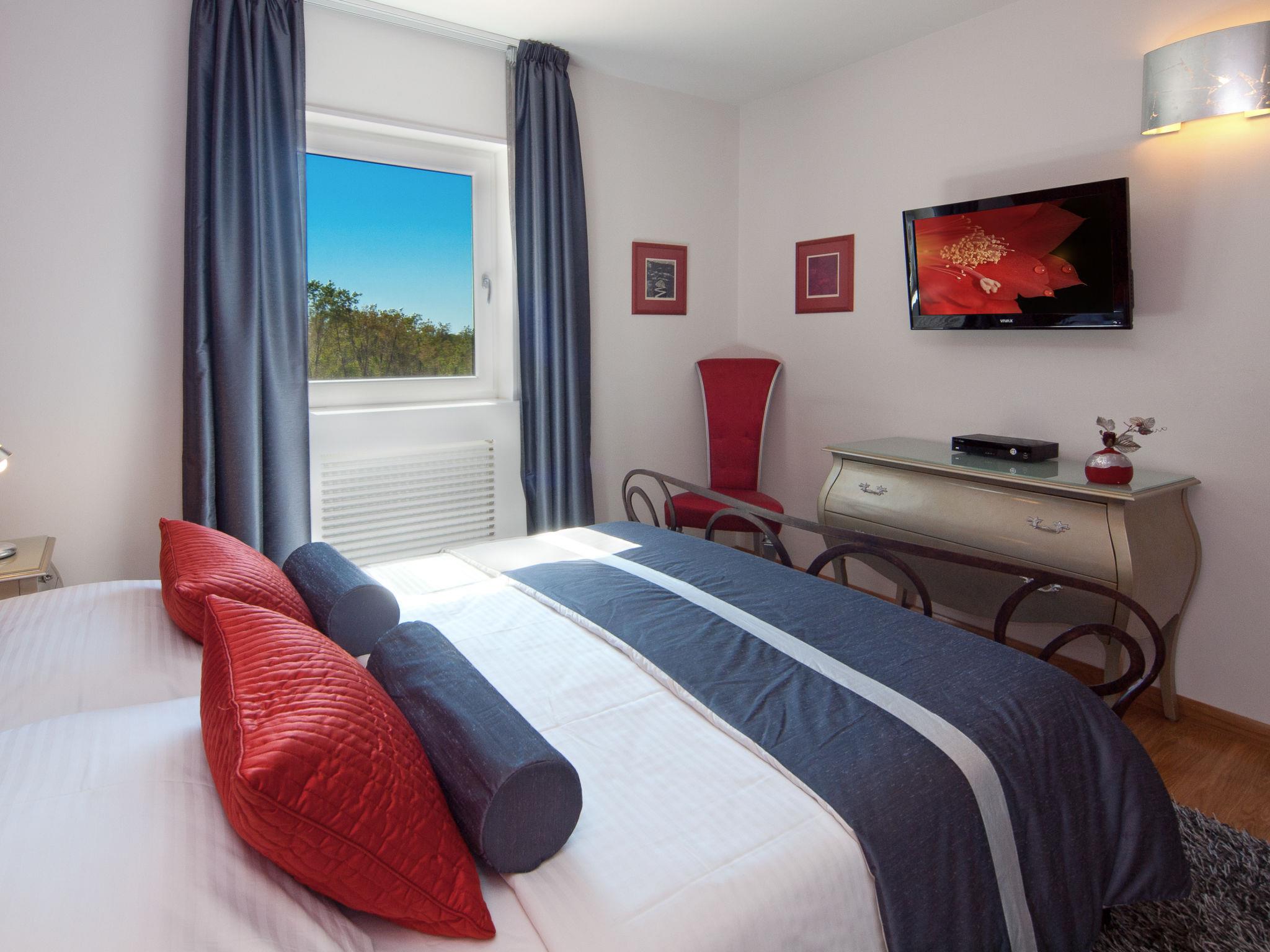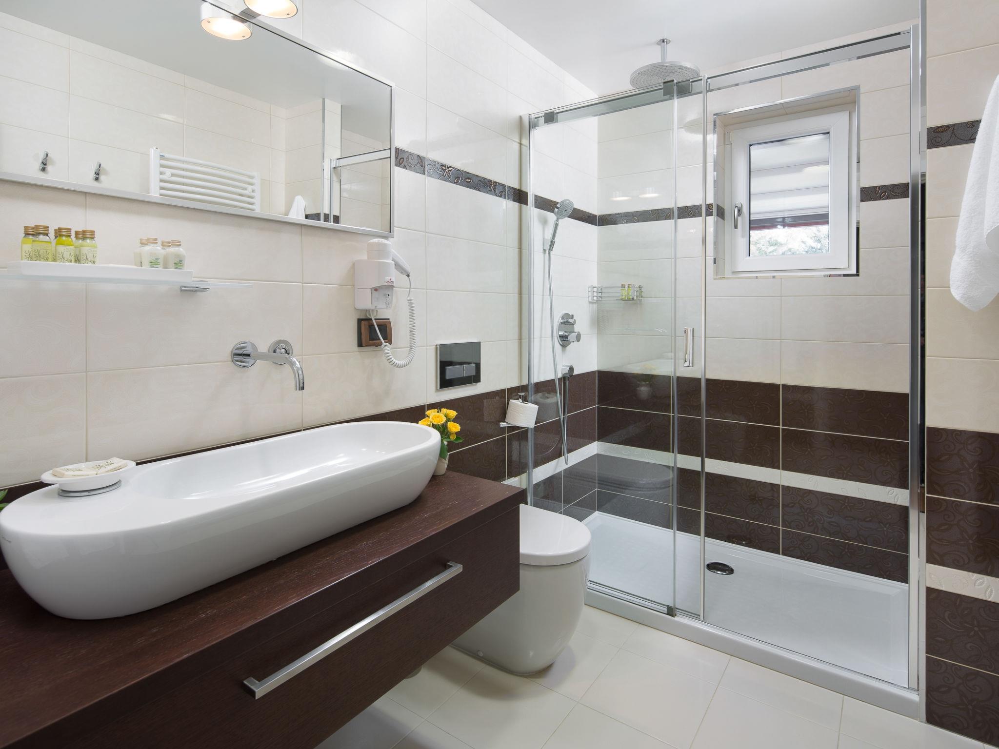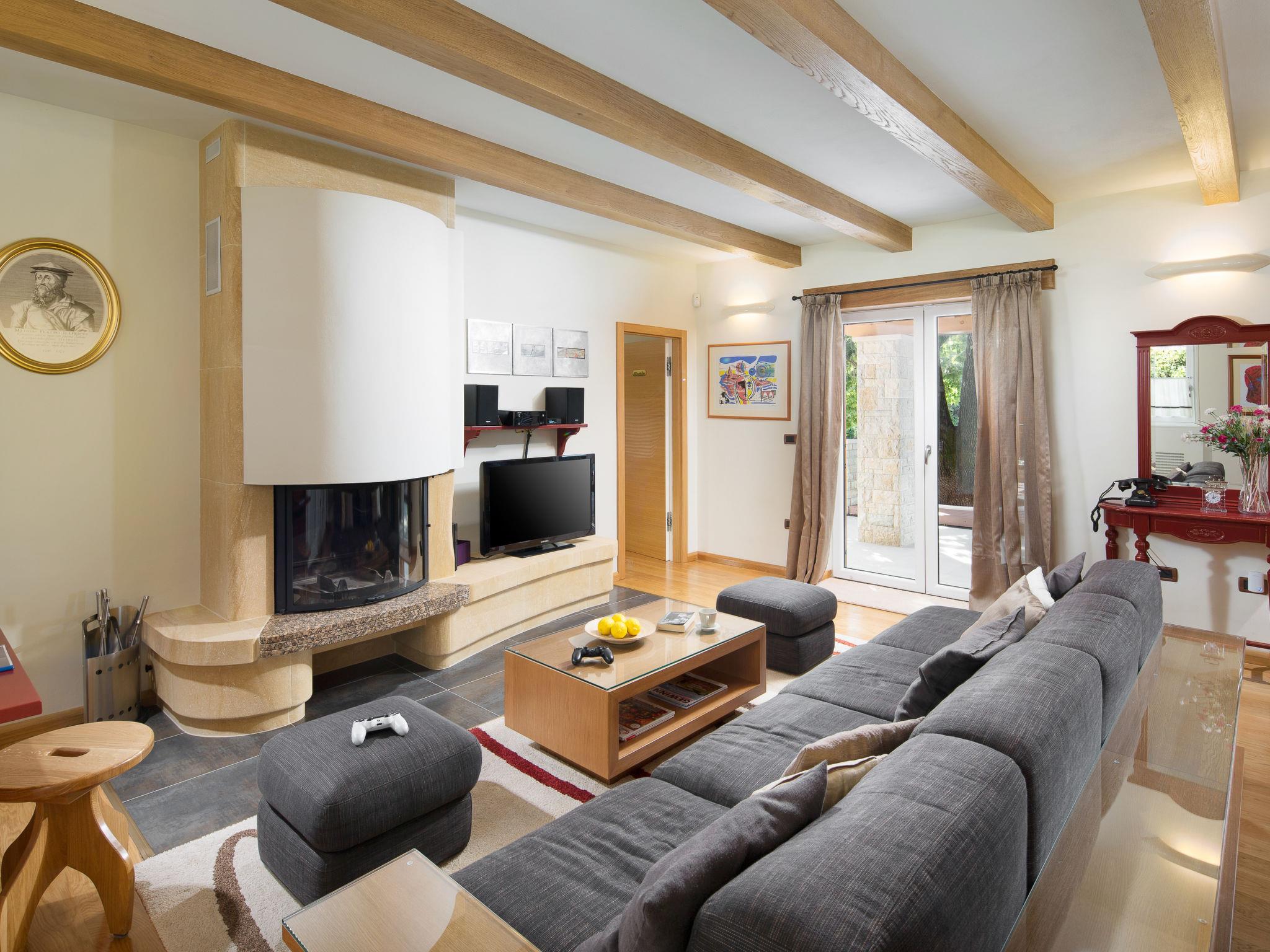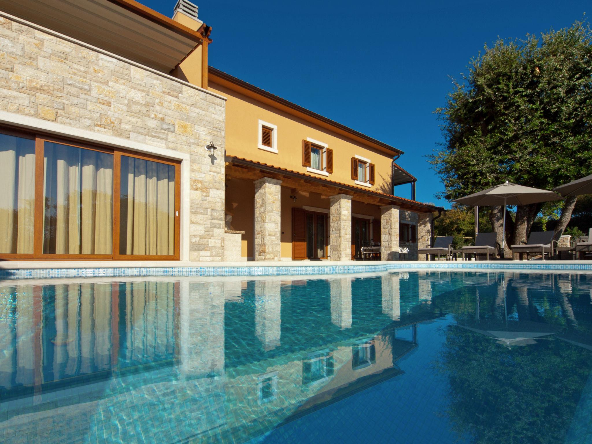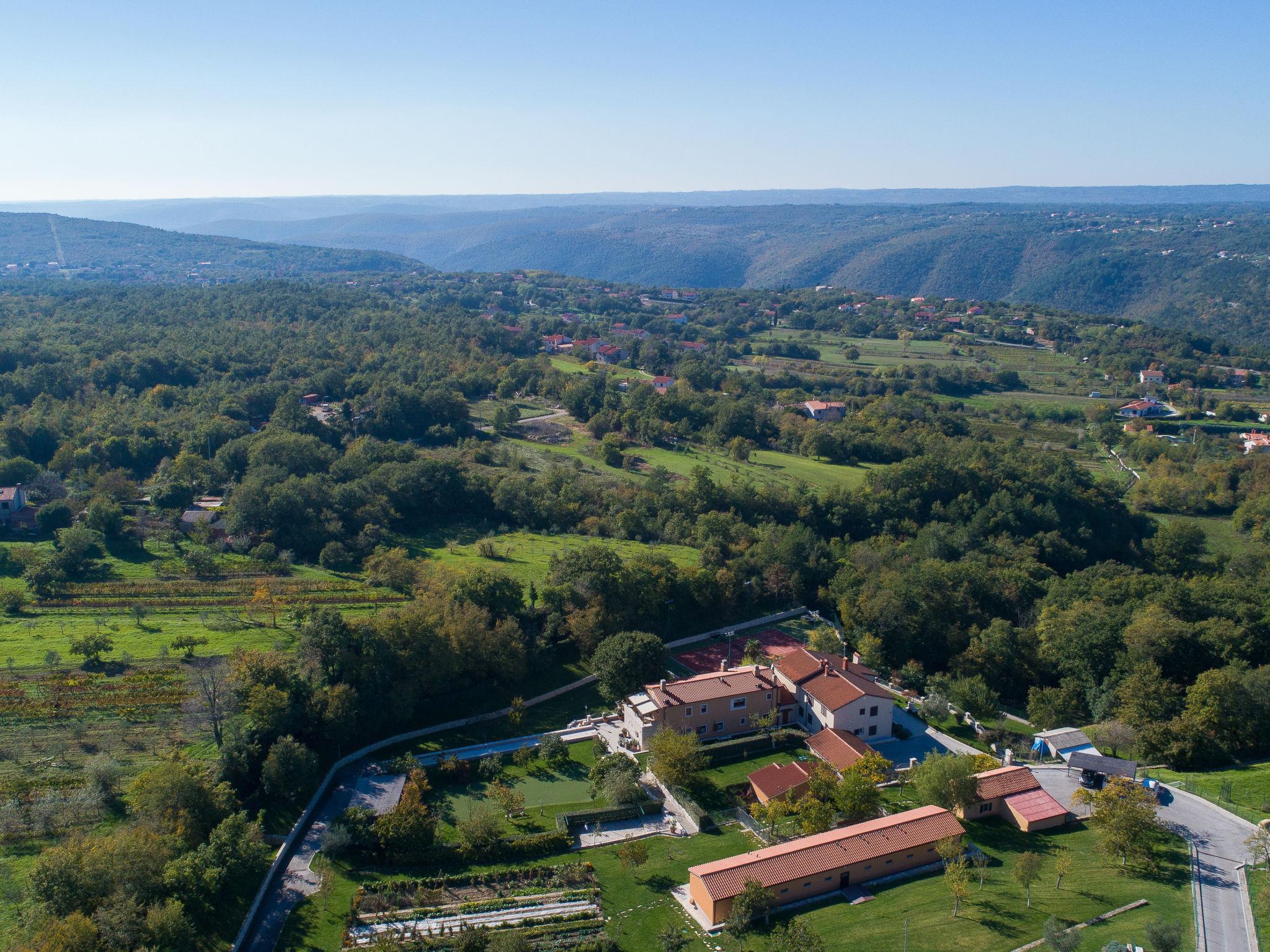 Beautiful villa "Vlastelini", 2 storeys, built in 1921, renovated in 2011. 1 km from the centre of Labin, in a quiet, sunny position on a slope, 3.5 km from the sea, 3.5 km from the beach. Private: property 7'000 m2 (fenced), beautiful garden with lawn and wildlife garden, swimming pool heated (35 m2, depth 140 cm, seasonal availability: 06.Apr. - 12.Oct.) with internal staircase. Unconventional pool shape. Outdoor shower, tennis, floodlit, table tennis, barbecue. In the house: internet access, central heating system, washing machine, tumble dryer. Towel change daily. Roofed, parking (for 4 cars) at the house on the premises. E-charging station. Shop 900 m, restaurant 600 m, bus stop 2.7 km, pebble beach 3.5 km, rocky beach 3.5 km. Walking paths from the house 100 m, cycle lane 150 m. Please note: suitable for families. Groups of teenagers on request only. Animals in the neighbourhood. Traditional tavern in the ground floor with open-hearth fireplace, kitchen (4 induction hot plates, oven, dishwasher, freezer), satellite TV (flatscreen), hi-fi system, DVD player, air conditioning, exit to the pool. Separate WC. Putting green. By groups of young people double deposit is requested on arrival. Swimming pool heated (extra). It is necessary to announce 7 days in advance if the pool heating is required. Welcome pack and champagne upon arrival.