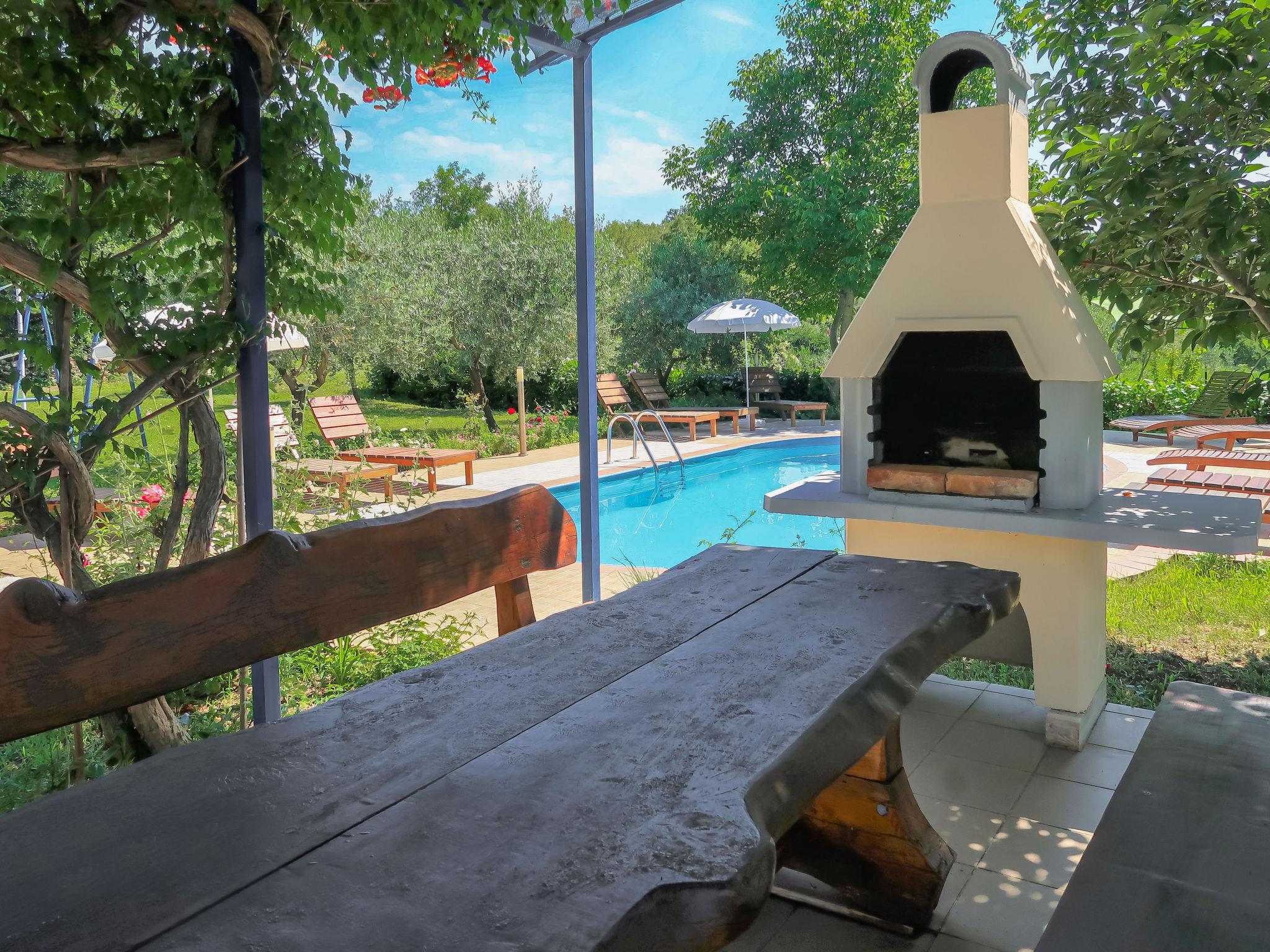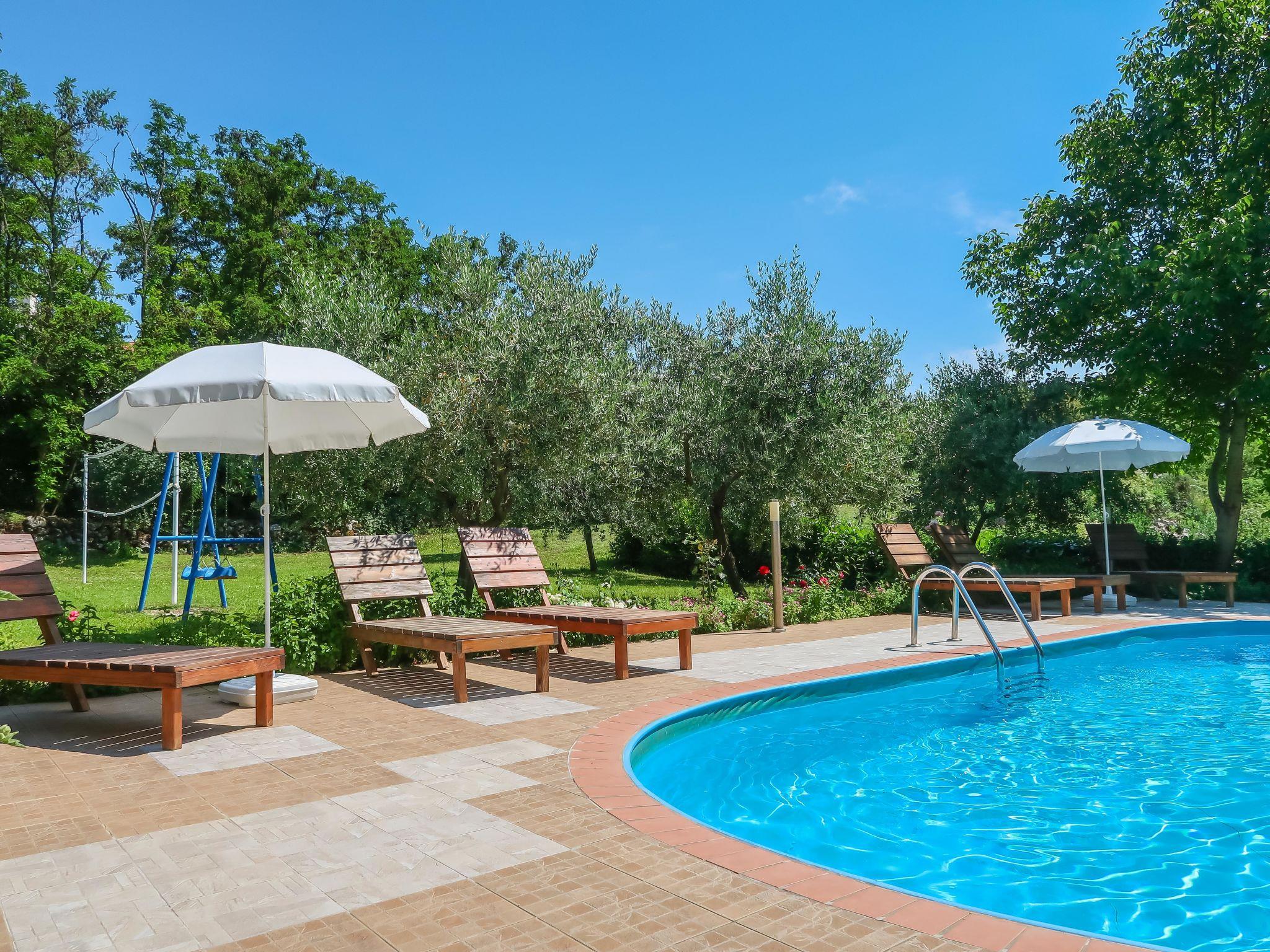 Apartment block "Gordana". In the district of Presika 1 km from the centre of Labin, 5 km from the centre of Rabac, 5 km from the sea, 5 km from the beach. For shared use: property 1'000 m2 with lawn and trees, swimming pool (32 m2, depth 150 cm, seasonal availability: 01.May. - 01.Oct.) with internal staircase. Outdoor shower, volleyball, badminton, terrace, garden furniture, barbecue (swing), pool maintenance by the owner/gardener. In the house: internet access, washing machine (for shared use, extra). Parking on the premises. Shop 800 m, supermarket 2 km, restaurant 2 km, bus stop 1.9 km, pebble beach 5 km, rocky beach 5 km. Marina 5 km. Please note: Additional accommodations can be booked.