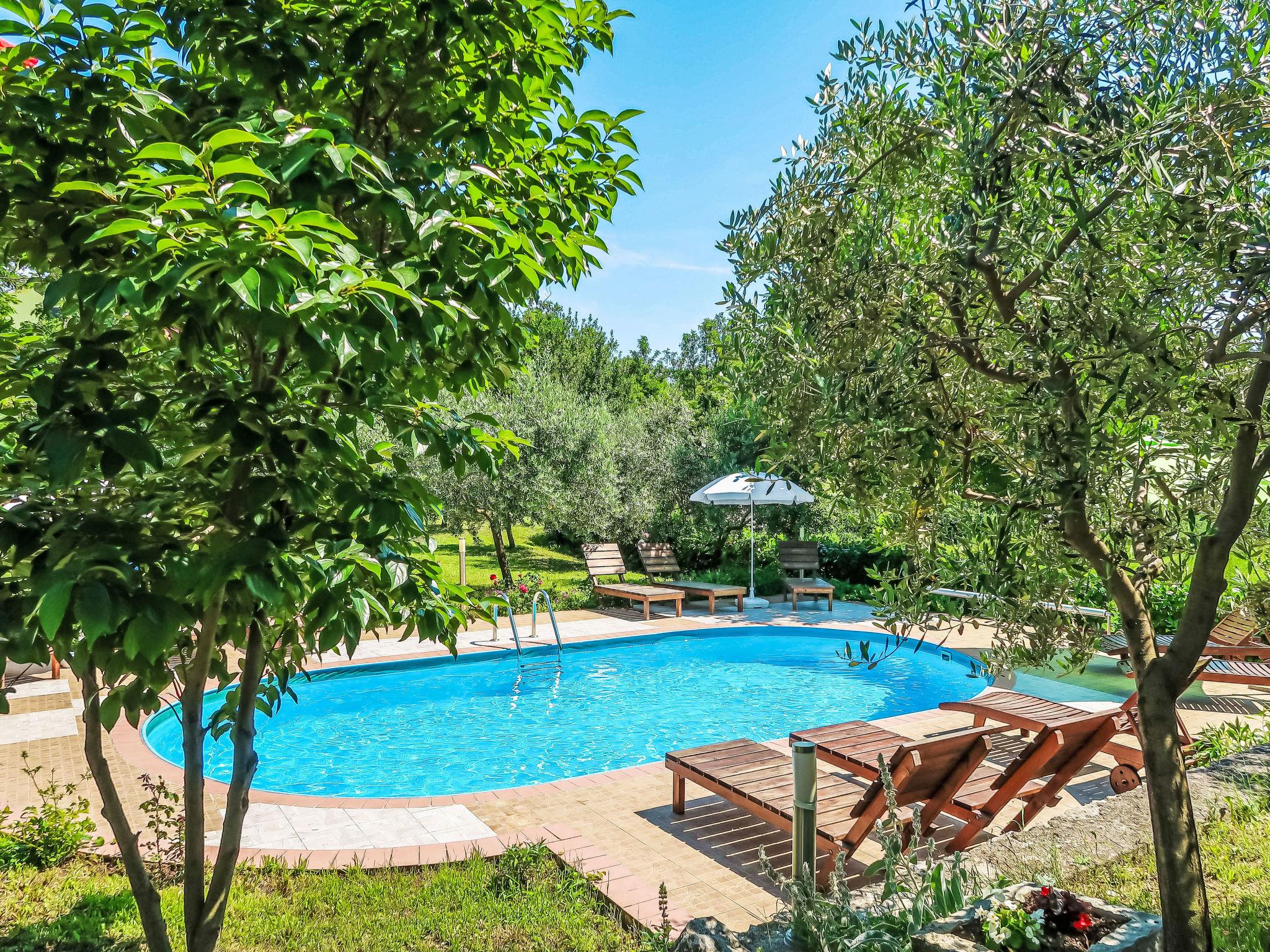 Apartment block "Gordana". In the district of Presika 1 km from the centre of Labin, 5 km from the centre of Rabac, 5 km from the sea, 5 km from the beach. For shared use: property 1'000 m2 with lawn and trees, swimming pool (32 m2, depth 150 cm, seasonal availability: 01.May. - 01.Oct.) with internal staircase. Outdoor shower, volleyball, badminton, terrace, garden furniture, barbecue (swing), pool maintenance by the owner/gardener. In the house: internet access, washing machine (for shared use, extra). Parking on the premises. Shop 800 m, supermarket 2 km, restaurant 2 km, bus stop 1.9 km, pebble beach 5 km, rocky beach 5 km. Marina 5 km. Please note: Additional accommodations can be booked.