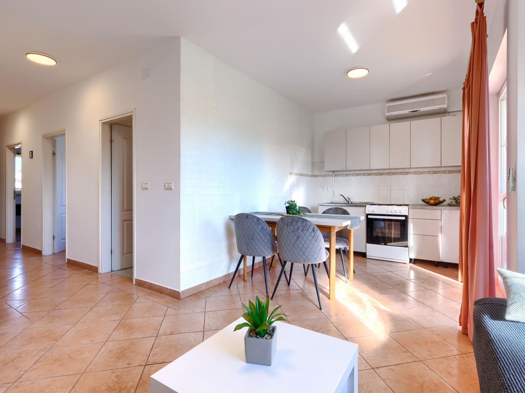 "Gordana", 3-room apartment 50 m2, on the ground floor. Living/dining room with 1 sofabed, satellite TV and air conditioning. Exit to the balcony. 1 room with 2 beds. 1 room with 1 french bed. Kitchenette (oven, 4 ceramic glass hob hotplates, toaster, kettle, freezer, electric coffee machine). Shower/WC. No heating option. Balcony 5 m2. Balcony furniture. View of the swimming pool. Facilities: Internet (WiFi, free). Please note: non-smoking house. The property is one of a type of property or apartment.