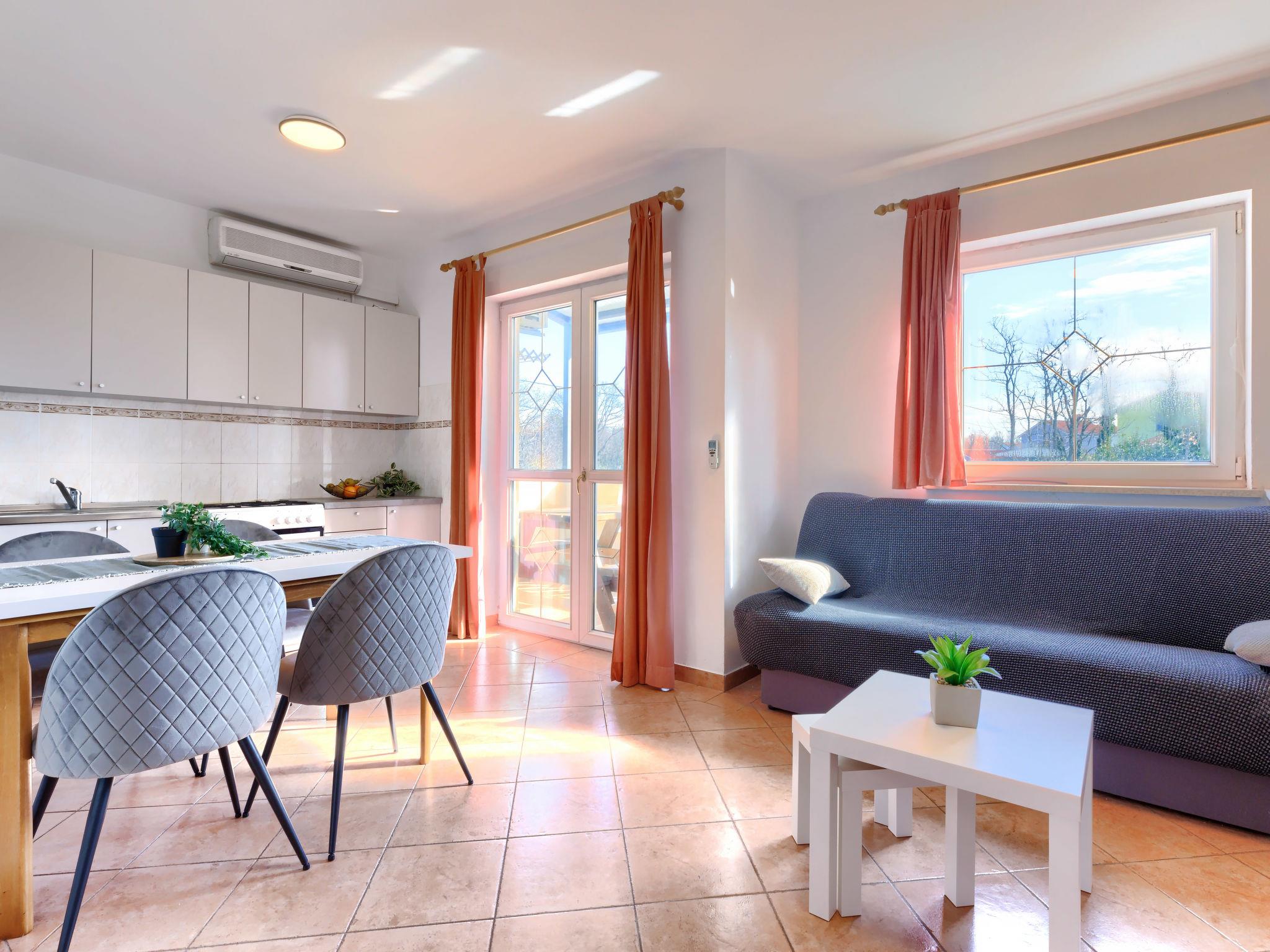 "Gordana", 3-room apartment 50 m2 on 1st floor. Living/dining room with 1 sofabed, satellite TV and air conditioning. Exit to the balcony. 1 room with 2 beds. 1 room with 1 french bed. Kitchenette (oven, 4 ceramic glass hob hotplates, toaster, kettle, freezer, electric coffee machine). Shower/WC. No heating option. Balcony 5 m2. Balcony furniture. View of the swimming pool. Facilities: Internet (WiFi, free). Please note: non-smoking house. The property is one of a type of property or apartment.