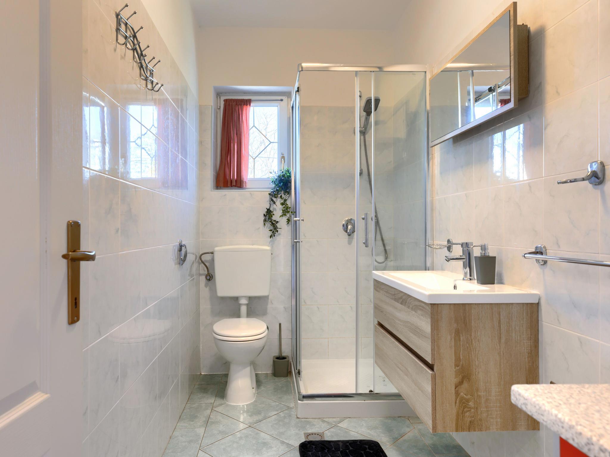 Apartment block "Gordana". In the district of Presika 1 km from the centre of Labin, 5 km from the centre of Rabac, 5 km from the sea, 5 km from the beach. For shared use: property 1'000 m2 with lawn and trees, swimming pool (32 m2, depth 150 cm, seasonal availability: 01.May. - 01.Oct.) with internal staircase. Outdoor shower, volleyball, badminton, terrace, garden furniture, barbecue (swing), pool maintenance by the owner/gardener. In the house: internet access, washing machine (for shared use, extra). Parking on the premises. Shop 800 m, supermarket 2 km, restaurant 2 km, bus stop 1.9 km, pebble beach 5 km, rocky beach 5 km. Marina 5 km. Please note: Additional accommodations can be booked.