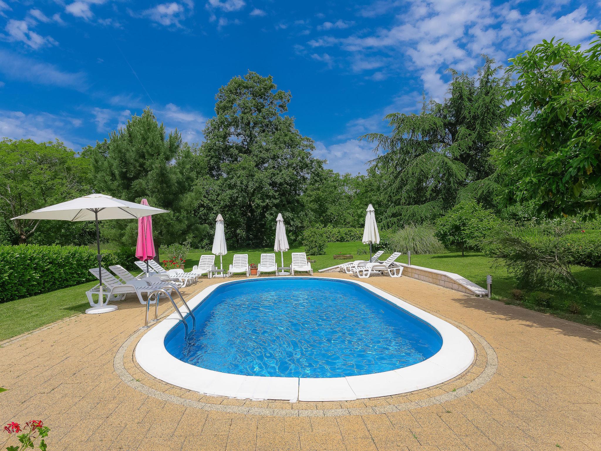 Marceljani 3 km from Labin: Beautiful single-family house "Lucija", built in 2018, surrounded by trees. In a quiet, sunny position, 8 km from the sea, in the countryside. For shared use: property 5'000 m2, large garden with plants and trees, lawn for sunbathing, swimming pool (8 x 4 m, depth 140 cm, seasonal availability: 04.May. - 14.Sep. pool opening hours: 08:00-20:00). Outdoor shower, barbecue. In the house: internet access. Parking at the house on the premises. Shop 2 km, restaurant 3 km, bus stop 3.6 km, pebble beach 8 km. Please note: Property ref. HR2880.400 is situated on the same property.