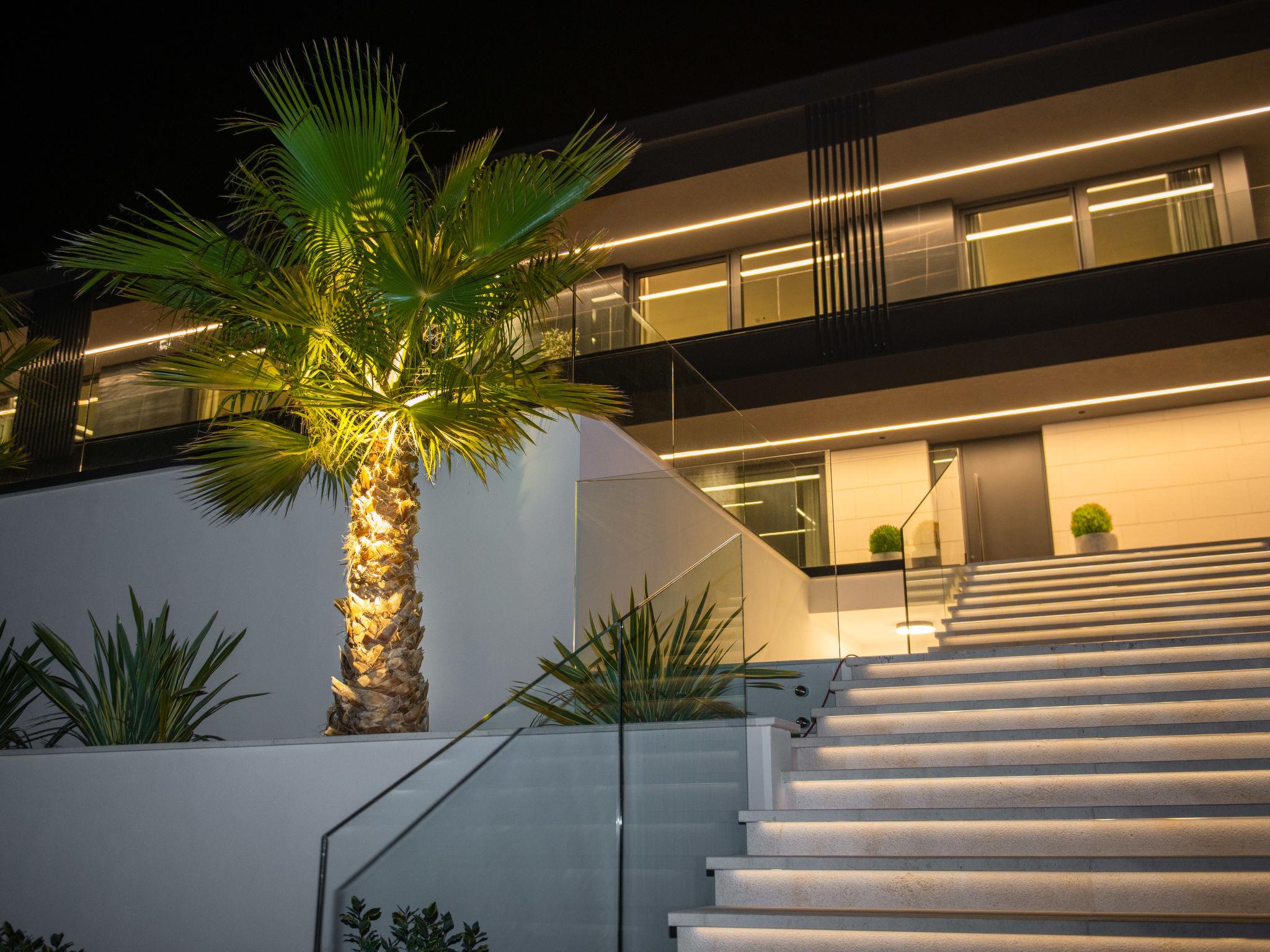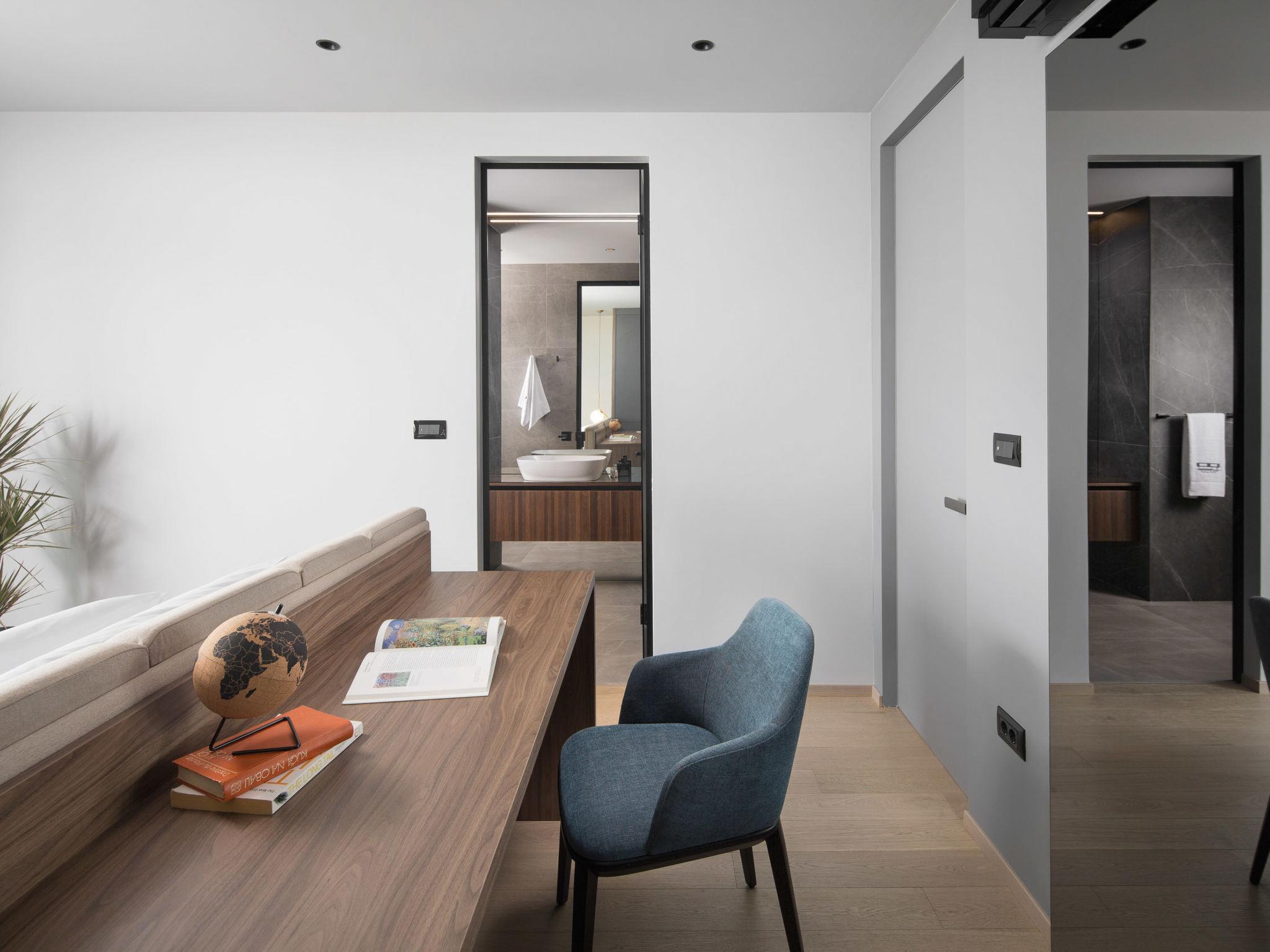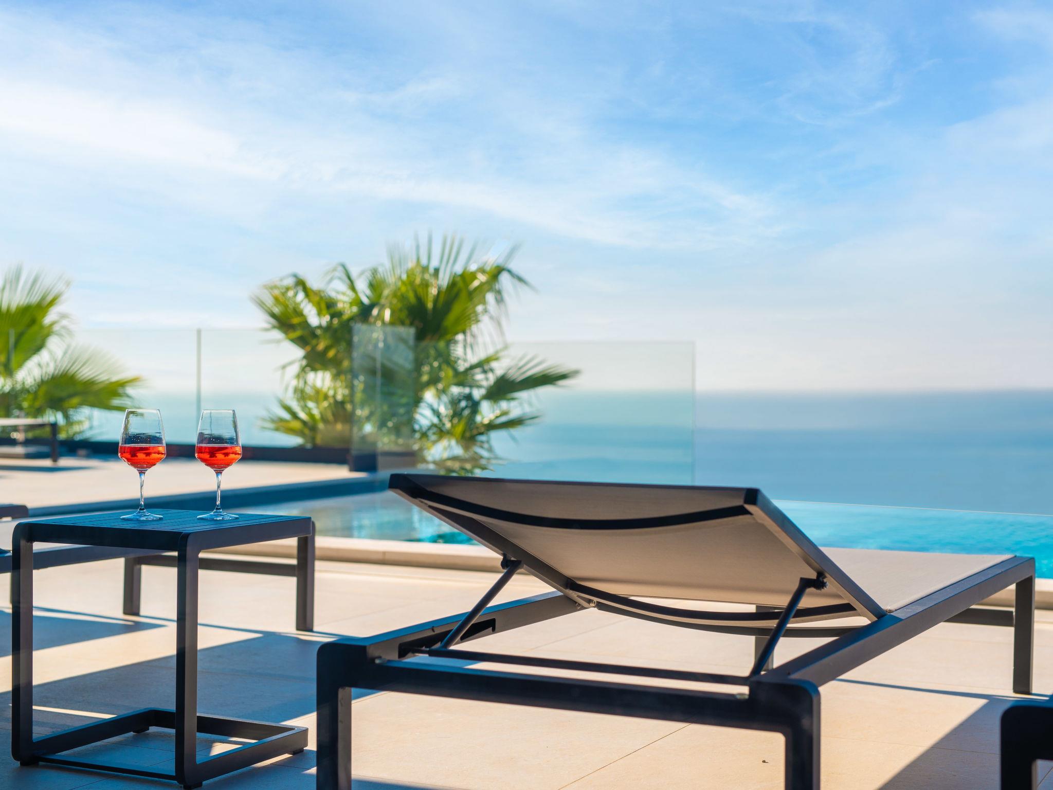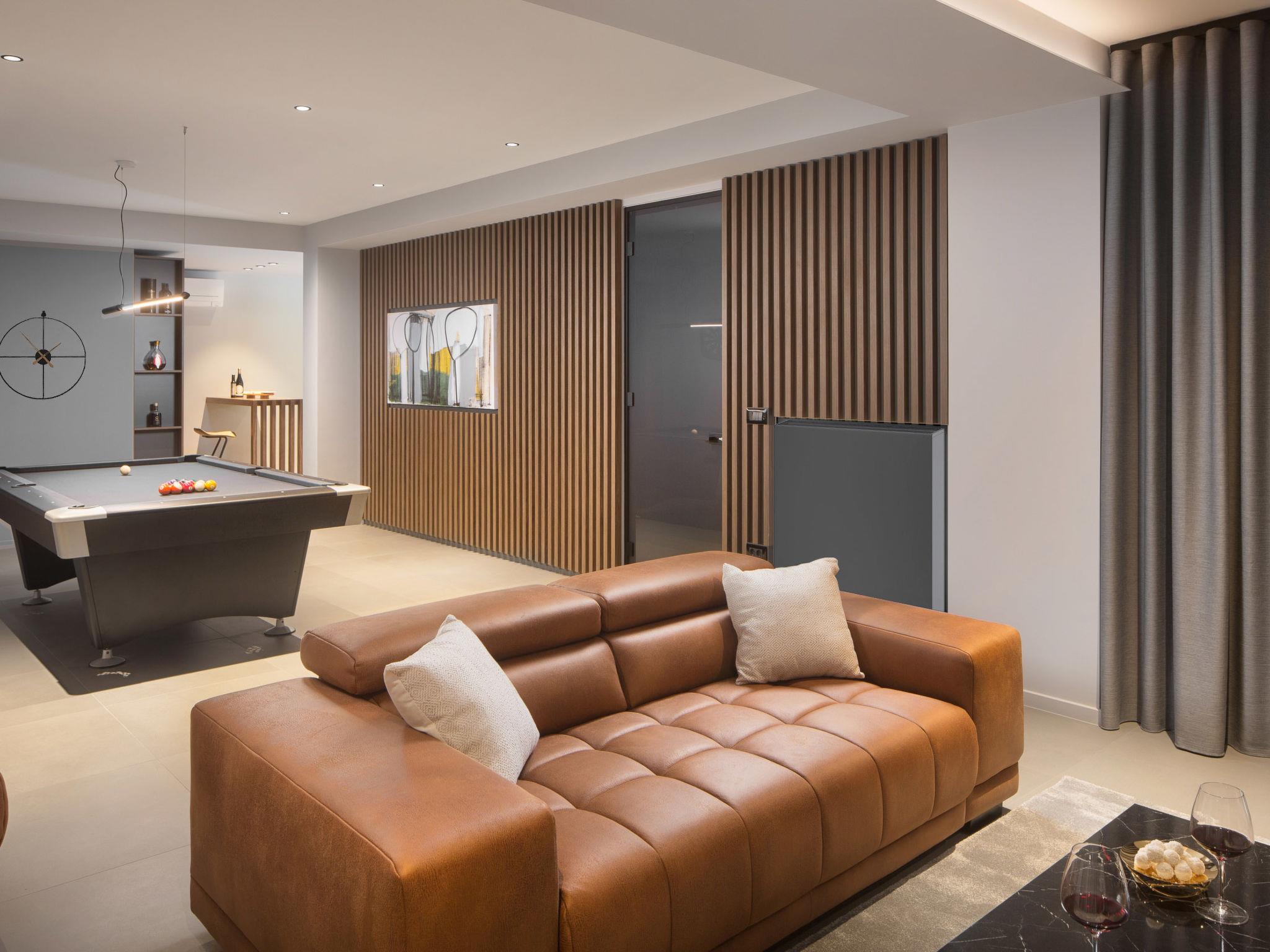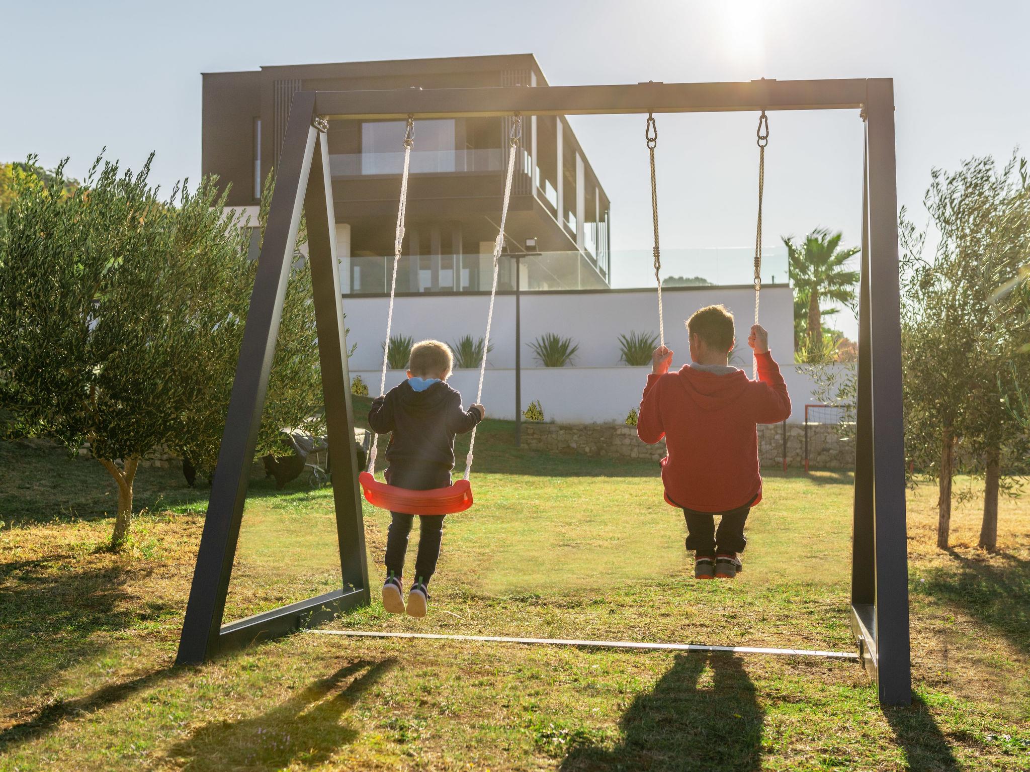 Koromacno 15 km from Labin: Very luxurious villa "Panoramica", 2 storeys, surrounded by trees and fields. In the hamlet Viškovici 15 km from the centre of Labin, in a quiet, sunny, elevated position, 1.1 km from the sea, 1.1 km from the beach. Private: property 8'240 m2 with lawn and trees, swimming pool angular (64 m2, depth 145 cm, seasonal availability: 01.Jan. - 31.Dec.) with internal staircase. Outdoor shower, hot tub, pool house with cooking stove, table tennis, barbecue, children's playground, pool maintenance by the owner/gardener. In the house: internet access, sauna, fitness room, massage (extra). Spa area, billiard table, central heating system, air conditioning, laundry, bicycles available (extra). Available: bicycles (6). Motor access to the house. Parking (for 6 cars) at the house on the premises, single garage. E-charging station. Shop 1 km, restaurant 1 km, bus stop 16.4 km, pebble beach 1.1 km, rocky beach 1.1 km. Marina 1.5 km, surf school 1.5 km.