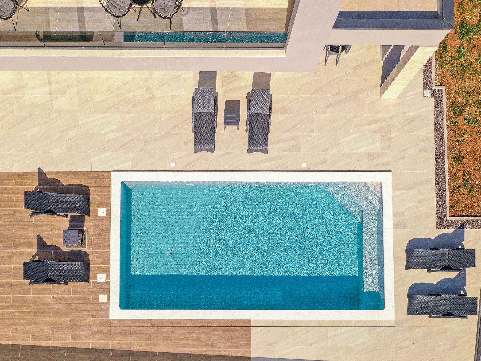 Beautiful villa "Lejla", 2 storeys. In the hamlet Viškovici 15 km from the centre of Labin, in a quiet, sunny position, 2 km from the sea, 2 km from the beach. Private: property 720 m2 (fenced), garden, swimming pool angular (8 x 4 m, depth 140 cm, seasonal availability: 01.Apr. - 02.Nov.) with internal staircase. Outdoor shower, garden furniture, barbecue. In the house: internet access, hot tub, washing machine. Parking (for 3 cars) at the house on the premises. Shop 3 km, restaurant 3 km, bus stop 16.6 km, sandy beach 2 km pebble beach 2 km. Marina 2 km, walking paths from the house 200 m, cycle lane 250 m. Groups of teenagers on request only.