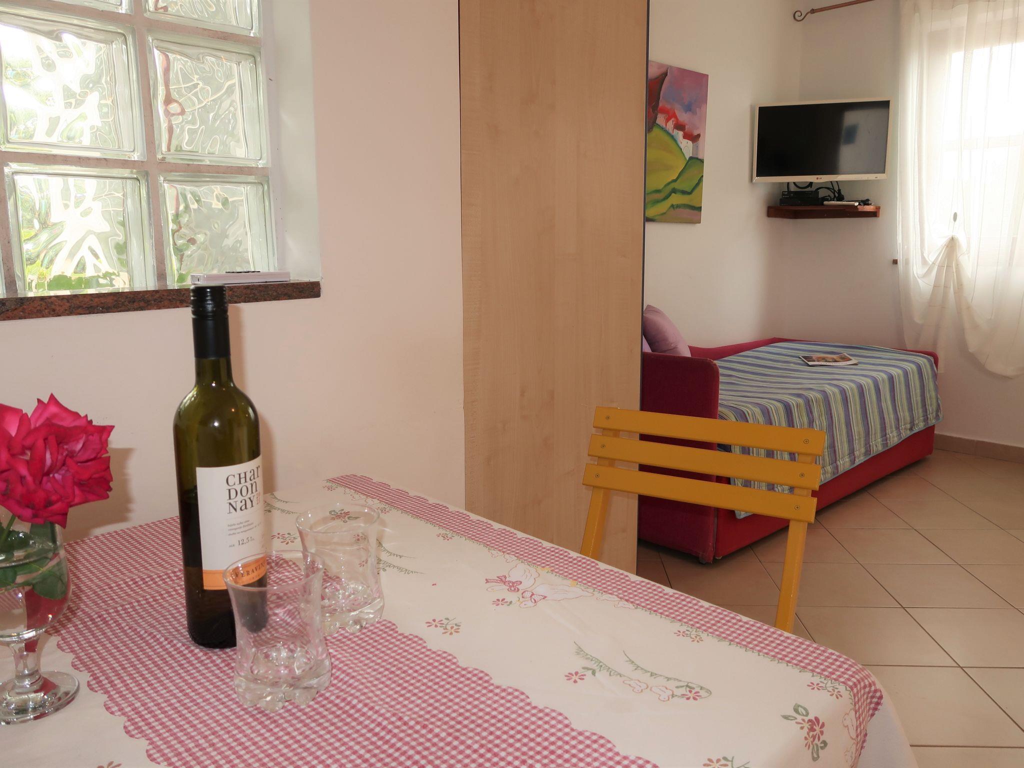 "Adalgisa", 1-room apartment 20 m2 on 1st floor. Studio with 1 double sofabed (2 x 80 cm, length 200 cm), satellite TV and air conditioning. Open kitchen (2 hot plates, toaster, kettle, microwave, electric coffee machine) with dining table. Shower/WC. Terrace 4 m2. Terrace furniture, barbecue (portable), deck chairs (2). Facilities: Internet (WiFi, free). Please note: non-smoking house. Maximum 2 pets/ dogs allowed. Private entrance.