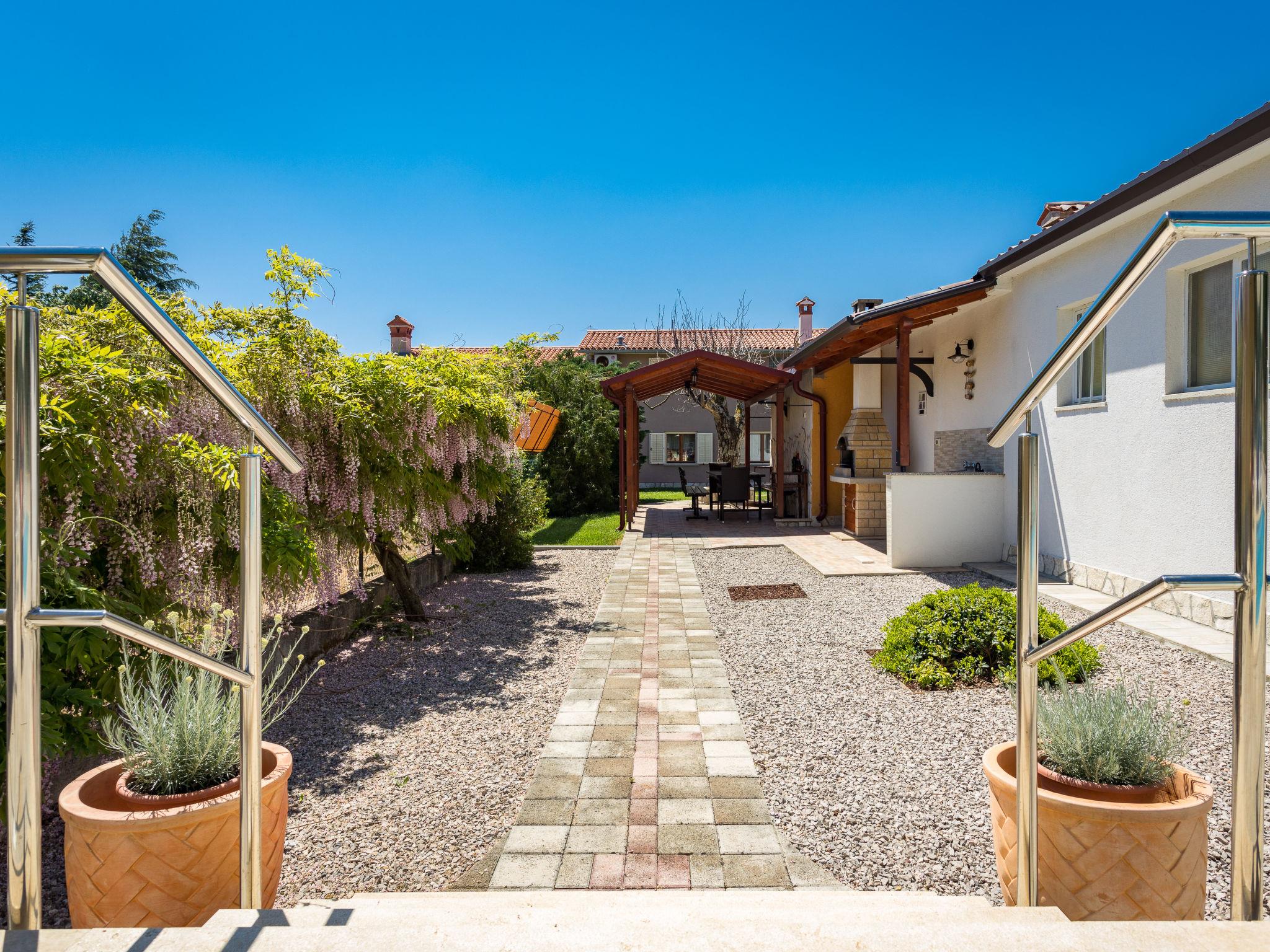 Semi-detached house "Verbanac", 2 storeys. 1.5 km from the centre of Vinez, 2.5 km from the centre of Labin, 7 km from the centre of Rabac, 7 km from the sea. For shared use: property 10'000 m2 with lawn and trees. Private: property 5'000 m2 with lawn and trees, swimming pool (7 x 3 m, 26 m2, depth 135 cm, seasonal availability: 08.May. - 09.Oct.). Outdoor shower, table tennis, badminton, terrace, barbecue (swing), pool maintenance by the owner/gardener. In the house: internet access, washing machine. Parking (for 3 cars) on the premises. Shop 1 km, supermarket 2 km, bus stop 3.1 km, pebble beach 7 km. Marina 7 km. Part of the house is closed and unoccupied.