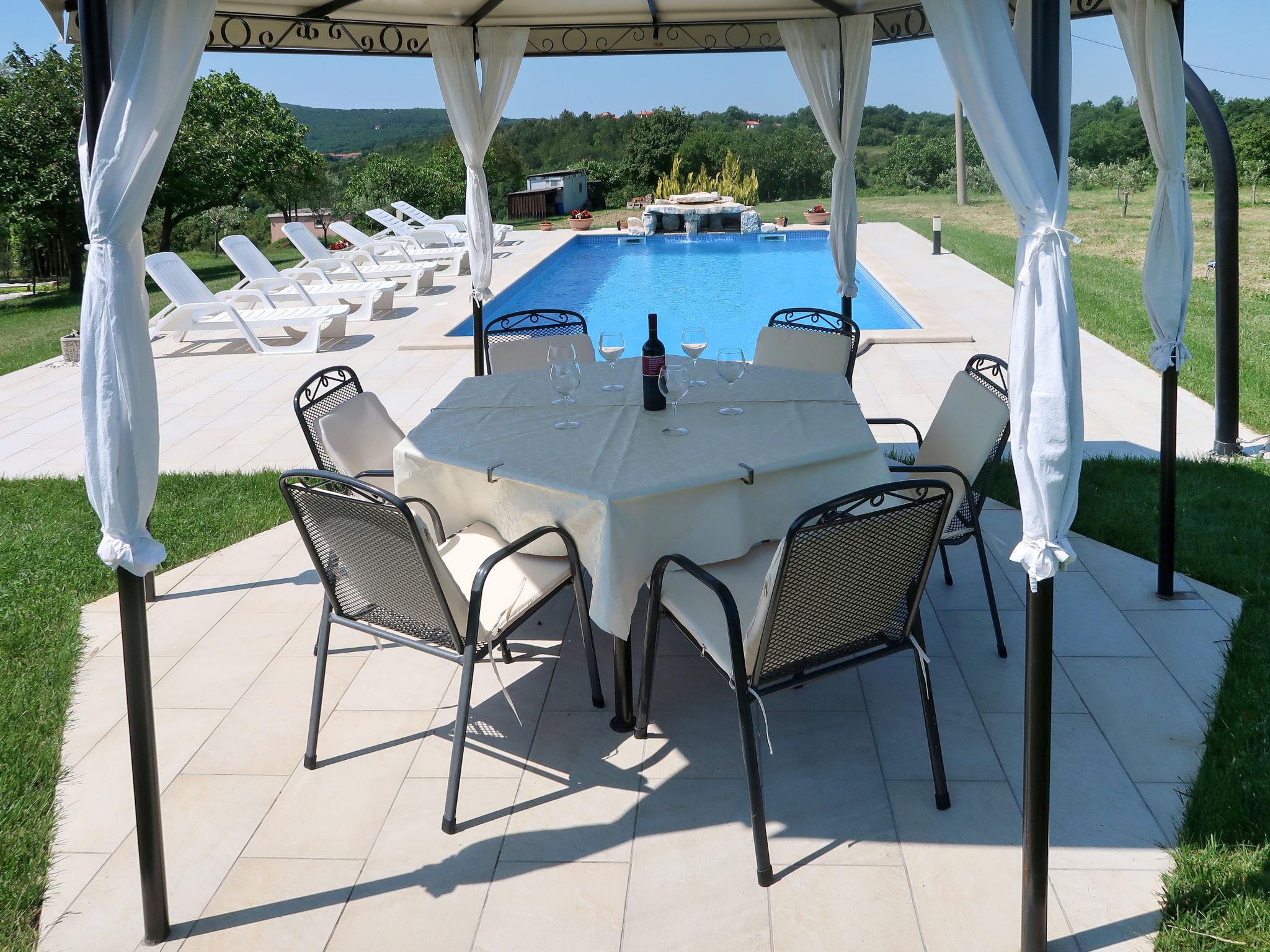 Semi-detached house "Andrea", 2 storeys. In the district of Gondolici 1 km from the centre of Labin, 5 km from the centre of Rabac, 2.5 km from the sea, 2.5 km from the beach. For shared use: property 4'000 m2 with lawn and trees. Private: property 150 m2 with lawn, swimming pool (34 m2, depth 130 cm, seasonal availability: 01.May. - 01.Oct.) with internal staircase. Outdoor shower, patio, terrace, garden furniture, barbecue (swing), pool maintenance by the owner/gardener. In the house: internet access, washing machine. Parking on the premises. Shop 1 km, supermarket 1.5 km, restaurant 1 km, bus stop 1.1 km, pebble beach 5 km, rocky beach 2.5 km. Marina 5 km. Owner lives in separate semi-detached house.