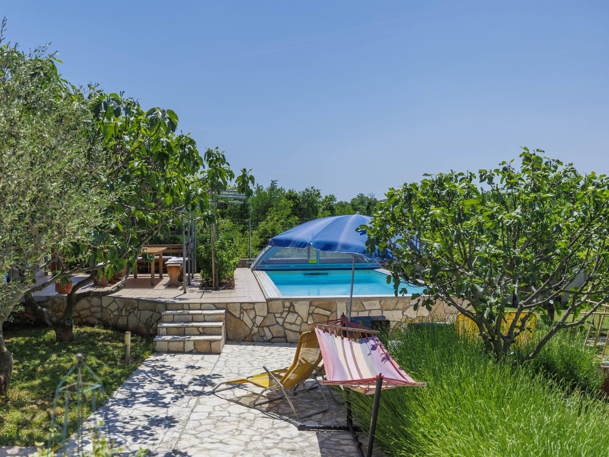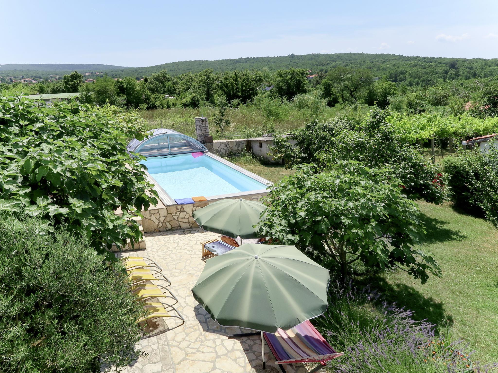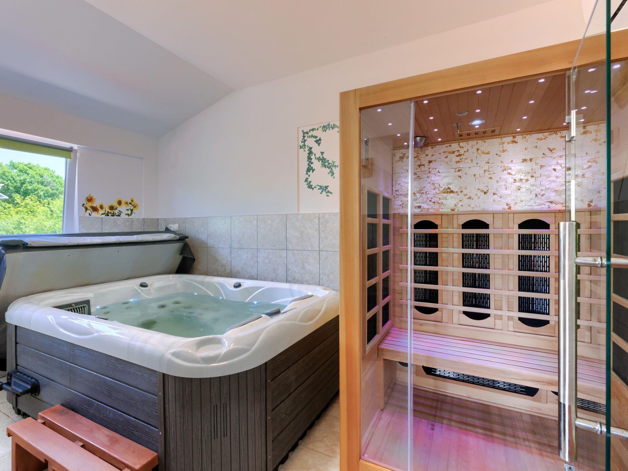 2-family house "Laura". In the hamlet Kapelica 2 km from the centre of Labin, 7 km from the sea. For shared use: property 1'000 m2 with trees, meadow. Private: swimming pool angular, heated (7 x 3 m, 24 m2, depth 140 cm, seasonal availability: 04.Apr. - 06.Nov.) with internal staircase and shutter cover. WC in the pool area, outdoor shower, terrace, garden furniture, barbecue. In the house: internet access, sauna, hot tub. Roofed, parking (for 2 cars) at the house on the premises. Shop 500 m, bus stop 3.7 km, pebble beach 7 km, rocky beach 7 km. Marina 7 km. Please note: airfield 45 km from the property. Private: outdoor kitchen (hobs, oven, dishwasher, refrigerator).