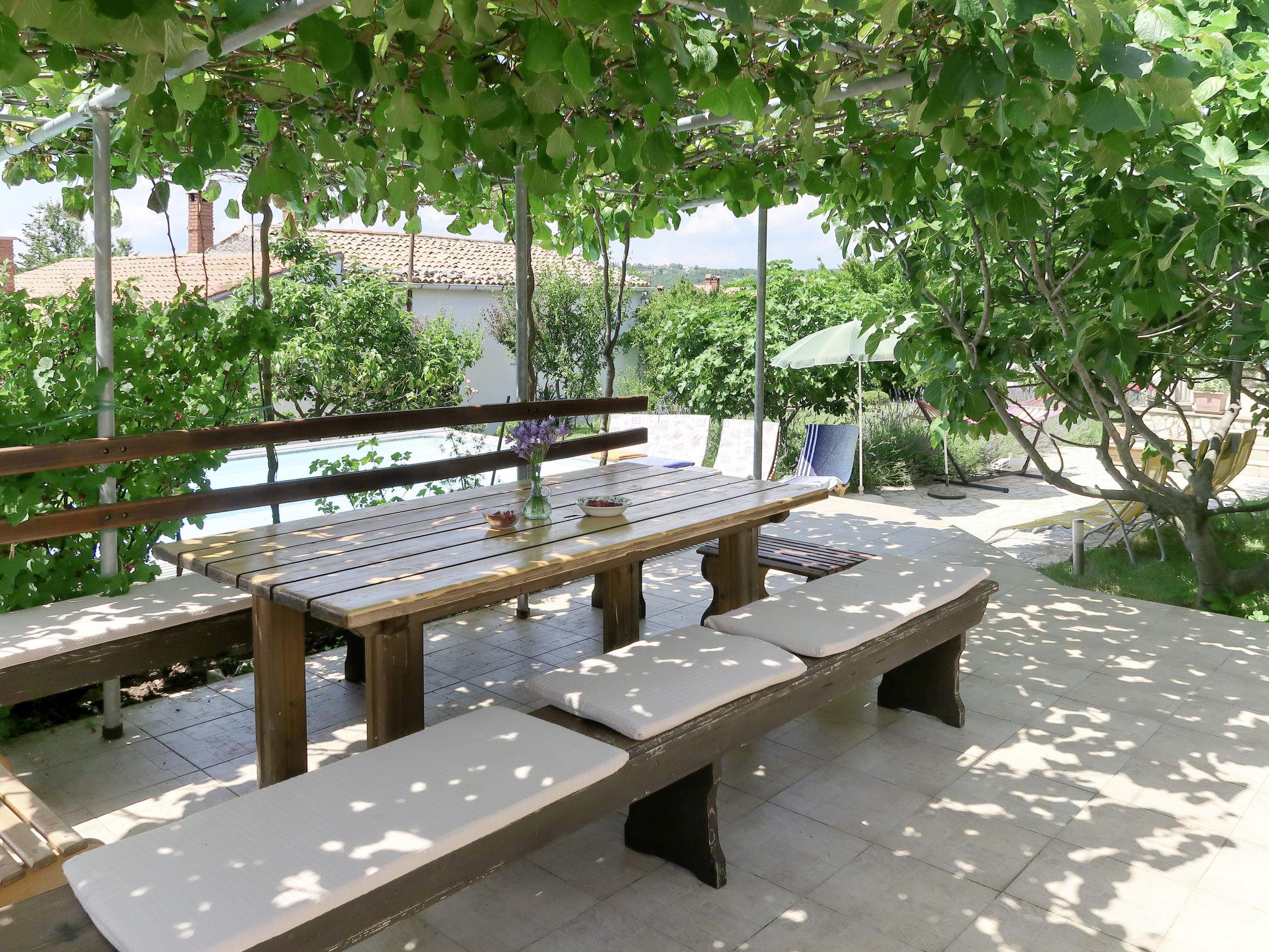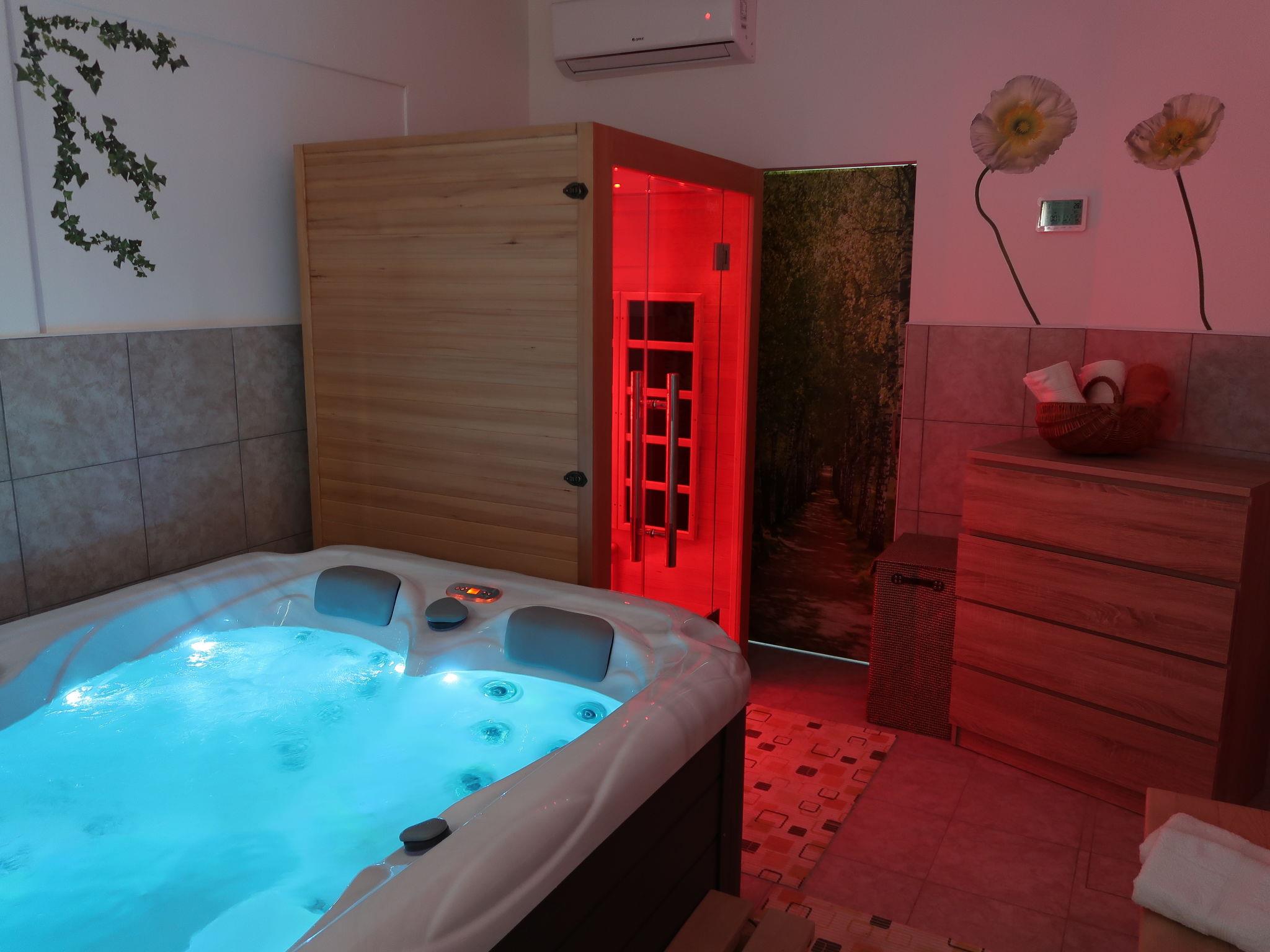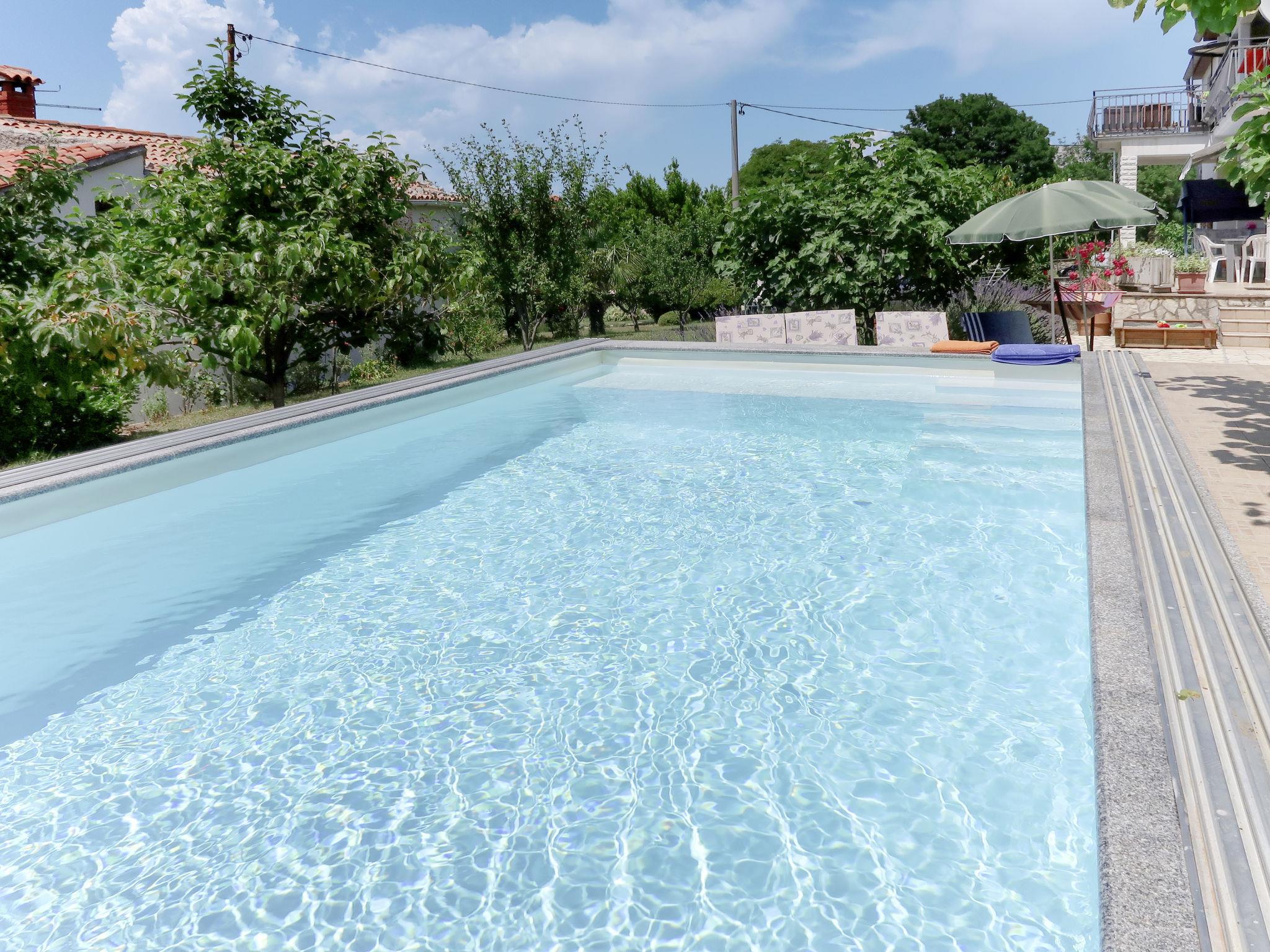 2-family house "Laura". In the hamlet Kapelica 2 km from the centre of Labin, 7 km from the sea. For shared use: property 1'000 m2 with trees, meadow. Private: swimming pool angular, heated (7 x 3 m, 24 m2, depth 140 cm, seasonal availability: 04.Apr. - 06.Nov.) with internal staircase and shutter cover. WC in the pool area, outdoor shower, terrace, garden furniture, barbecue. In the house: internet access, sauna, hot tub. Roofed, parking (for 2 cars) at the house on the premises. Shop 500 m, bus stop 3.7 km, pebble beach 7 km, rocky beach 7 km. Marina 7 km. Please note: airfield 45 km from the property. Private: outdoor kitchen (hobs, oven, dishwasher, refrigerator).