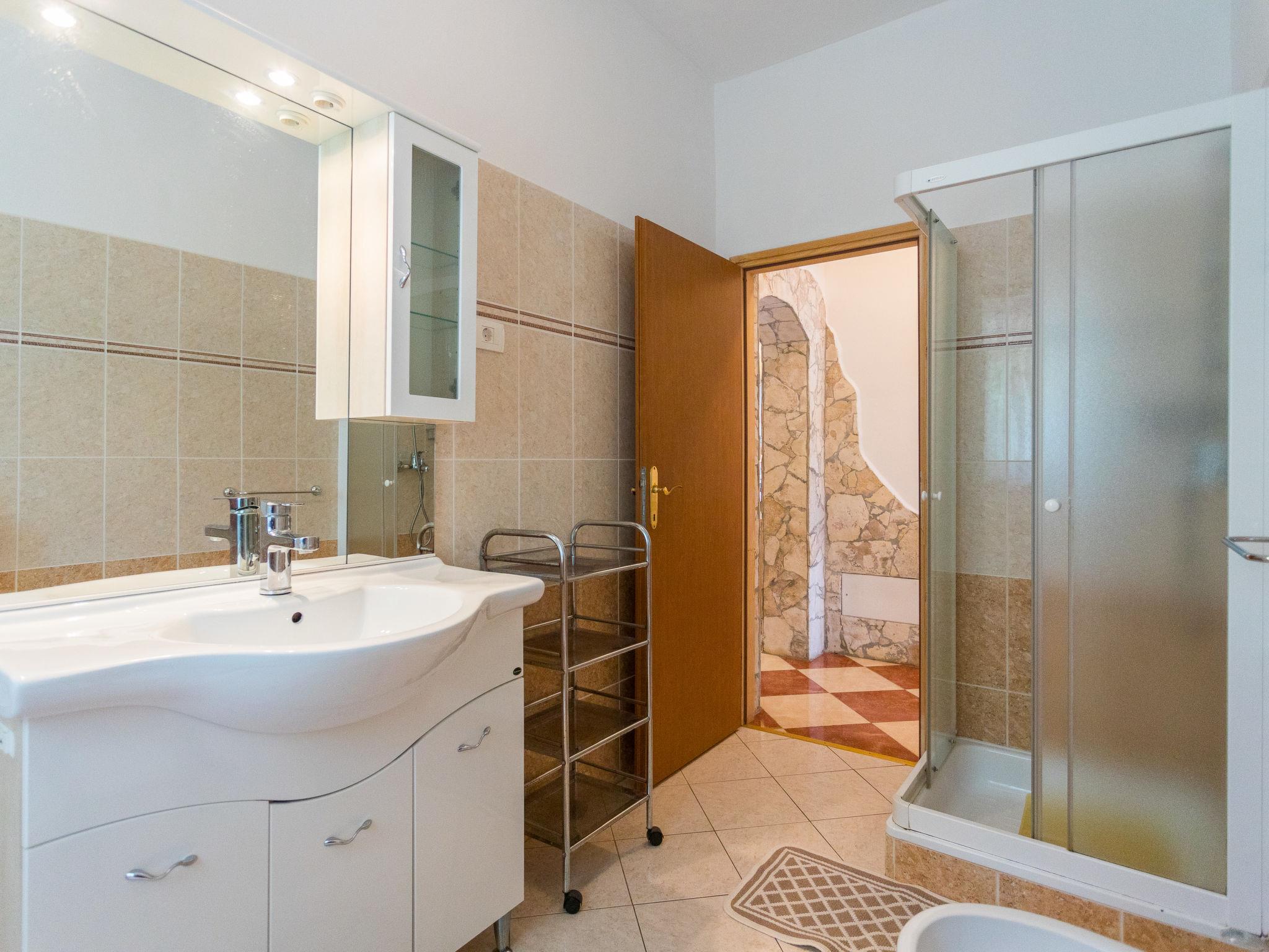 Single-family house "Villa Tanne", 2 storeys. In the hamlet Štrmac 4 km from the centre of Labin, 9 km from the centre of Rabac, 9 km from the sea, in the countryside. For shared use: property 5'000 m2 with trees, meadow. Private: swimming pool heated (11 x 6 m, depth 140 cm, seasonal availability: 04.Apr. - 06.Nov.). Outdoor shower, terrace (slide, swing). In the house: internet access, billiard table, table football, washing machine. Parking (for 6 cars) at the house on the premises. Shop 600 m, bus stop 700 m, pebble beach 9 km. Marina 9 km. Swimming pool with hydromassage. It is necessary to announce 7 days in advance if the pool heating is required. The house consists of 3 apartments rented as one unit: one apartment on the ground floor and two apartments on the first floor.