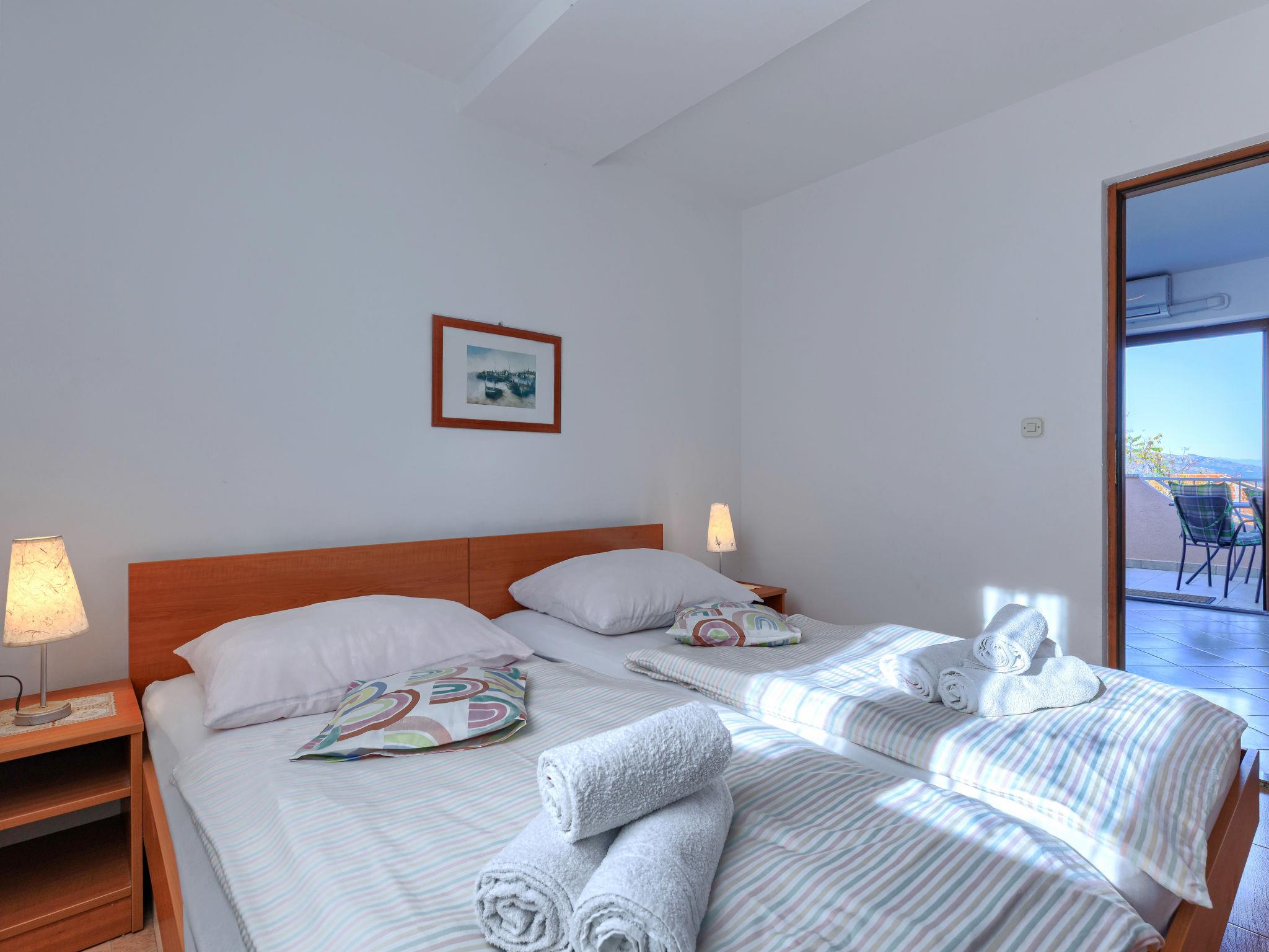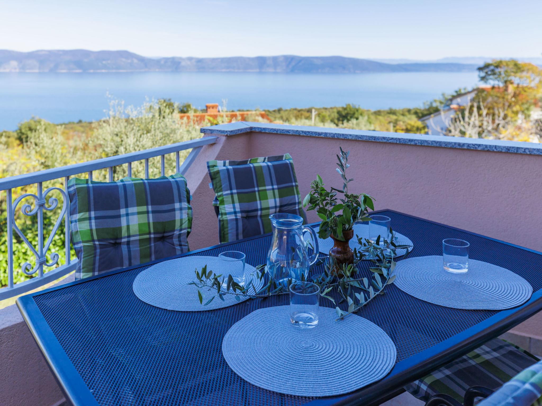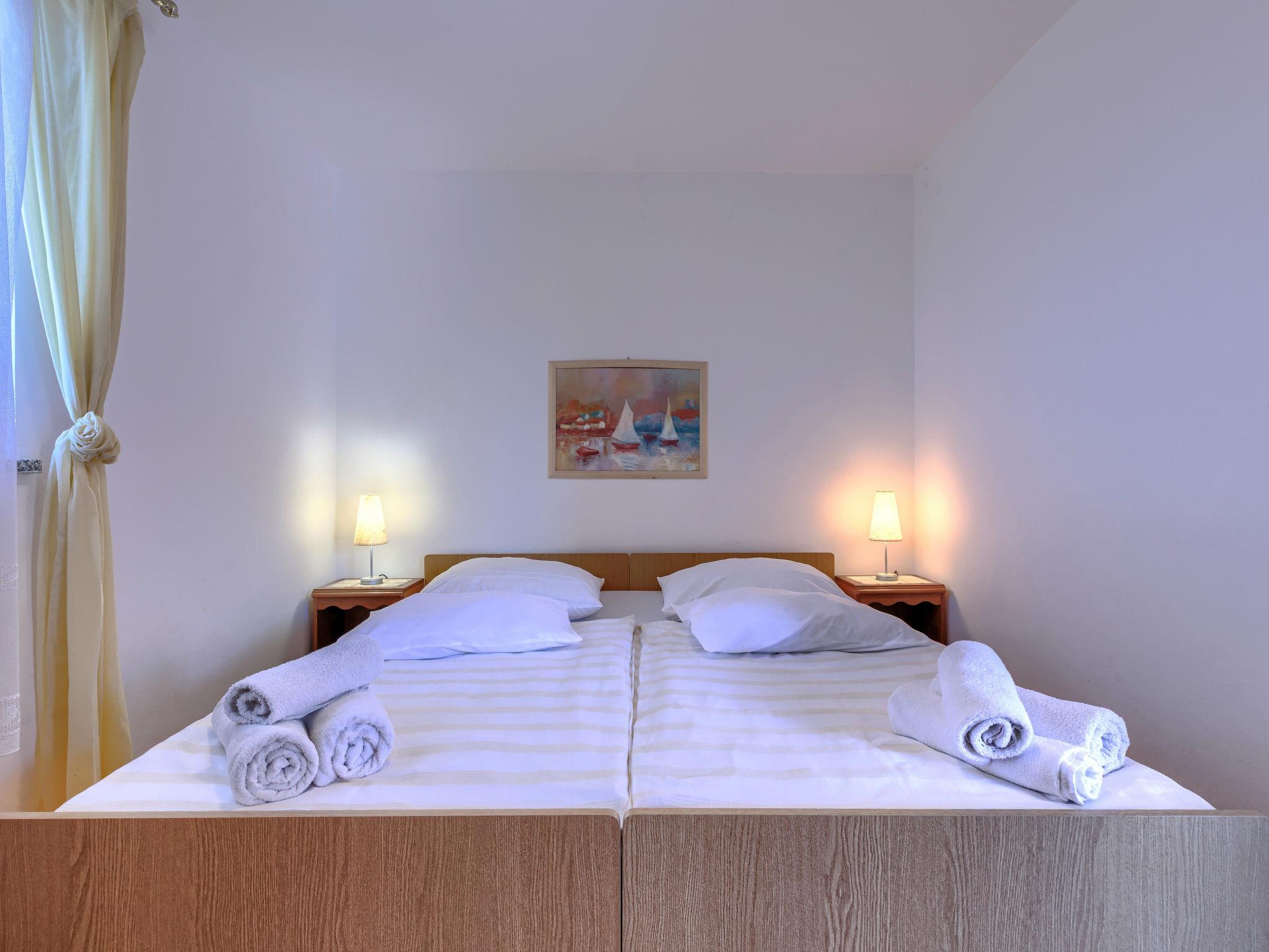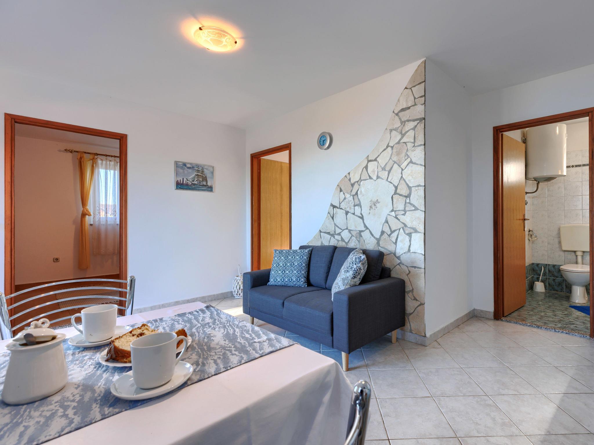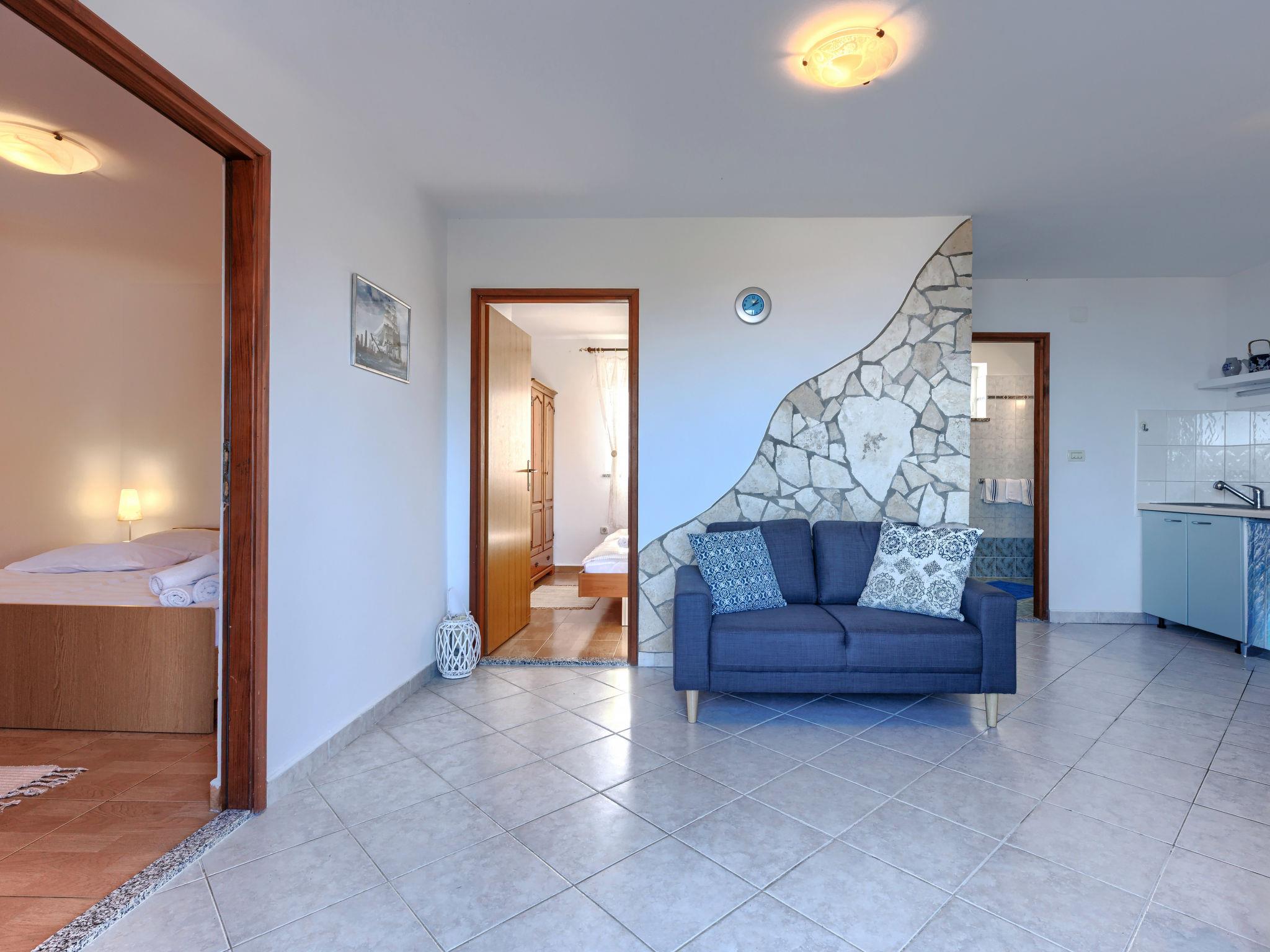 "Teo", 3-room apartment 56 m2 on 1st floor. Living/dining room with satellite TV and air conditioning. Exit to the terrace. 2 rooms, each room with 2 beds. Open kitchen (4 hot plates, oven, toaster, kettle, microwave, freezer, electric coffee machine). Shower/WC. No heating option. Terrace 15 m2. Terrace furniture, deck chairs (2). View of the sea. Facilities: mosquito net. Internet (WiFi, free). Please note: non-smoking house.