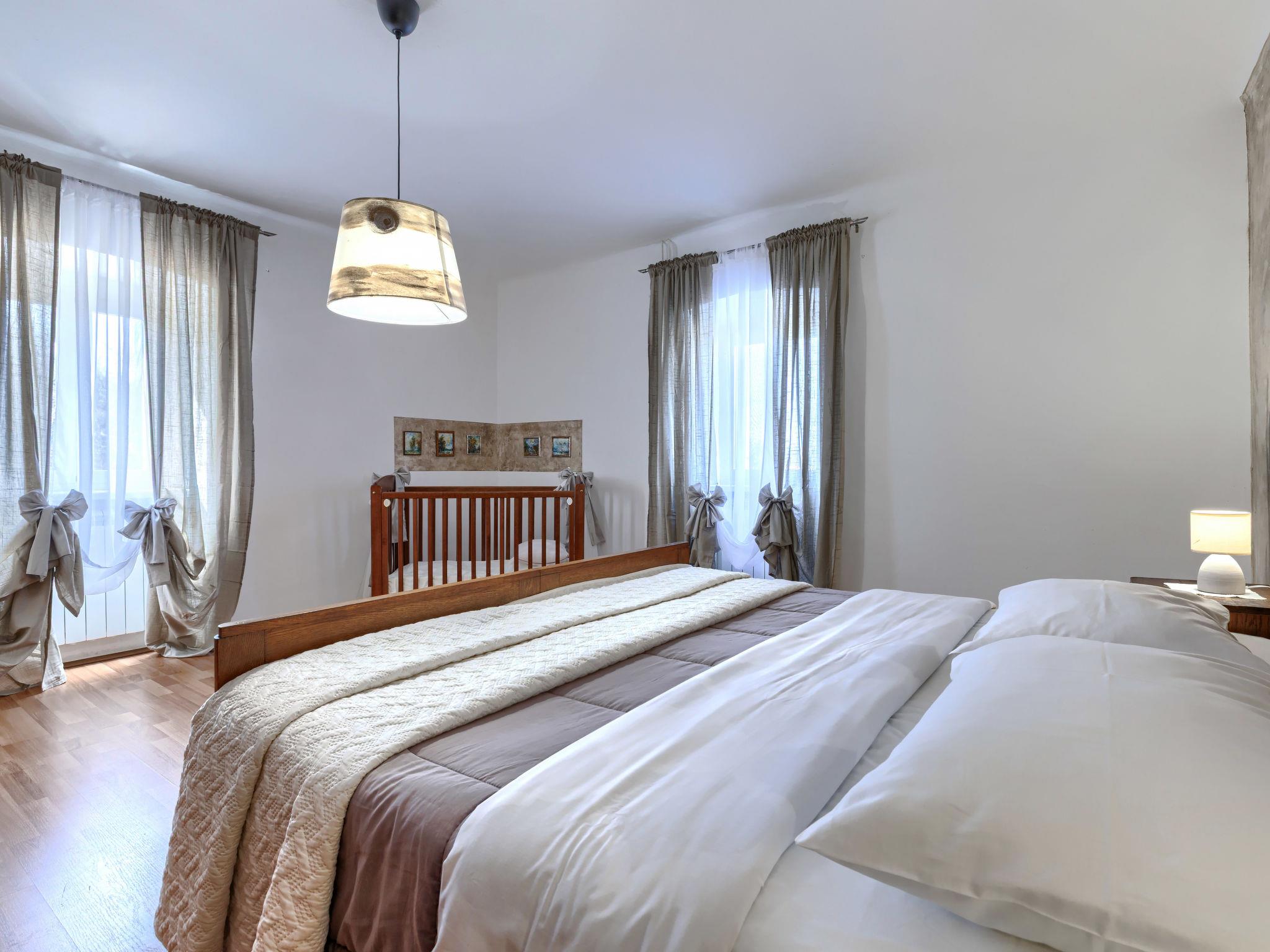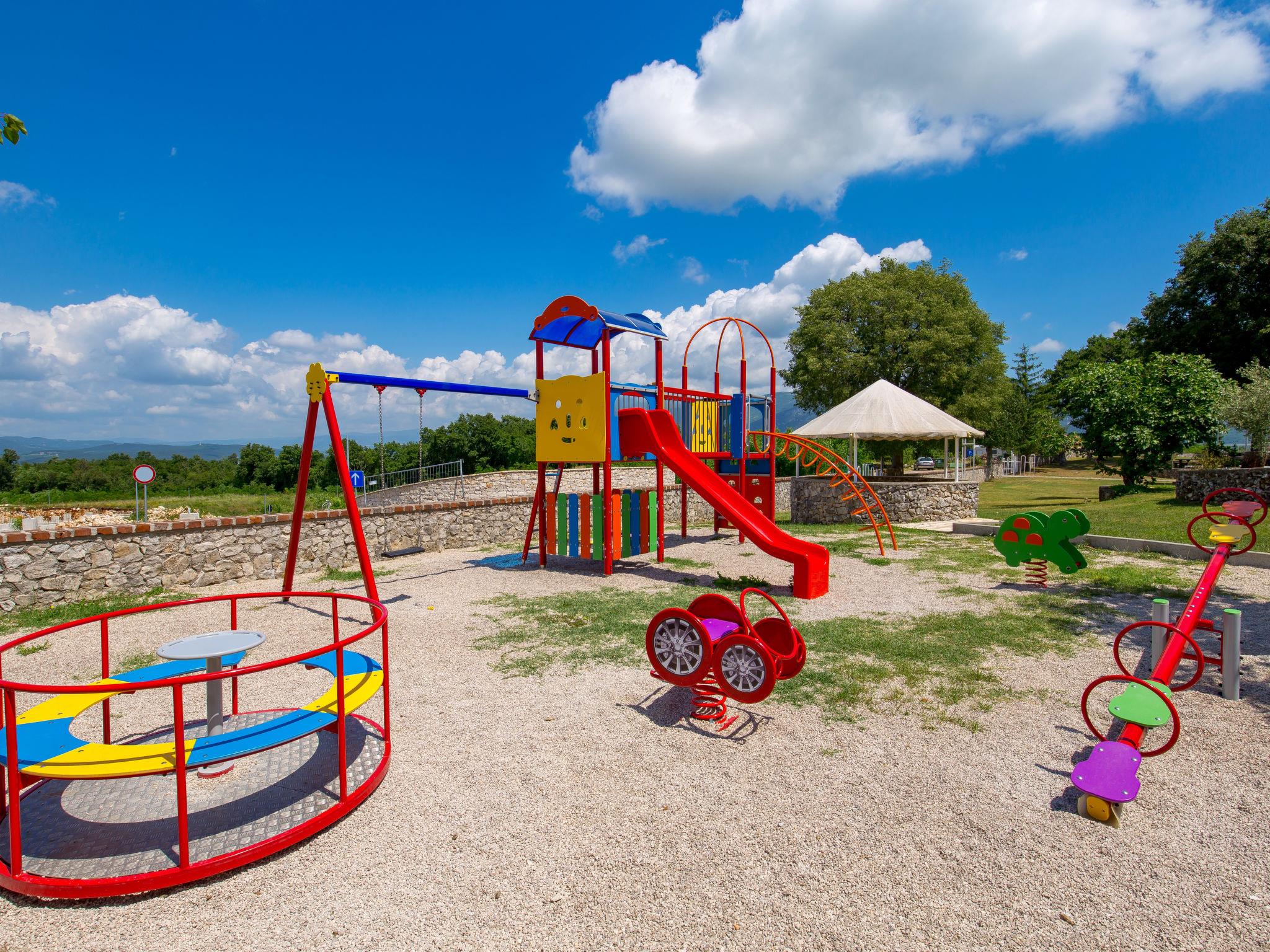 Country house, surrounded by trees and meadows. 8 km from the centre of Labin, 5 km from the sea, in a cul-de-sac. For shared use: property 6'000 m2 with trees, meadow, swimming pool angular (12 x 5 m, depth 135 cm, seasonal availability: 15.May. - 25.Sep.) with internal staircase. Outdoor shower, volleyball court, arbour, terrace, garden furniture, barbecue, children's playground (slide, swing). In the house: internet access. Parking on the premises. Shop 300 m, bus stop 2.9 km, pebble beach 5 km, rocky beach 5 km. Please note: the owner lives on the same property.