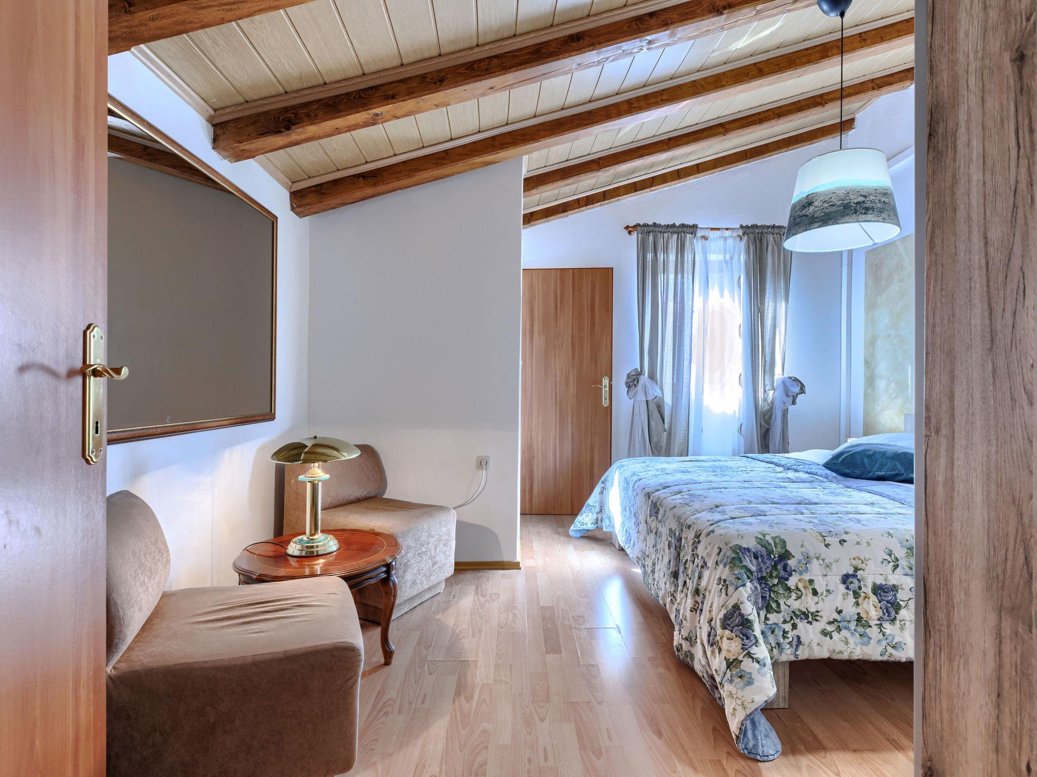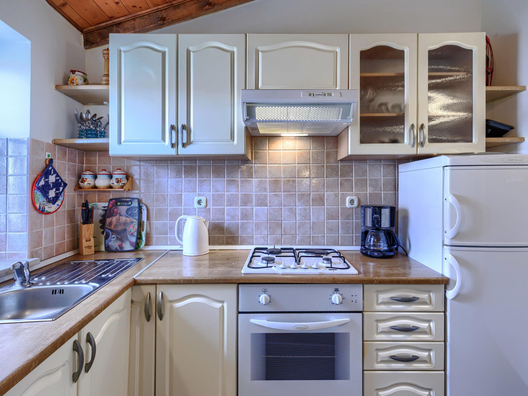 "Rotonda", 4-room house 110 m2 on 2 levels. Living/dining room with satellite TV (flat screen), air conditioning. 1 room with 1 french bed (180 cm, length 200 cm), air conditioning. 1 room with 2 beds. Open kitchen (1 hot plate, oven, dishwasher, 3 gas rings, toaster, kettle, electric coffee machine). Shower/WC. No heating option. Upper floor: 1 room with 1 french bed (180 cm, length 200 cm), air conditioning. Sep. WC. Terrace furniture. Facilities: washing machine, iron, baby cot. Internet (WiFi, free). Please note: non-smoking house. Maximum 1 pet/ dog allowed.