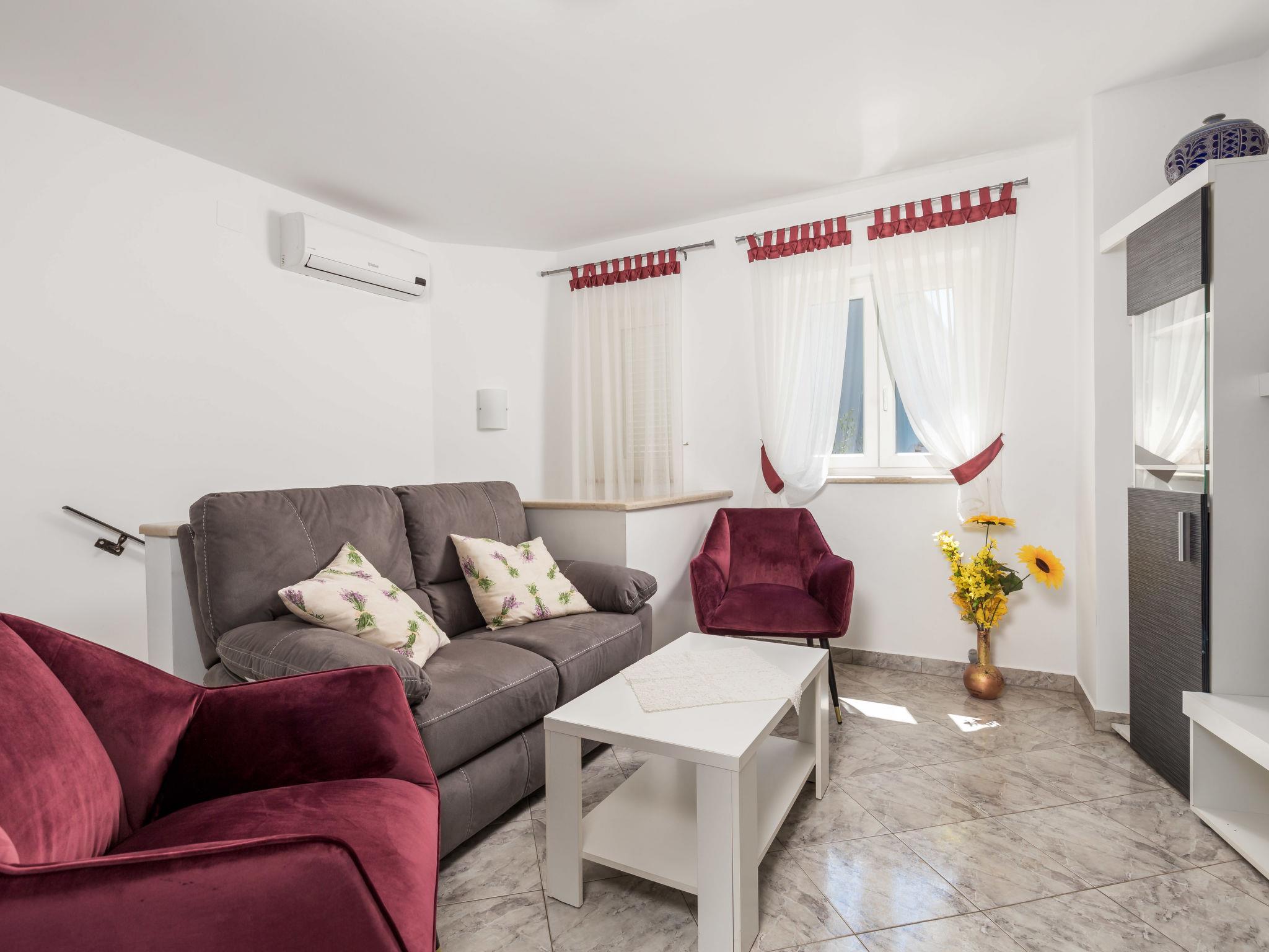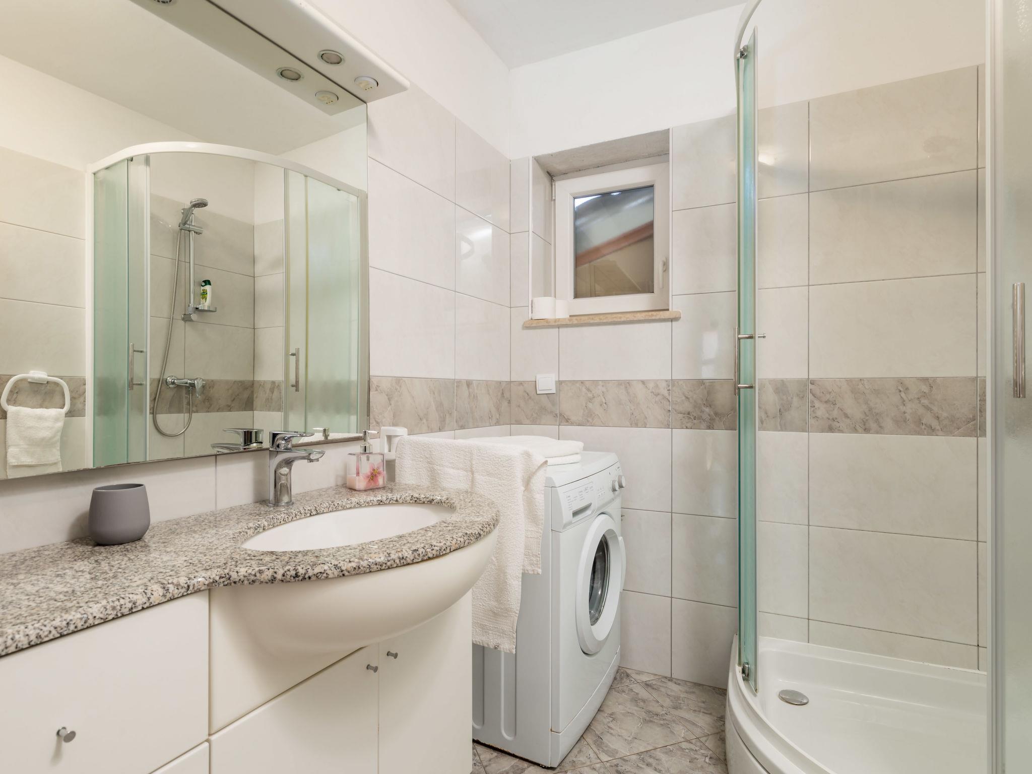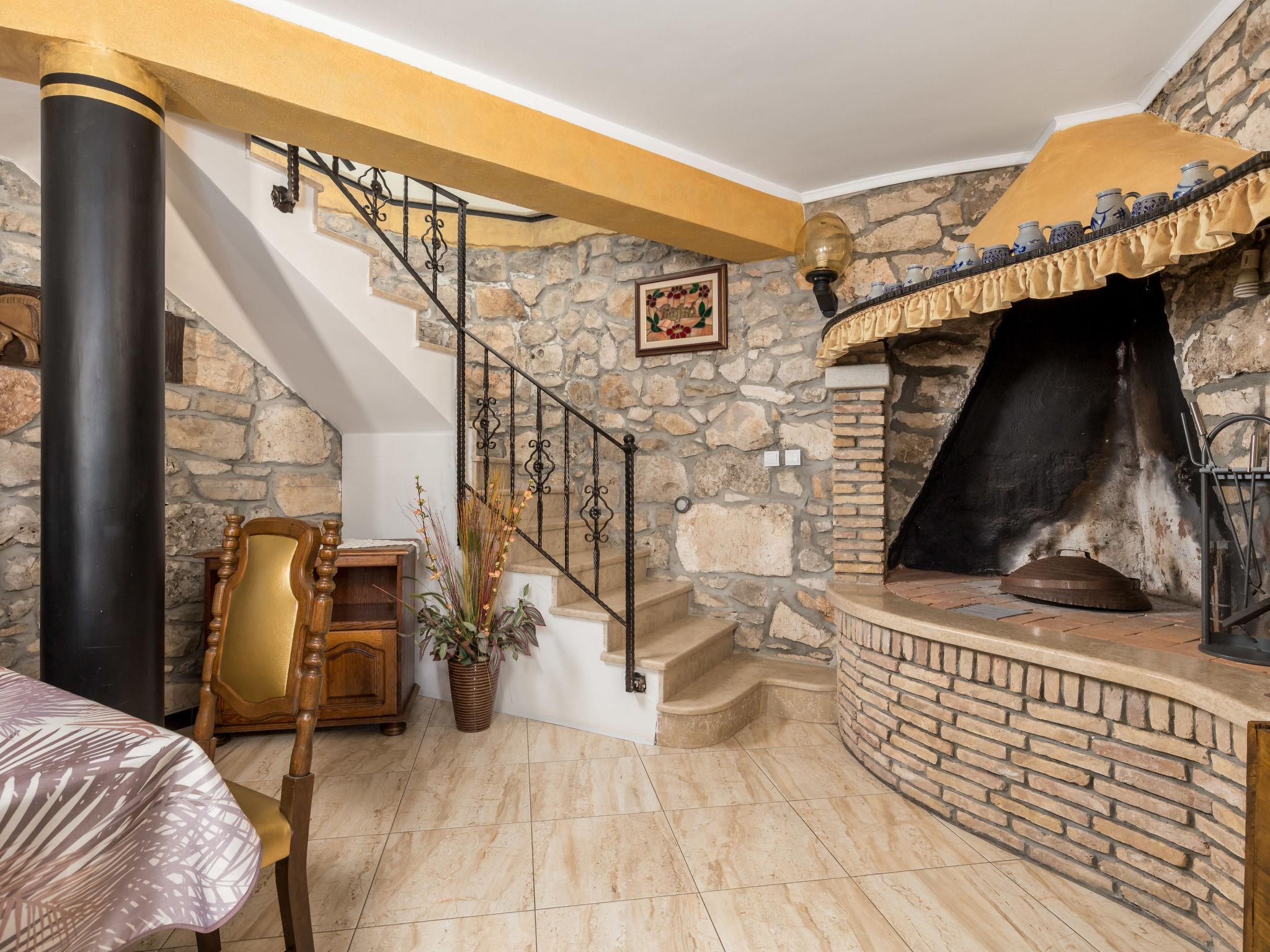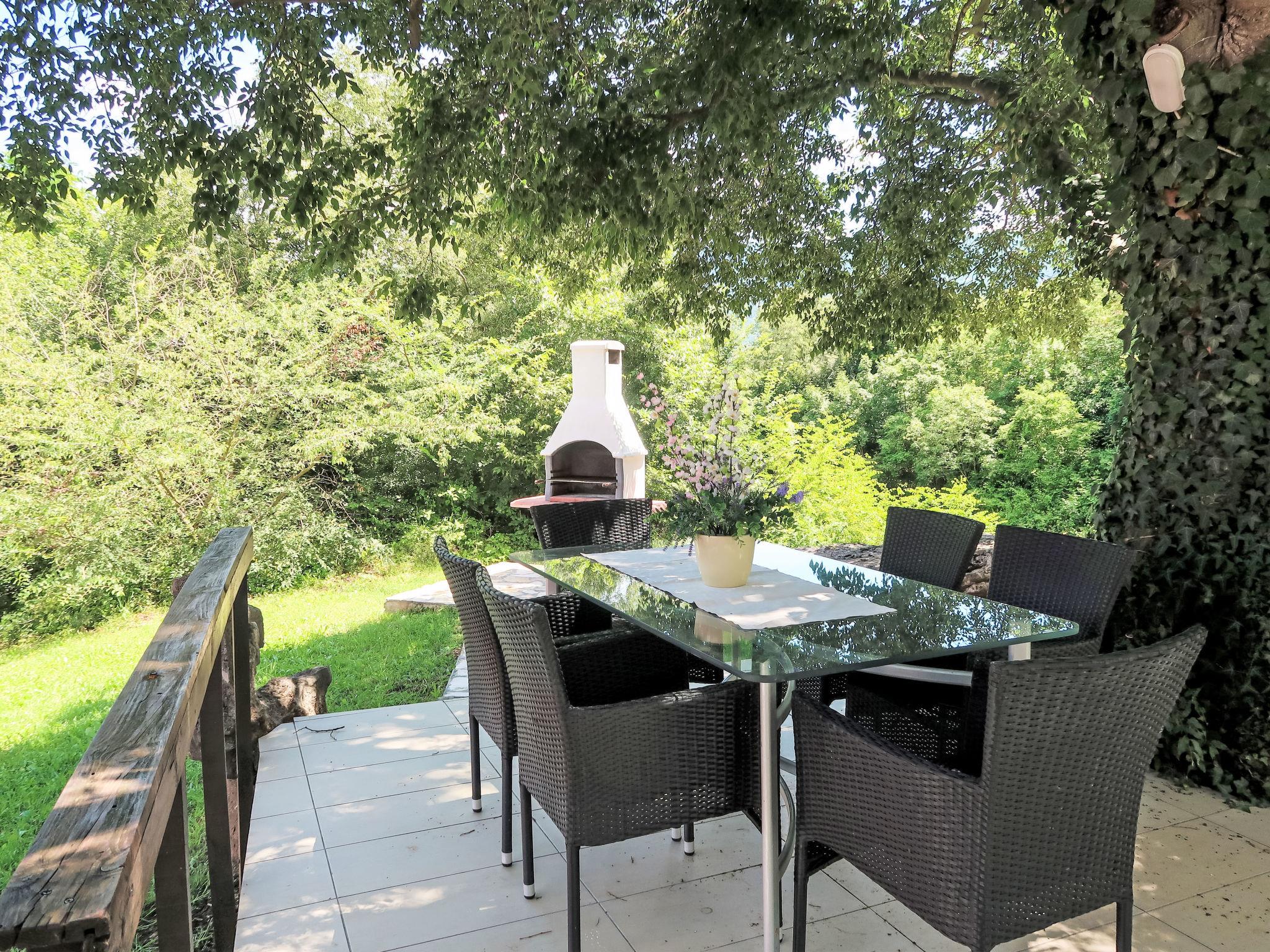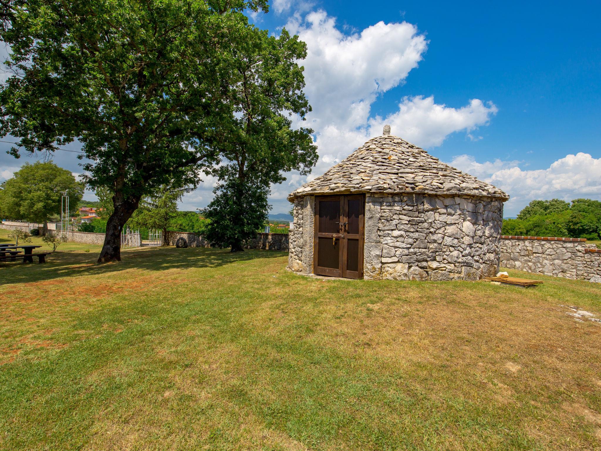 Country house, surrounded by trees and meadows. 8 km from the centre of Labin, 5 km from the sea, in a cul-de-sac. For shared use: property 6'000 m2 with trees, meadow, swimming pool angular (12 x 5 m, depth 135 cm, seasonal availability: 15.May. - 25.Sep.) with internal staircase. Outdoor shower, volleyball court, arbour, terrace, garden furniture, barbecue, children's playground (slide, swing). In the house: internet access. Parking on the premises. Shop 300 m, bus stop 2.9 km, pebble beach 5 km, rocky beach 5 km. Please note: the owner lives on the same property.