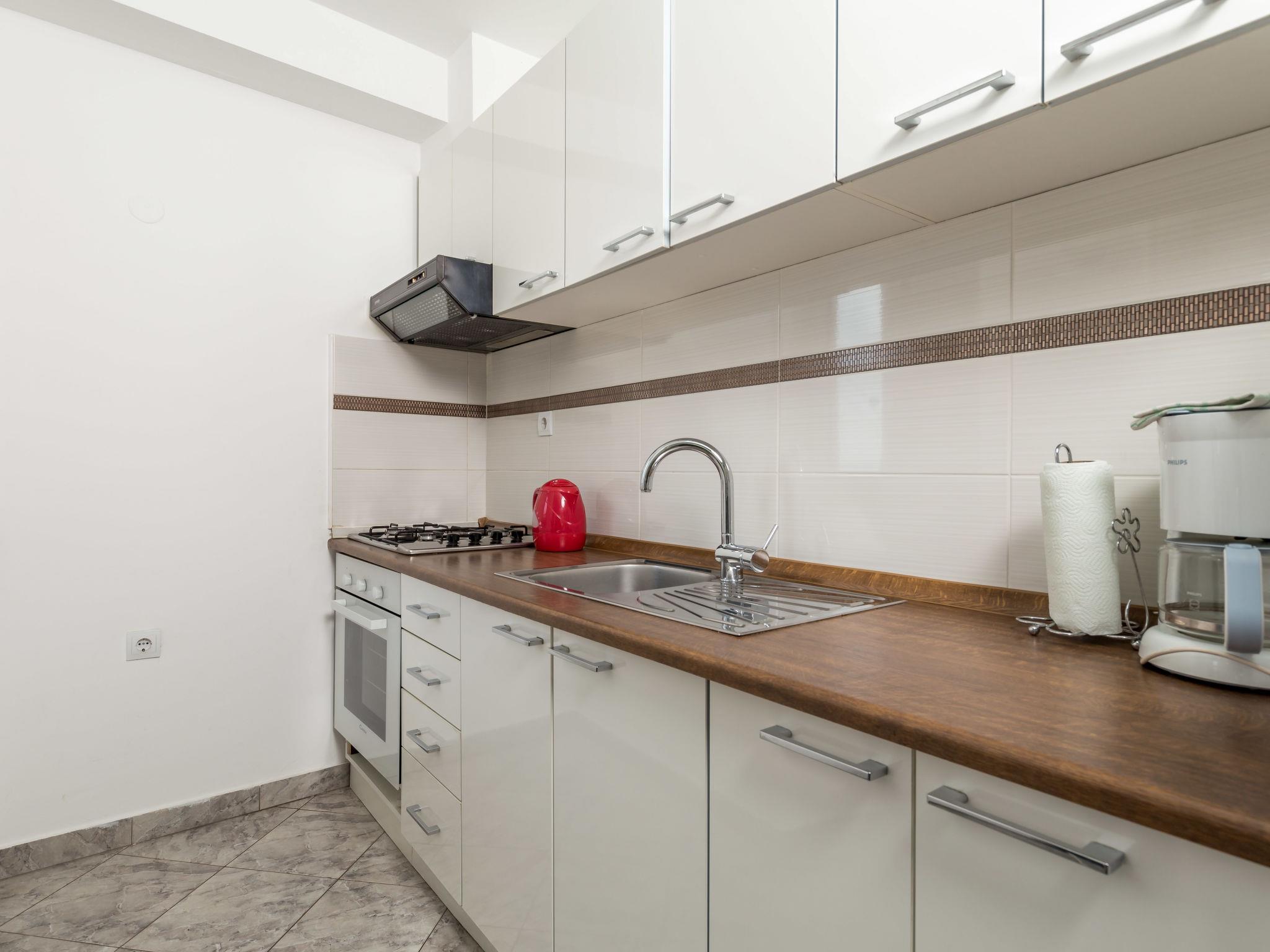 "Diana", 4-room house 120 m2 on 2 levels. Living/dining room with satellite TV (flat screen), air conditioning. Exit to the balcony. 2 rooms, each room with 1 french bed (160 cm, length 200 cm), air conditioning. Open kitchen (1 hot plate, oven, dishwasher, 3 gas rings, toaster, kettle, microwave, electric coffee machine). Shower/WC. On the lower ground floor: dining room with open-hearth fireplace. 1 room with 1 french bed (180 cm, length 200 cm). Sep. WC. No heating option. Balcony. Balcony furniture, barbecue. Facilities: washing machine, baby cot. Internet (WiFi, free). Please note: non-smoking house. Maximum 1 pet/ dog allowed. Part of the house is closed and unoccupied.