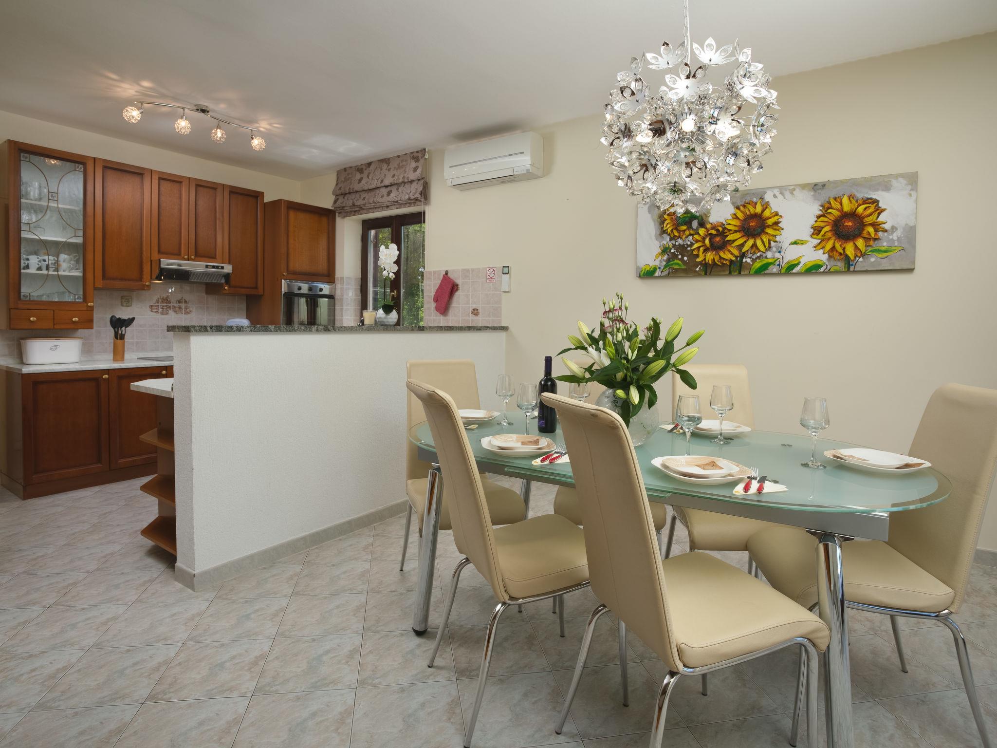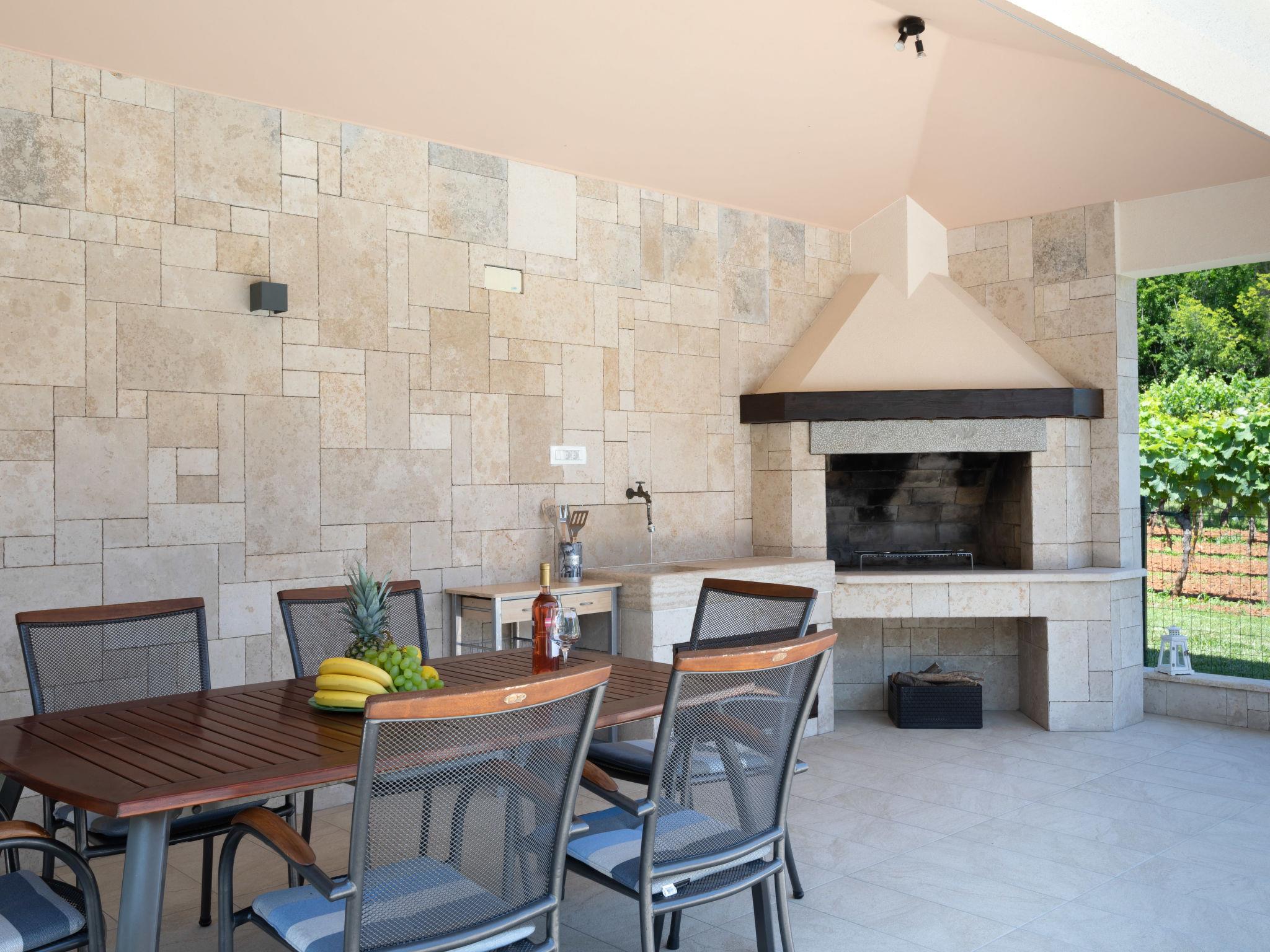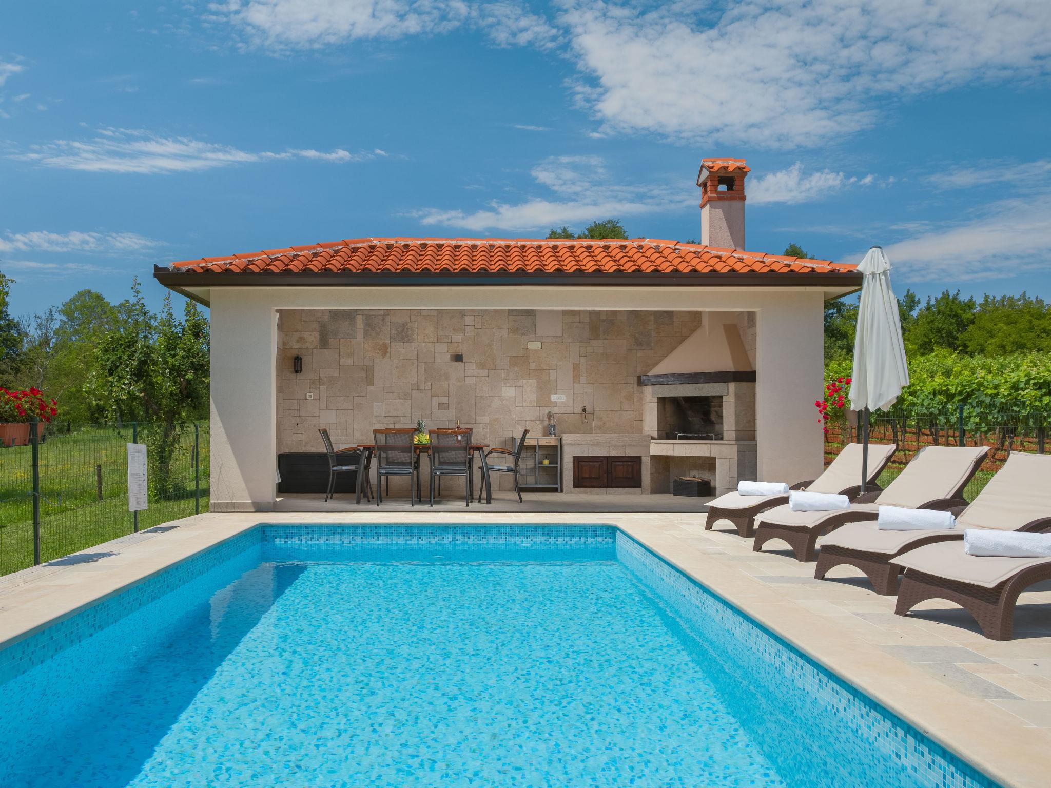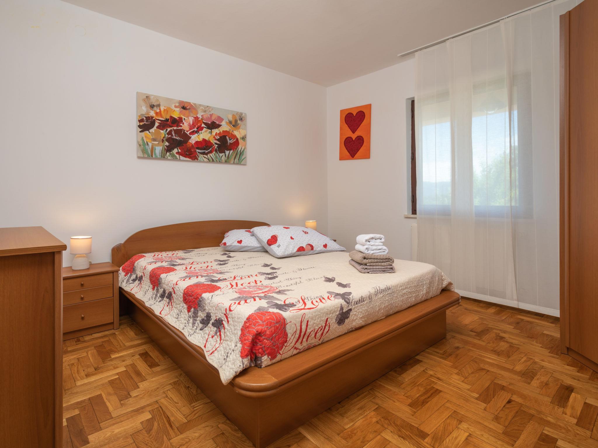 Single-family house "Ana", 2 storeys. In the hamlet Ružici 9 km from the centre of Labin, in a quiet, sunny position, 14 km from the sea, in the countryside. Private: property 3'000 m2, garden wildlife garden and trees, swimming pool angular (7 x 3 m, 24 m2, depth 130 cm, seasonal availability: 22.May. - 11.Sep.). Outdoor shower, terrace, garden furniture, barbecue, children's playground (slide, swing). In the house: internet access, washing machine. Parking (for 2 cars) at the house on the premises. Shop 2 km, supermarket 9 km, restaurant 2 km, café 9 km, bus stop 7.2 km, pebble beach 14 km. Please note: suitable for families. Part of the house is closed and unoccupied. Animals in the neighbourhood. Youth groups are not allowed.