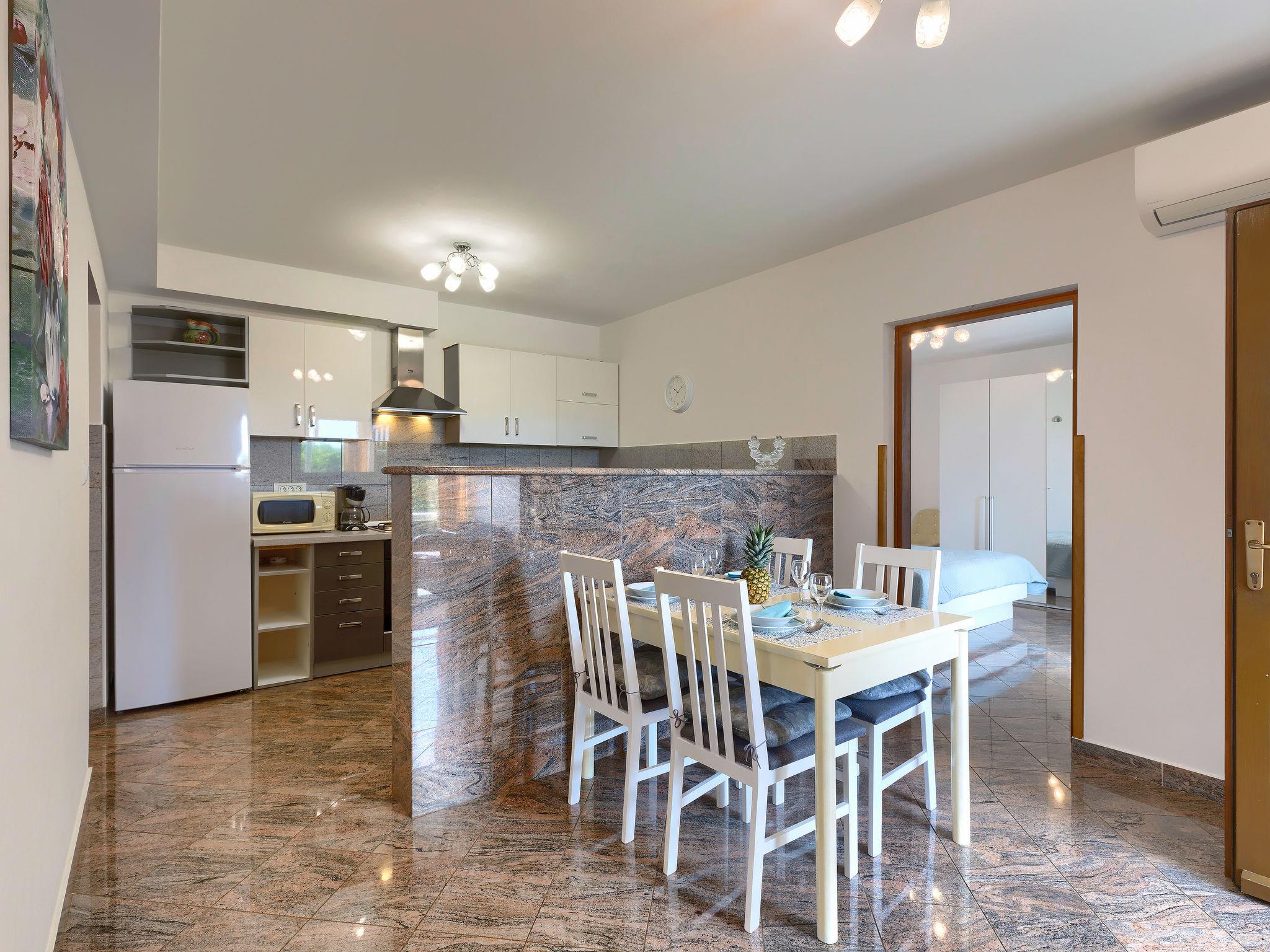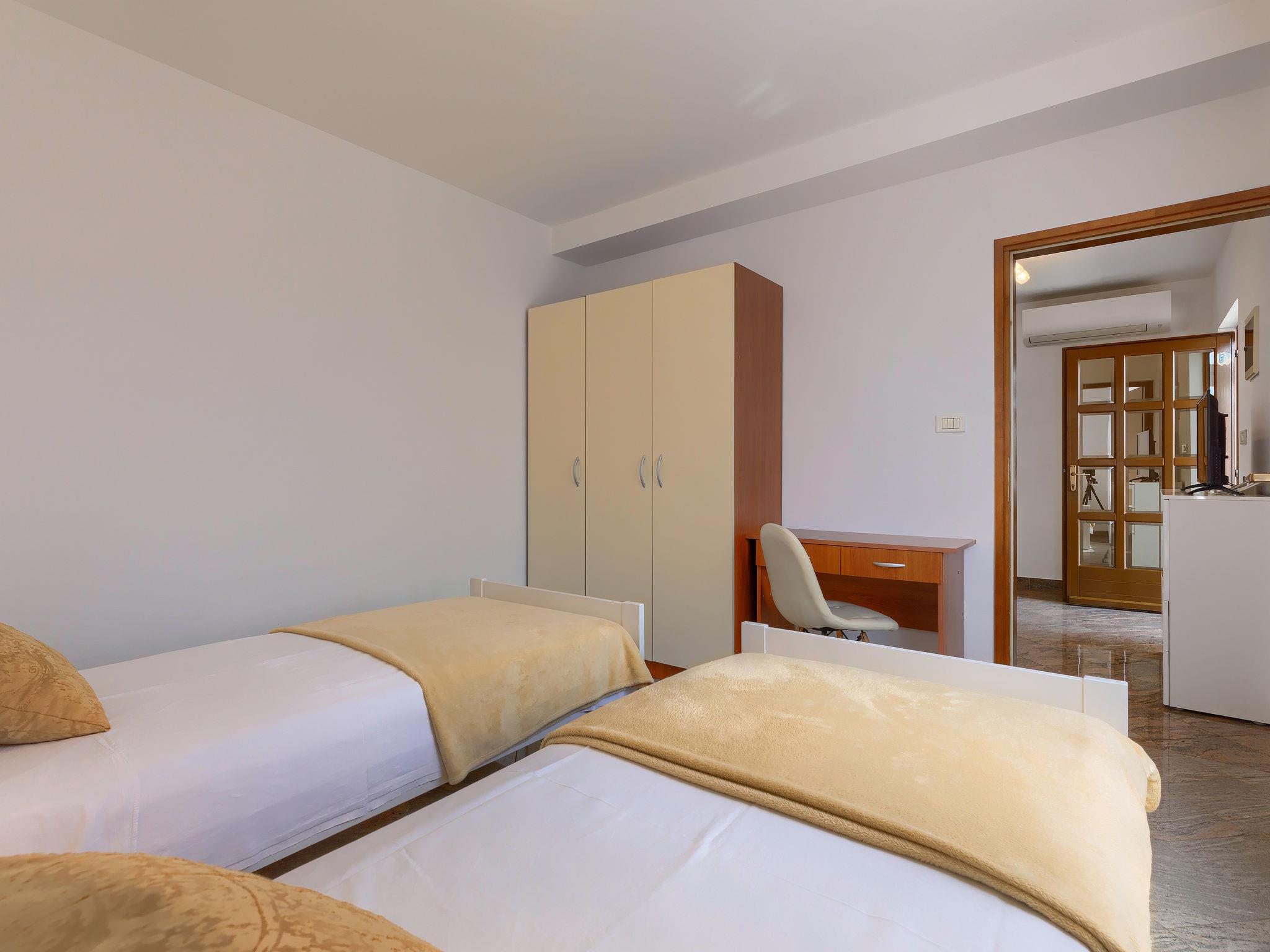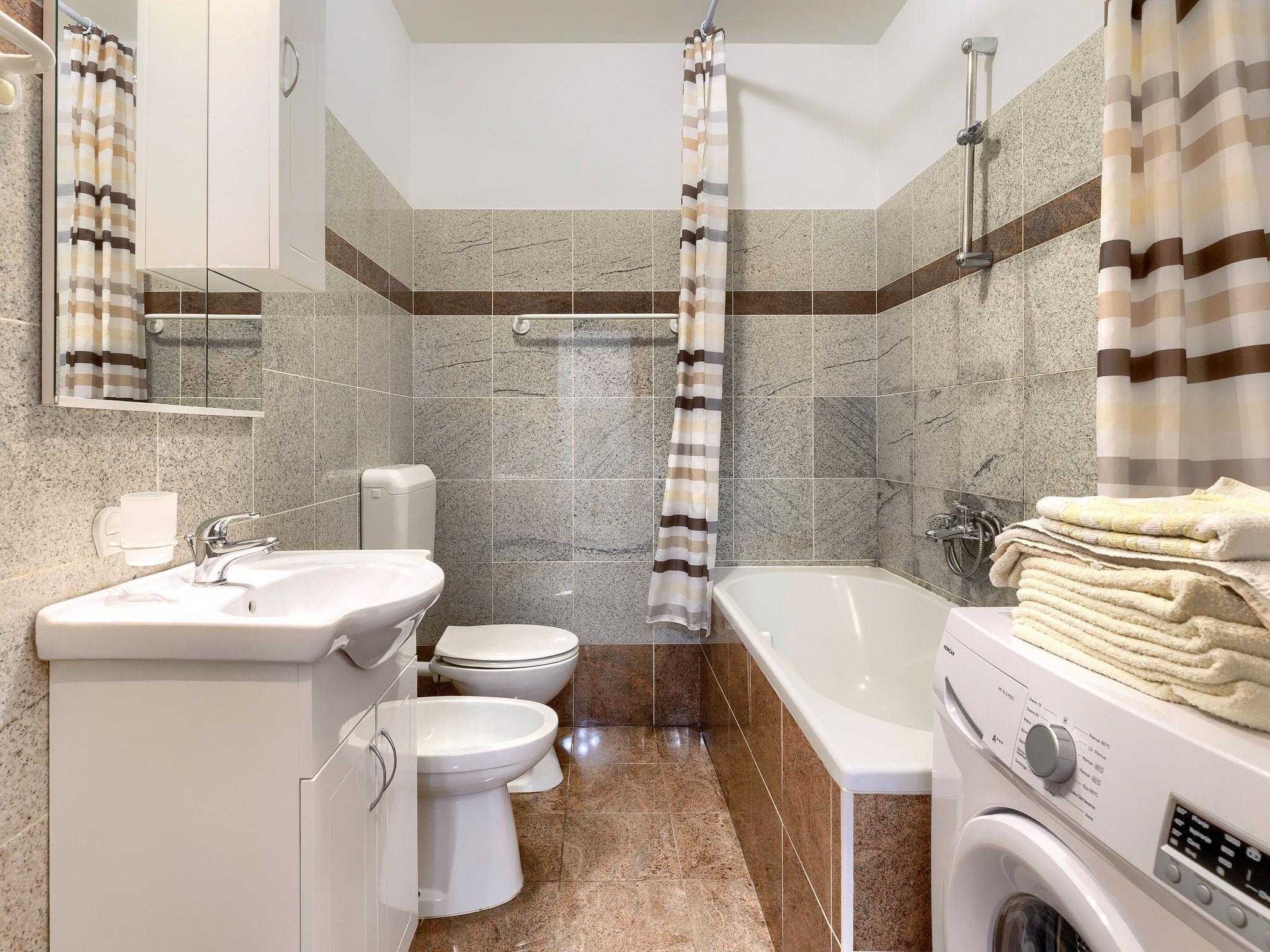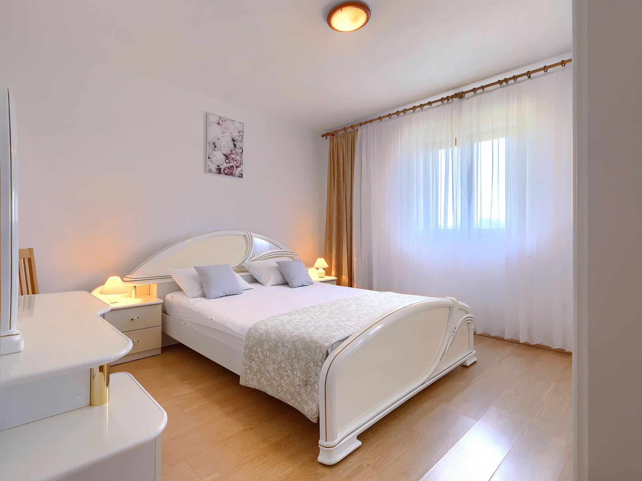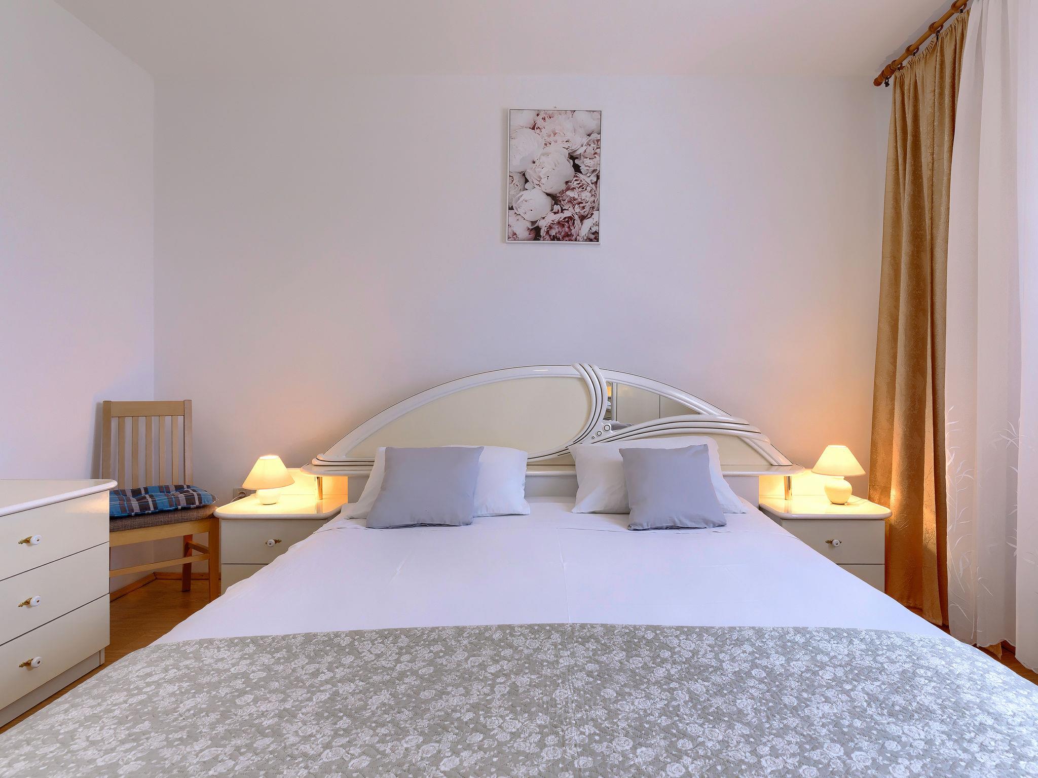 Semi-detached house "Goga", 2 storeys. In the hamlet Sv. Martin 9 km from the centre of Labin, 14 km from the sea, in the countryside. Private: property 700 m2 with wildlife garden, swimming pool angular (7 x 4 m, depth 150 cm, seasonal availability: 04.May. - 05.Oct.) with internal staircase. Outdoor shower, terrace (50 m2), garden furniture, barbecue, pool maintenance by the owner/gardener. In the house: internet access, trampoline, washing machine. Parking (for 4 cars) at the house on the premises. Shop 200 m, supermarket 9 km, restaurant 200 m, bus stop 8.6 km, pebble beach 14 km. The owner does not accept any youth groups. Please note: airfield 50 km from the property. Semi-detached house consists of 2 apartments rented as one unit.