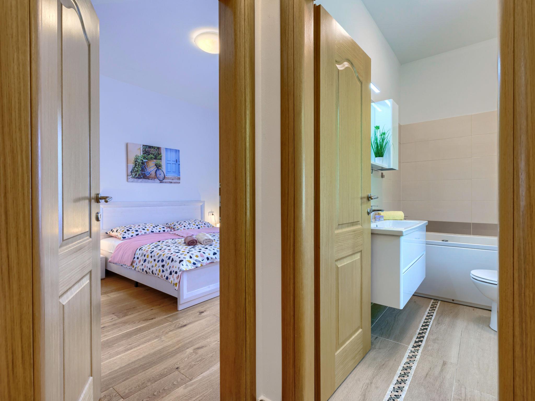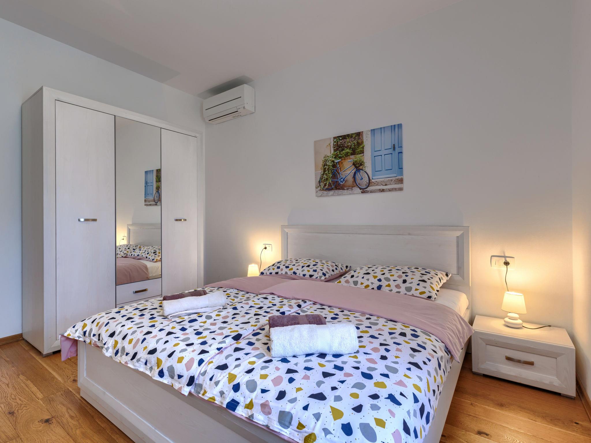 Beautiful single-family house "Old stone villa", 2 storeys. In the hamlet Vrecari 4 km from the centre of Labin, in a sunny position, 10 km from the sea, in the countryside. Private: property 1'400 m2 (fenced) with lawn and wildlife garden, swimming pool angular (8 x 4 m, depth 140 cm, seasonal availability: 01.May. - 15.Oct.) with internal staircase. Outdoor shower, terrace, garden furniture, barbecue, pool maintenance by the owner/gardener. In the house: internet access, washing machine, tumble dryer. Parking (for 4 cars) at the house on the premises. Shop 1.5 km, supermarket 2 km, bus stop 1.9 km, pebble beach 10 km. Please note: airfield 45 km from the property.