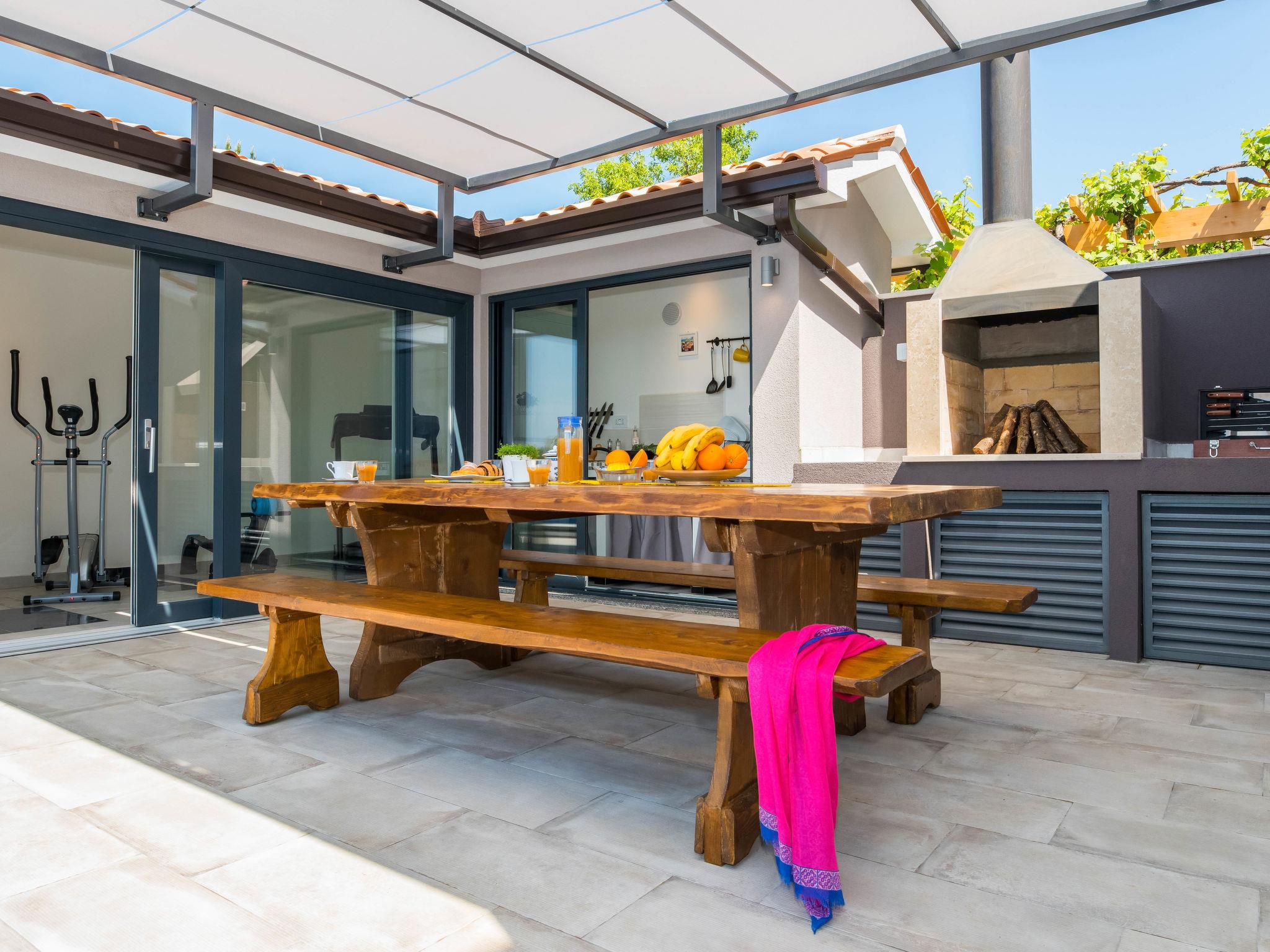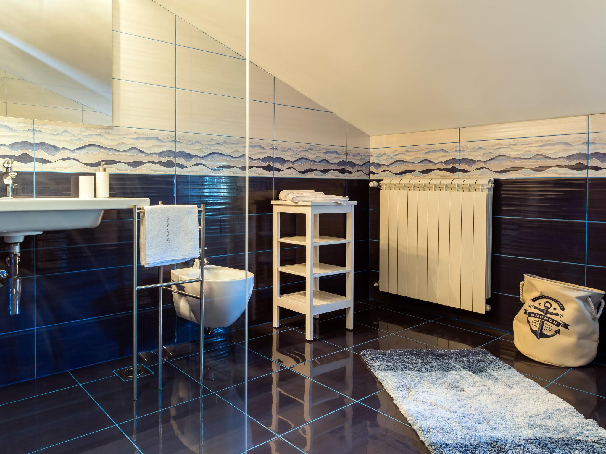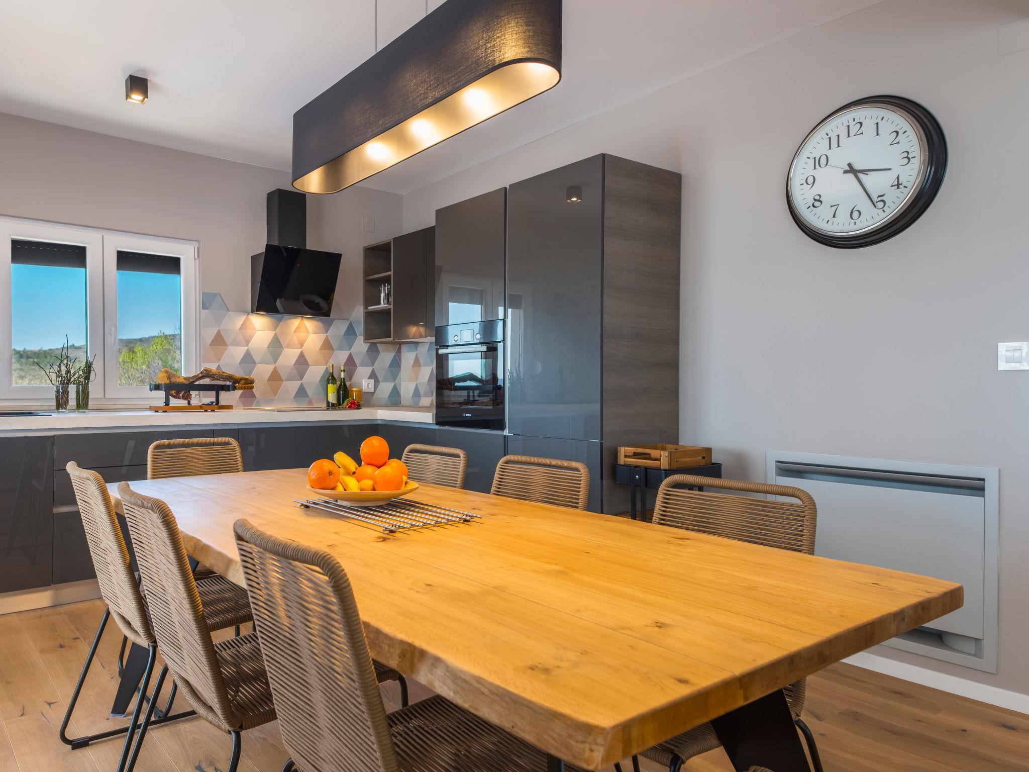 Beautiful villa "A.R.T.", 3 storeys. In the hamlet Viškovici 15 km from the centre of Labin, in a quiet, sunny position, 2 km from the sea, 2 km from the beach. Private: property 2'000 m2 (fenced), garden, swimming pool angular (7 x 5 m, 37 m2, depth 140 cm, seasonal availability: 01.Jul. - 02.Nov.) with internal staircase. Outdoor shower, pool house, basketball, volleyball, garden furniture, barbecue, children's playground (slide, swing). In the house: internet access, sauna, hot tub, relaxation room, spa area, billiard table, trampoline, washing machine. Parking (for 3 cars) at the house on the premises. Shop 3 km, restaurant 3 km, bus stop 16.6 km, sandy beach 2 km pebble beach 2 km. Marina 2 km, walking paths from the house 200 m, cycle lane 250 m. Groups of teenagers on request only. Neighbourhood highly sensitive to noise. Quietness and good behaviour expected. Swimming pool with hydromassage. Private: outdoor kitchen (3 hot plates).