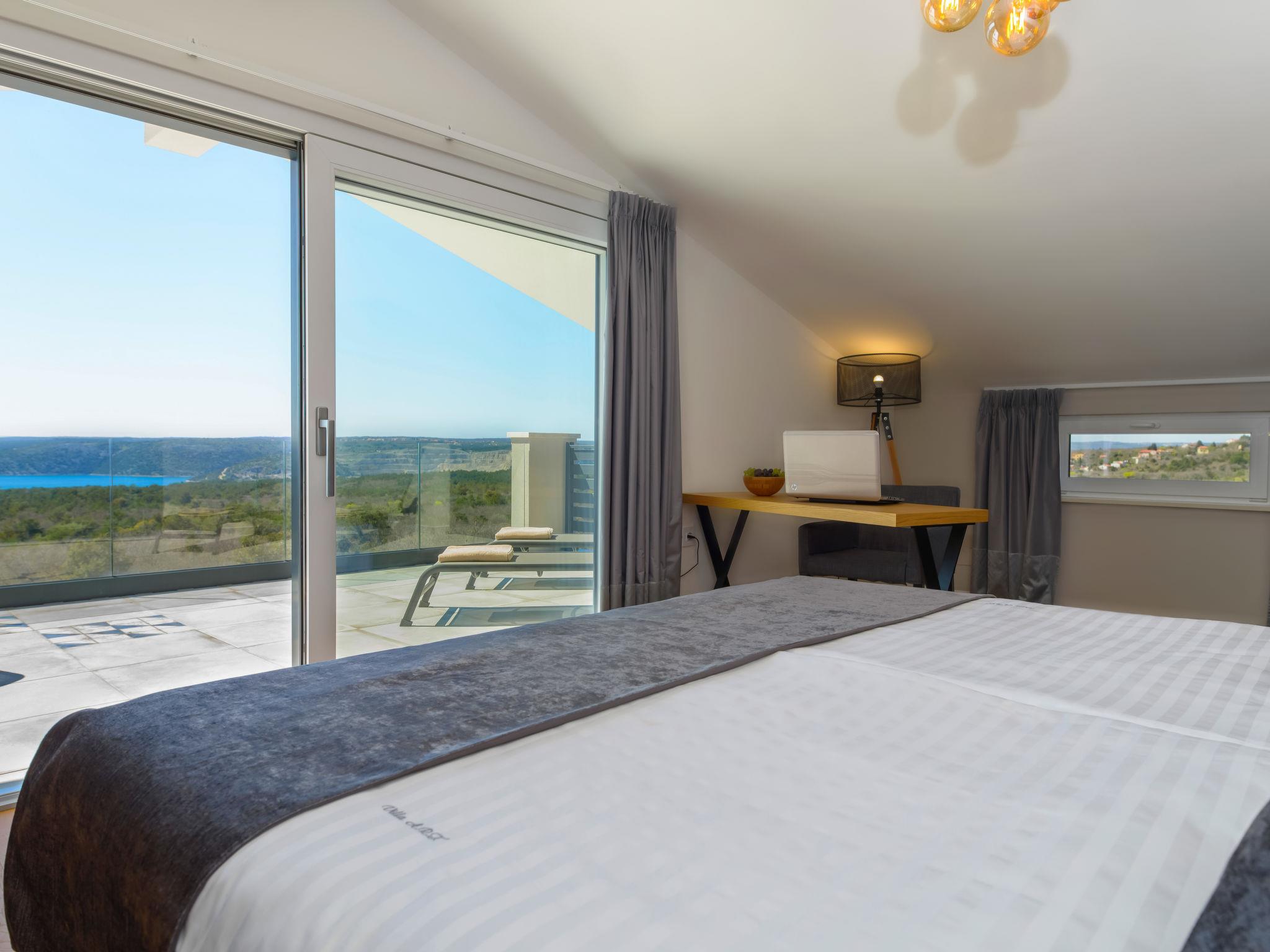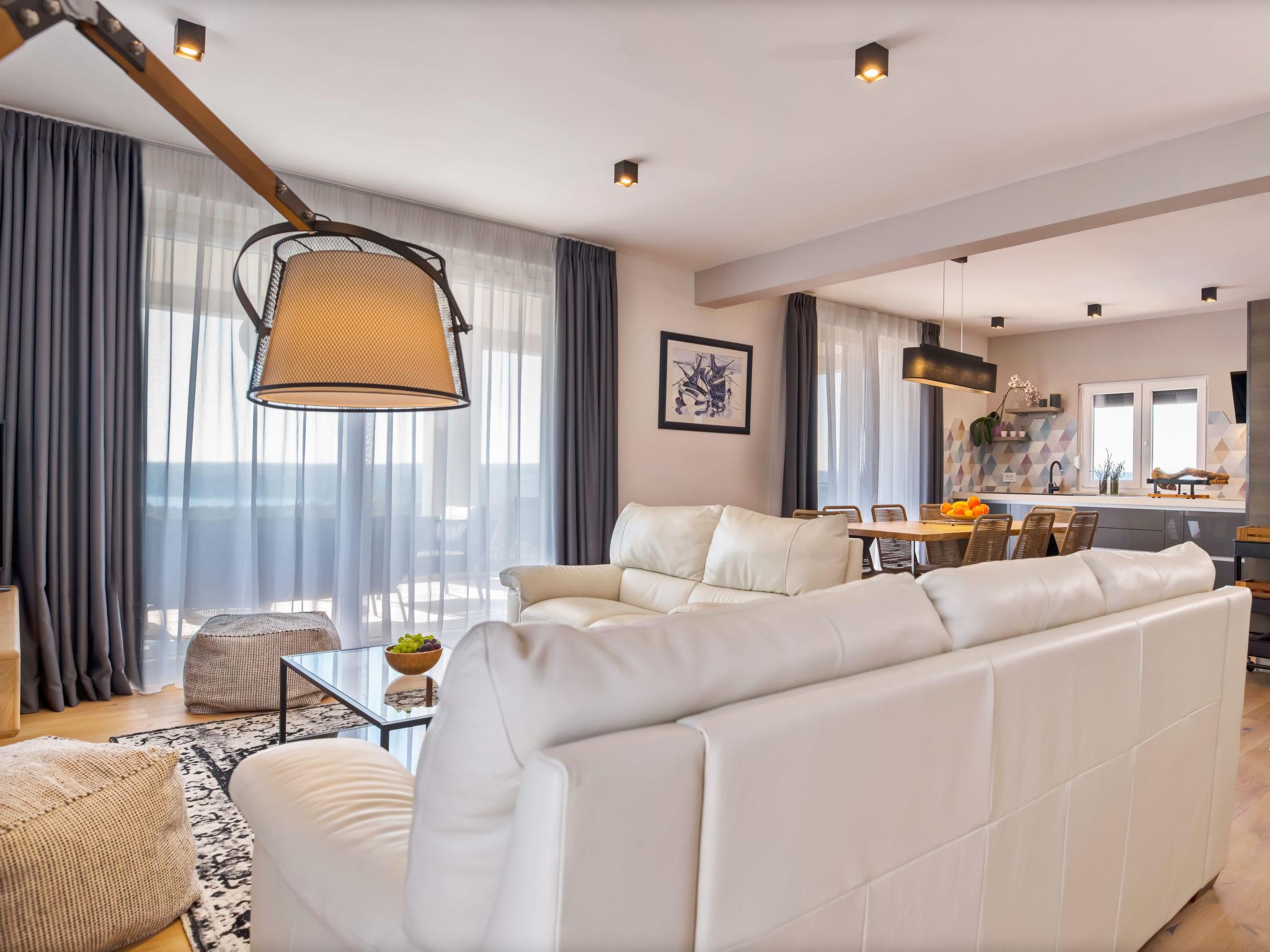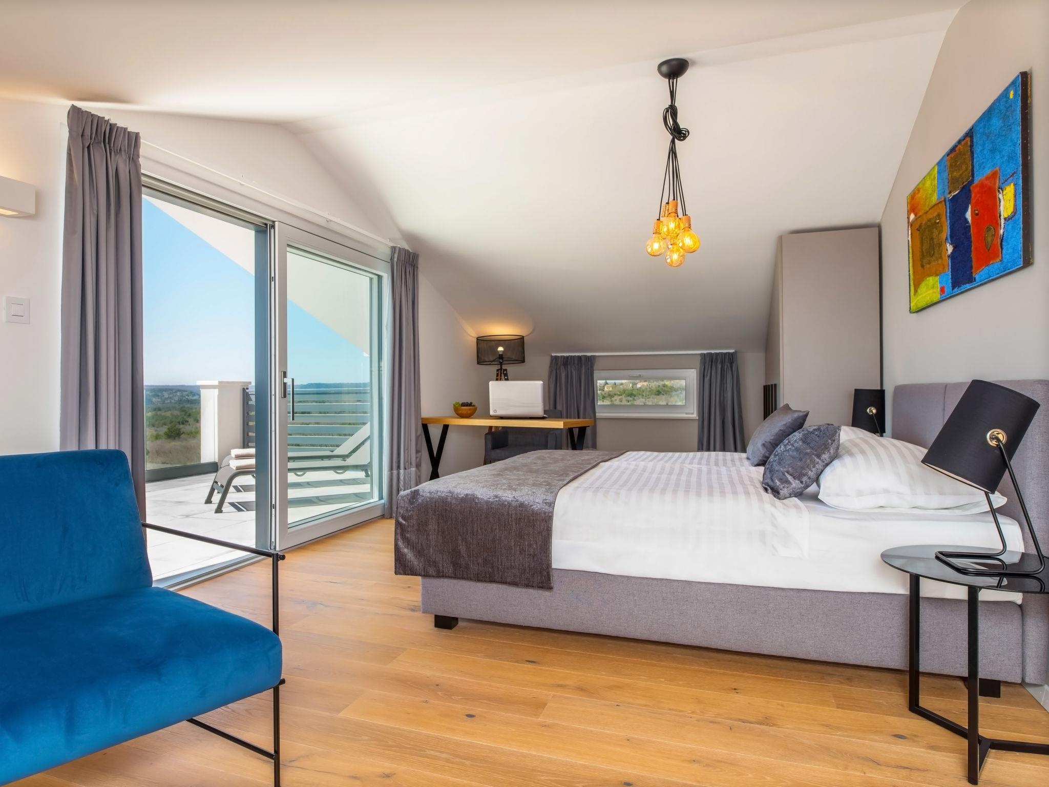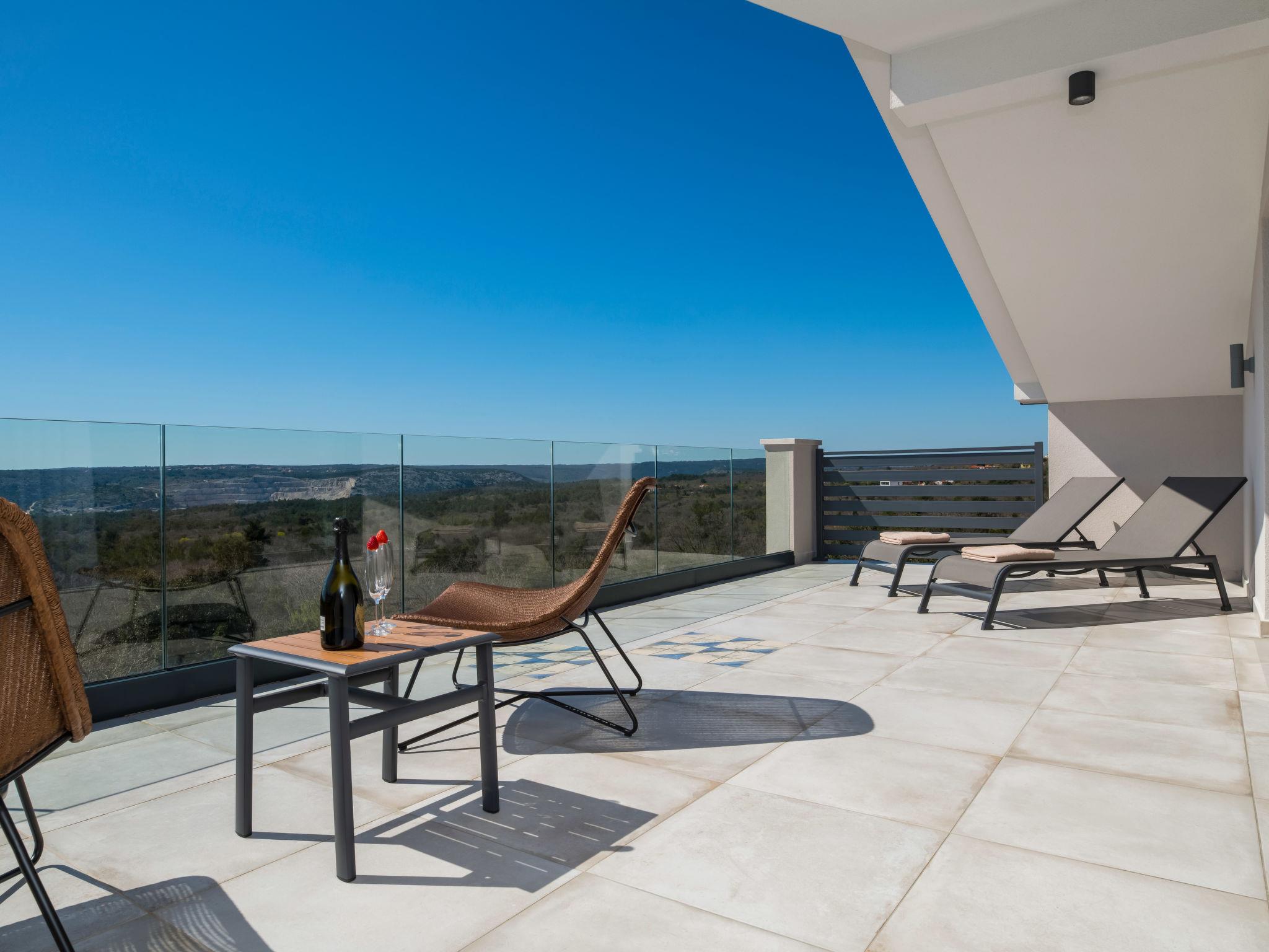 Beautiful villa "A.R.T.", 3 storeys. In the hamlet Viškovici 15 km from the centre of Labin, in a quiet, sunny position, 2 km from the sea, 2 km from the beach. Private: property 2'000 m2 (fenced), garden, swimming pool angular (7 x 5 m, 37 m2, depth 140 cm, seasonal availability: 01.Jul. - 02.Nov.) with internal staircase. Outdoor shower, pool house, basketball, volleyball, garden furniture, barbecue, children's playground (slide, swing). In the house: internet access, sauna, hot tub, relaxation room, spa area, billiard table, trampoline, washing machine. Parking (for 3 cars) at the house on the premises. Shop 3 km, restaurant 3 km, bus stop 16.6 km, sandy beach 2 km pebble beach 2 km. Marina 2 km, walking paths from the house 200 m, cycle lane 250 m. Groups of teenagers on request only. Neighbourhood highly sensitive to noise. Quietness and good behaviour expected. Swimming pool with hydromassage. Private: outdoor kitchen (3 hot plates).