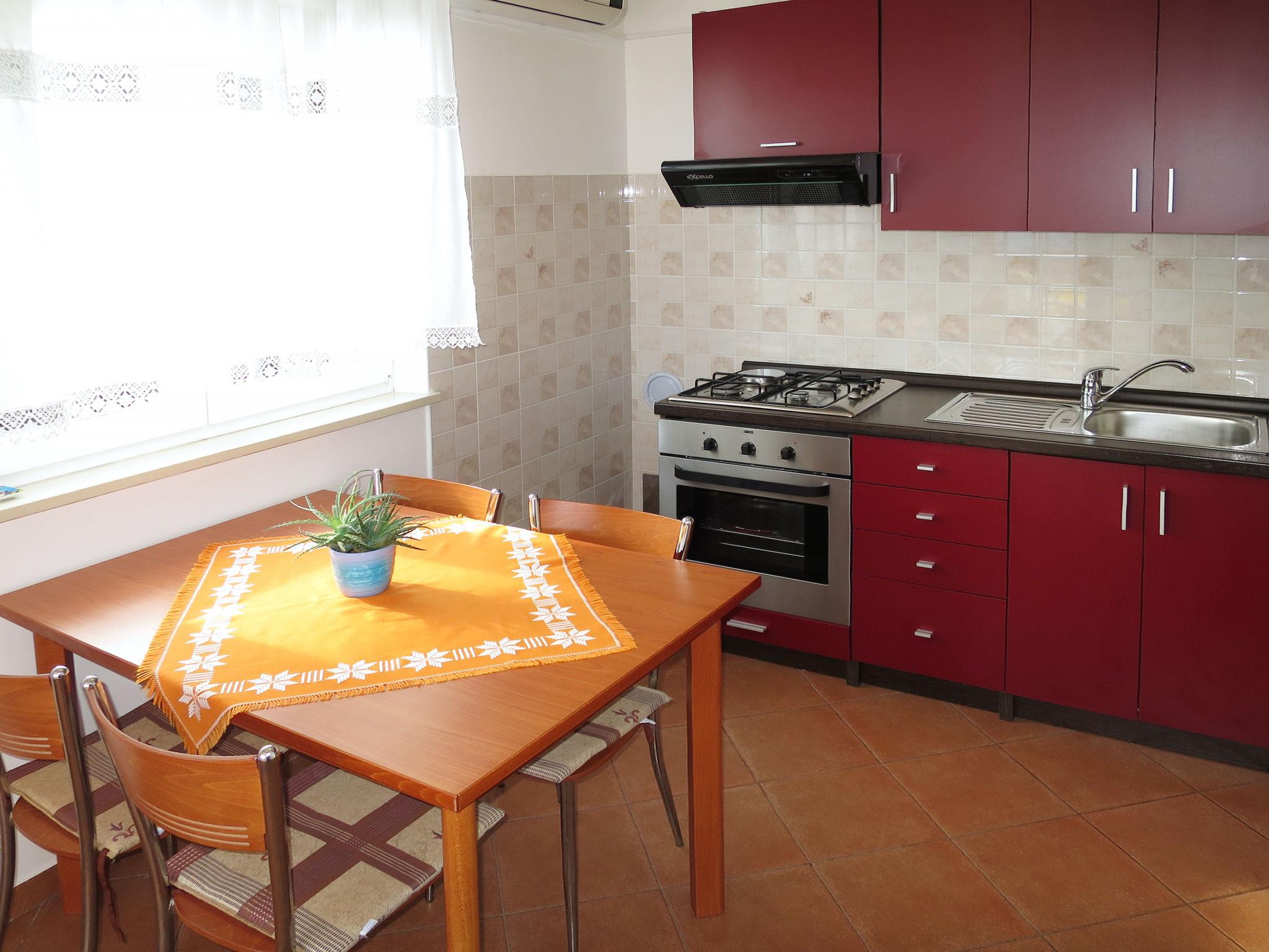 "Elsa", 2-room apartment 40 m2 on 1st floor. Living room with 1 double sofabed (160 cm), satellite TV (flat screen). Exit to the balcony. 1 room with 1 french bed (160 cm). Kitchen (1 hot plate, oven, 3 gas rings, toaster, kettle, microwave, freezer, electric coffee machine) with dining table, air conditioning. Exit to the balcony. Shower/bidet/WC. No heating option. Balcony. Balcony furniture. View of the sea. Facilities: Internet (WiFi, free). Please note: non-smokers only.
