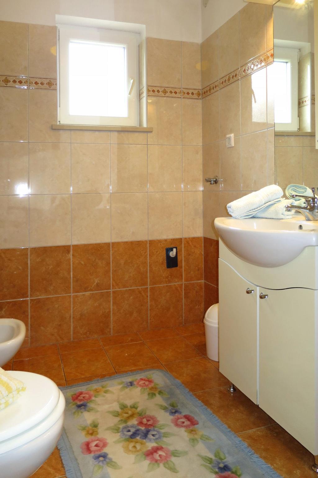 3-family house "Elsa". In the hamlet Ravni 13 km from the centre of Labin, on a slope, 800 m from the sea, 800 m from the beach. For shared use: natural state property 2'000 m2 with trees. Barbecue. In the house: internet access. Parking on the premises. Shop 150 m, supermarket 14 km, bus stop 12.1 km, pebble beach, rocky beach 800 m. Object suitable for 2 adults + 2 children.