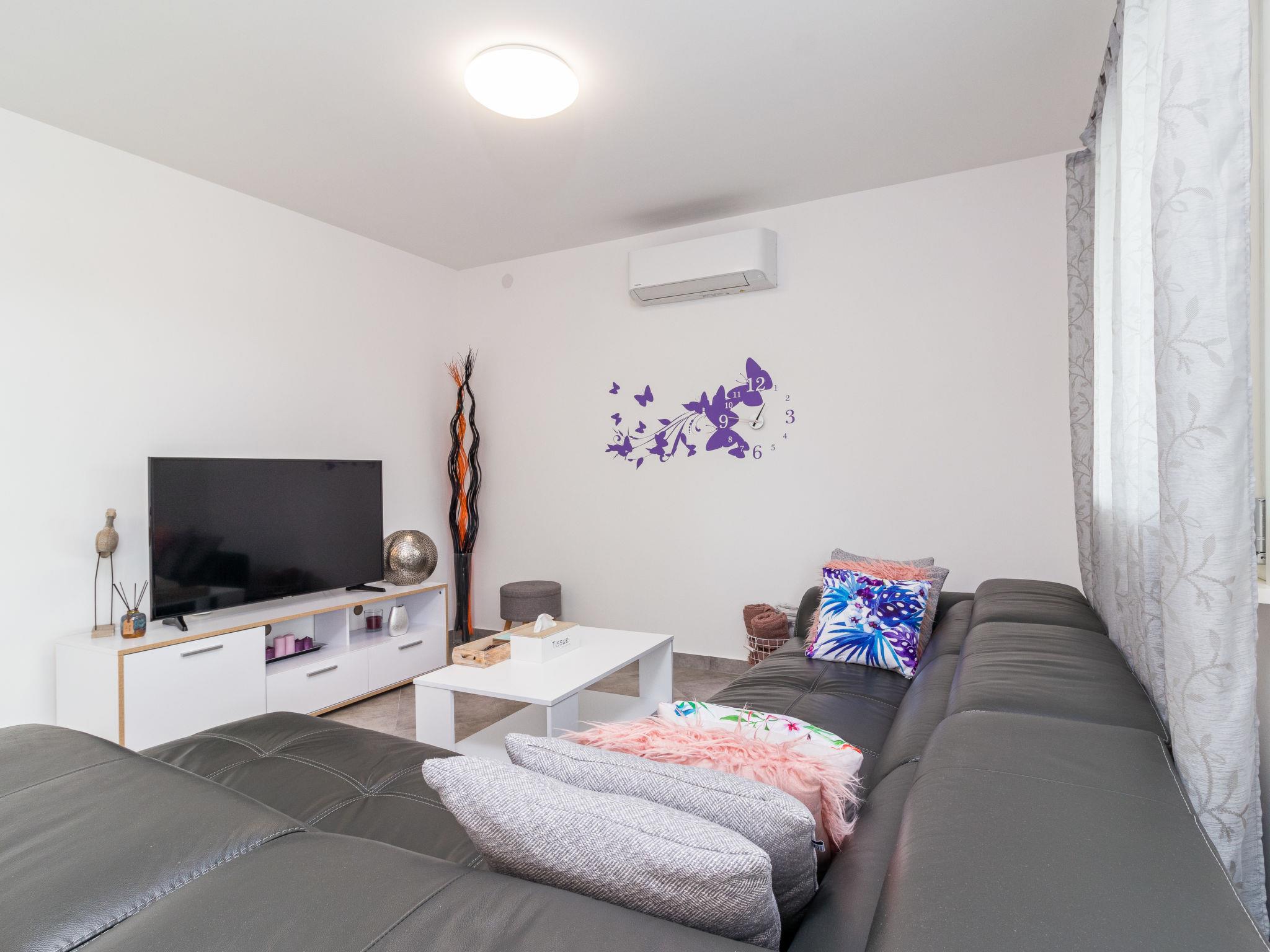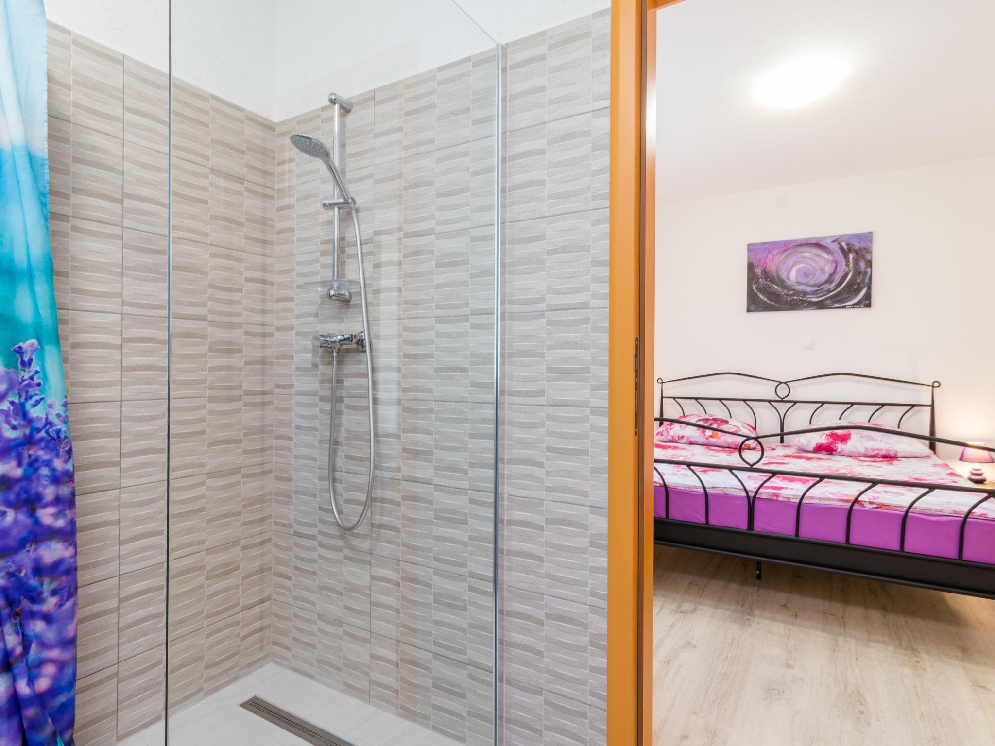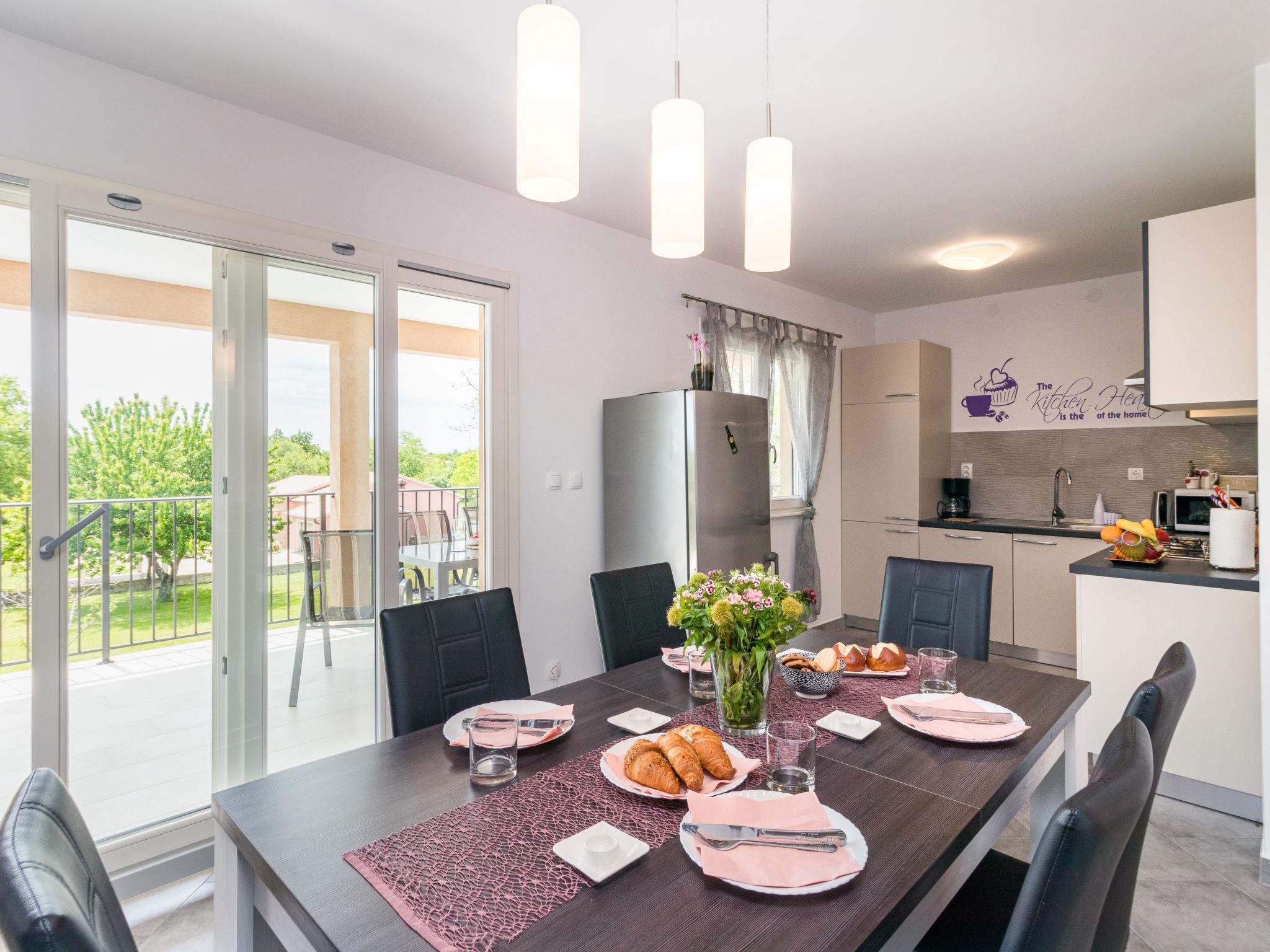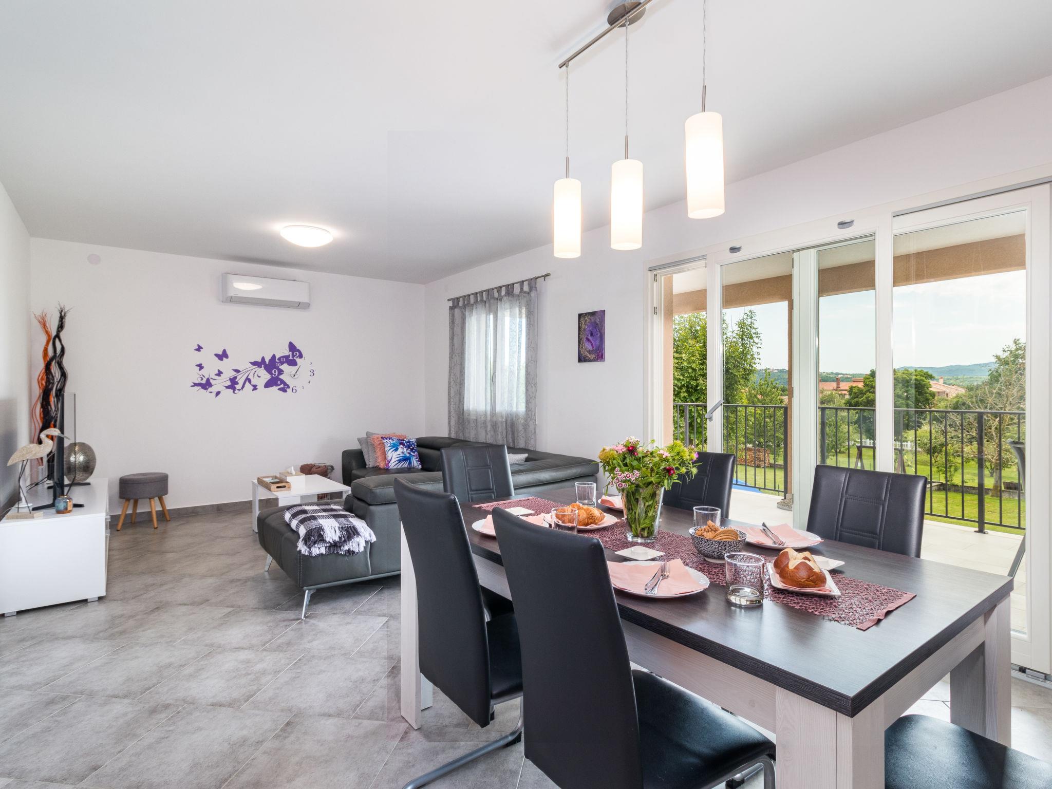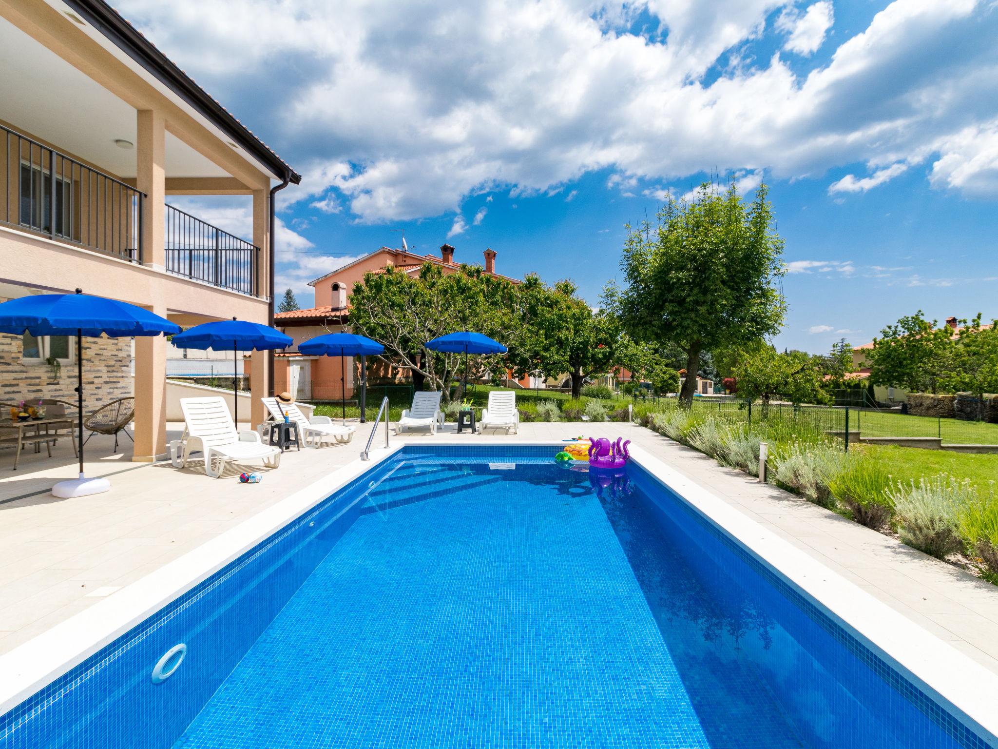 Single-family house "Marina", 2 storeys, built in 2018. In the district of Vinež 1 km from the centre of Labin, 6 km from the centre of Rabac, in the residential district, 6 km from the sea. Private: property 3'000 m2 with lawn and trees, swimming pool (8 x 4 m, depth 135 cm, seasonal availability: 01.May. - 01.Oct.) with internal staircase. Outdoor shower, terrace, garden furniture, barbecue, pool maintenance by the owner/gardener. In the house: internet access, trampoline, washing machine. Motor access to the house (30 m via unmade road). Parking (for 3 cars) on the premises. Shop 200 m, supermarket 1 km, bus stop 2.4 km, pebble beach 6 km. Groups of teenagers on request only.