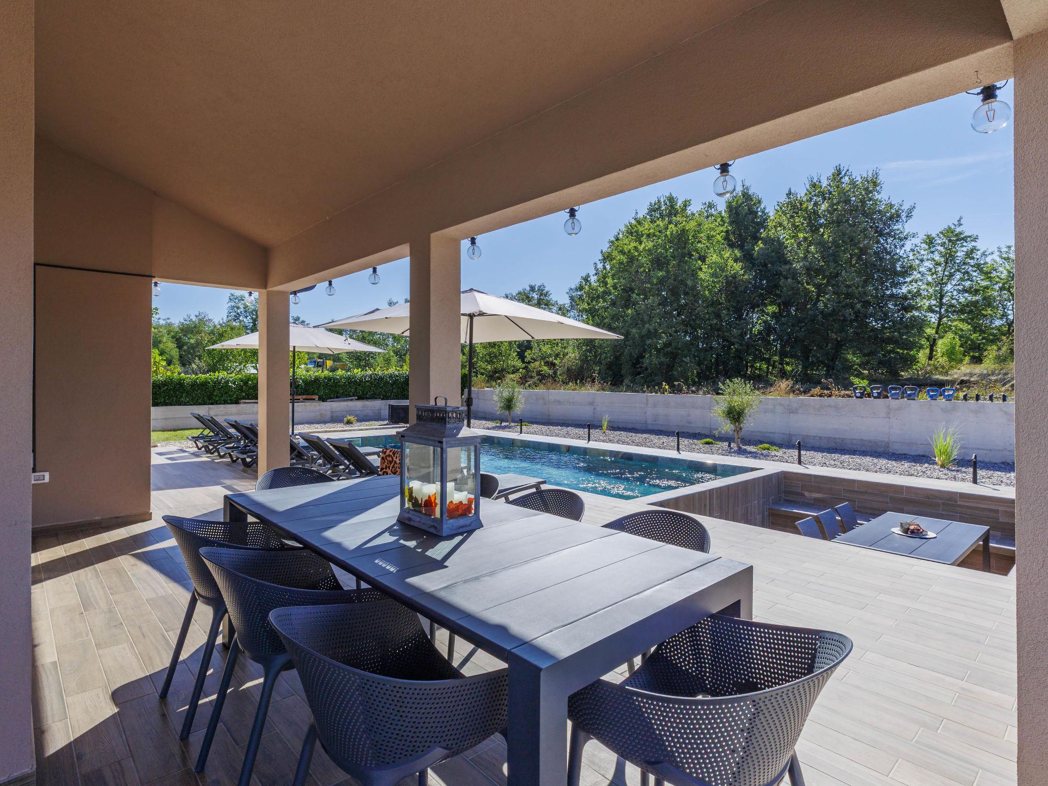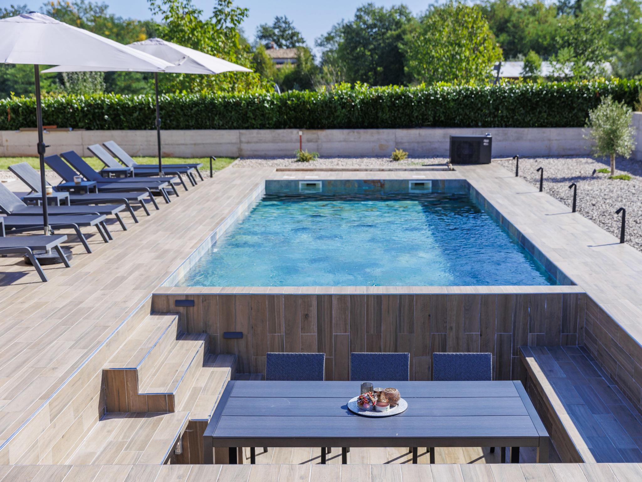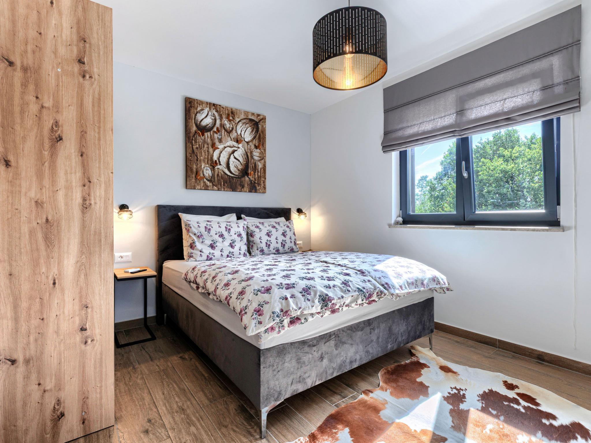 Beautiful single-family house "Villa Shea", 2 storeys. In the hamlet Sv. Bartul 3 km from the centre of Labin, in a quiet, sunny position, 9 km from the sea. Private: property 1'200 m2 with wildlife garden, swimming pool angular, heated (9 x 4 m, depth 150 cm, seasonal availability: 23.Mar. - 30.Nov.) with internal staircase. Outdoor shower, terrace, garden furniture, barbecue, pool maintenance by the owner/gardener. In the house: internet access, washing machine. 200 m long motor access to the house (via unmade road). Parking (for 4 cars) at the house on the premises. Shop 2 km, supermarket 3 km, restaurant 5 km, bus stop 4.6 km, pebble beach 9 km. Please note: airfield 45 km from the property. Swimming pool heated (extra). It is necessary to announce 7 days in advance if the pool heating is required. By groups of young people double deposit is requested on arrival.