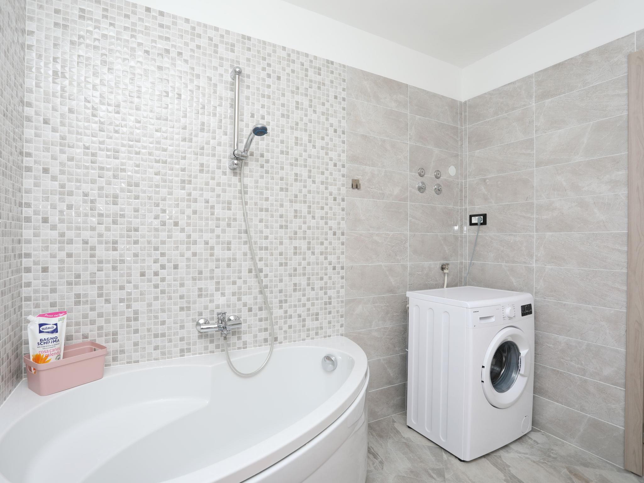 4-room apartment 120 m2 on 1st floor. Comfortable and beautiful furnishings: living/dining room with satellite TV and air conditioning. Exit to the balcony. 1 room with 2 beds (90 cm, length 200 cm). 1 room with 1 french bed (160 cm, length 200 cm). 1 room with 1 french bed (160 cm, length 200 cm). Exit to the balcony. Open kitchen (2 hot plates, oven, dishwasher, 2 gas rings, toaster, kettle, freezer, electric coffee machine). Shower/WC, bath/shower/WC. Electric heating. No heating option. Large balcony 36 m2, balcony 8 m2. Balcony furniture. Very beautiful view of the sea. Facilities: washing machine, iron, mosquito net, hair dryer. Internet (WiFi, free). Please note: non-smoking house.