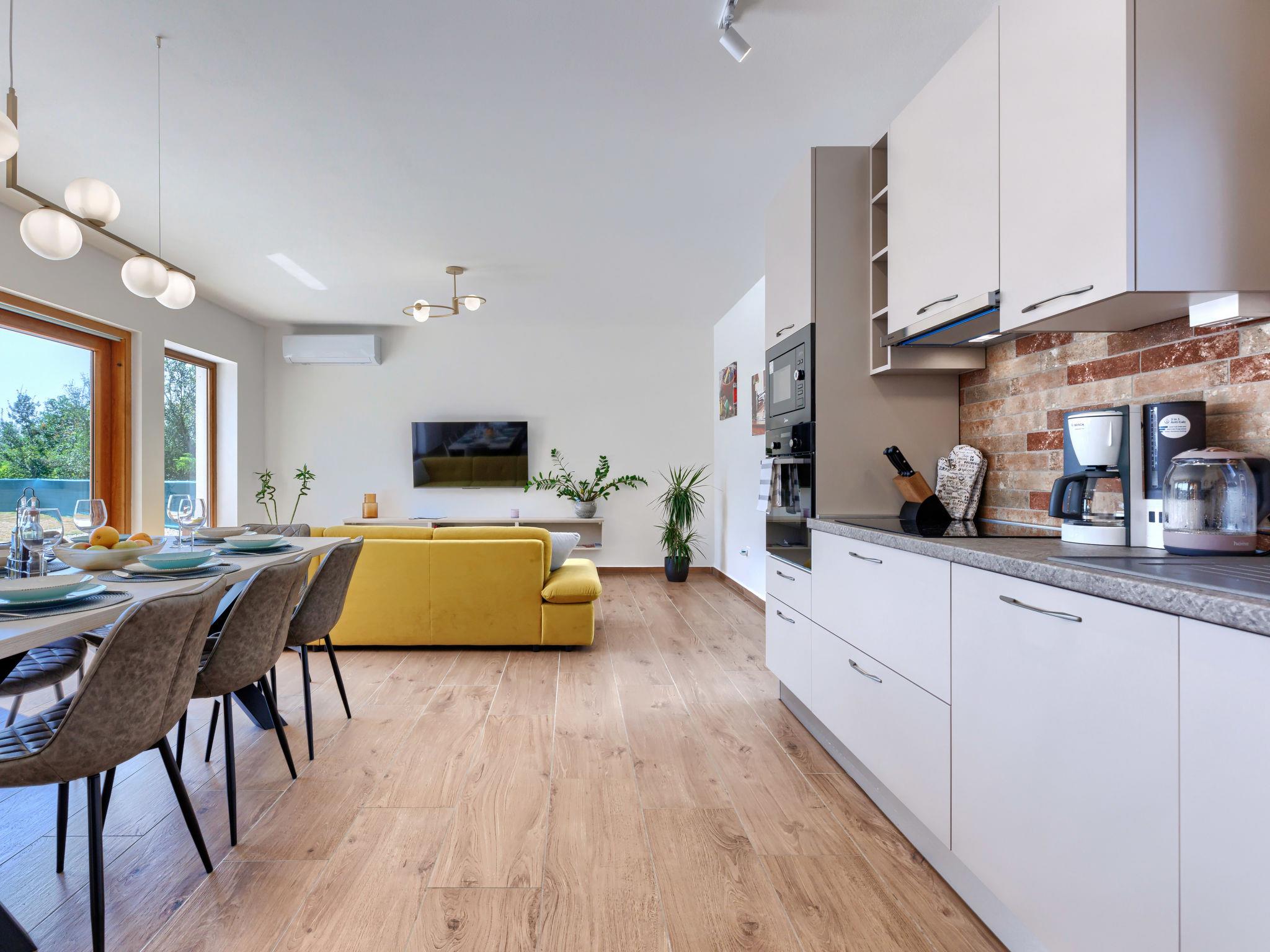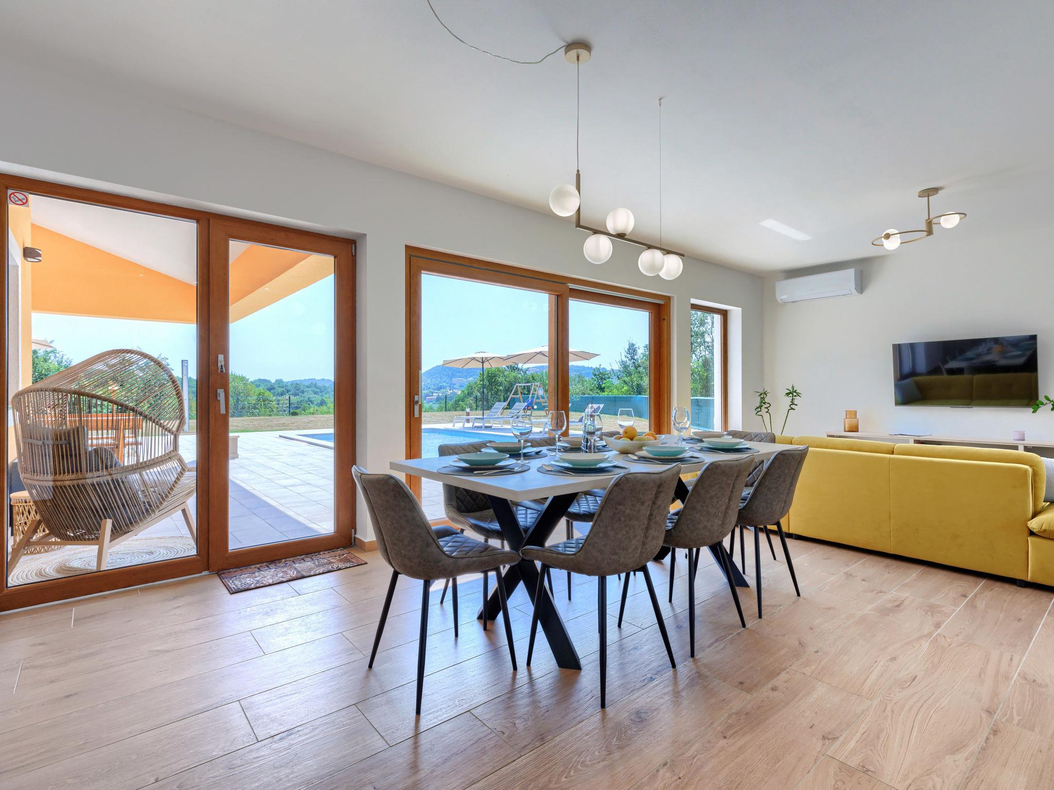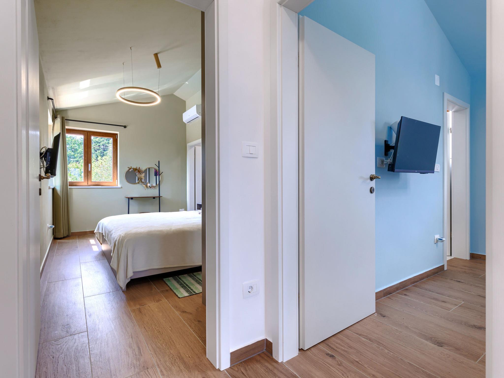 Beautiful single-family house "Villa Ana Lucija", 2 storeys. 1 km from the centre of Labin, 5 km from the centre of Rabac, in a quiet, sunny position, 5 km from the sea. Private: property 1'000 m2 (fenced) with lawn and wildlife garden, swimming pool angular (8 x 4 m, depth 140 cm, seasonal availability: 01.May. - 30.Oct.) with internal staircase. Outdoor shower, terrace, garden furniture, barbecue, children's playground (slide, swing), pool maintenance by the owner/gardener. In the house: internet access, washing machine. Parking (for 4 cars) at the house on the premises. Shop 1 km, supermarket 1 km, restaurant 1 km, bus stop 1.1 km, pebble beach 5 km. Please note: airfield 45 km from the property.