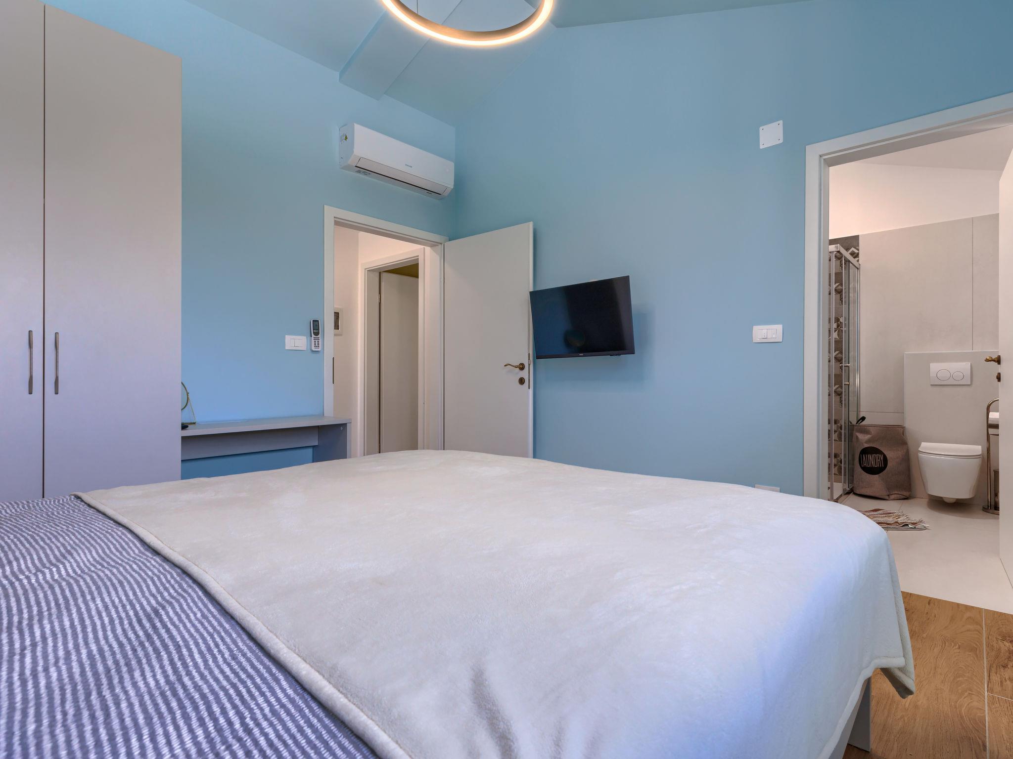4-room house 160 m2 on 2 levels. Beautiful and cosy furnishings: living/dining room with satellite TV and air conditioning. Exit to the terrace. 1 room with 1 french bed (160 cm, length 200 cm), satellite TV and air conditioning. Open kitchen (oven, dishwasher, 4 induction hot plates, toaster, kettle, freezer, electric coffee machine). Shower/WC. Upper floor: 1 room with 1 french bed (180 cm, length 200 cm), shower/WC, satellite TV and air conditioning. 1 room with 2 beds (90 cm, length 200 cm), shower/WC, satellite TV and air conditioning. Terrace 30 m2, roofed. Terrace furniture, deck chairs. Facilities: washing machine, dryer, safe, iron, hair dryer. Internet (WiFi, free). Please note: non-smoking house. Fire extinguisher.