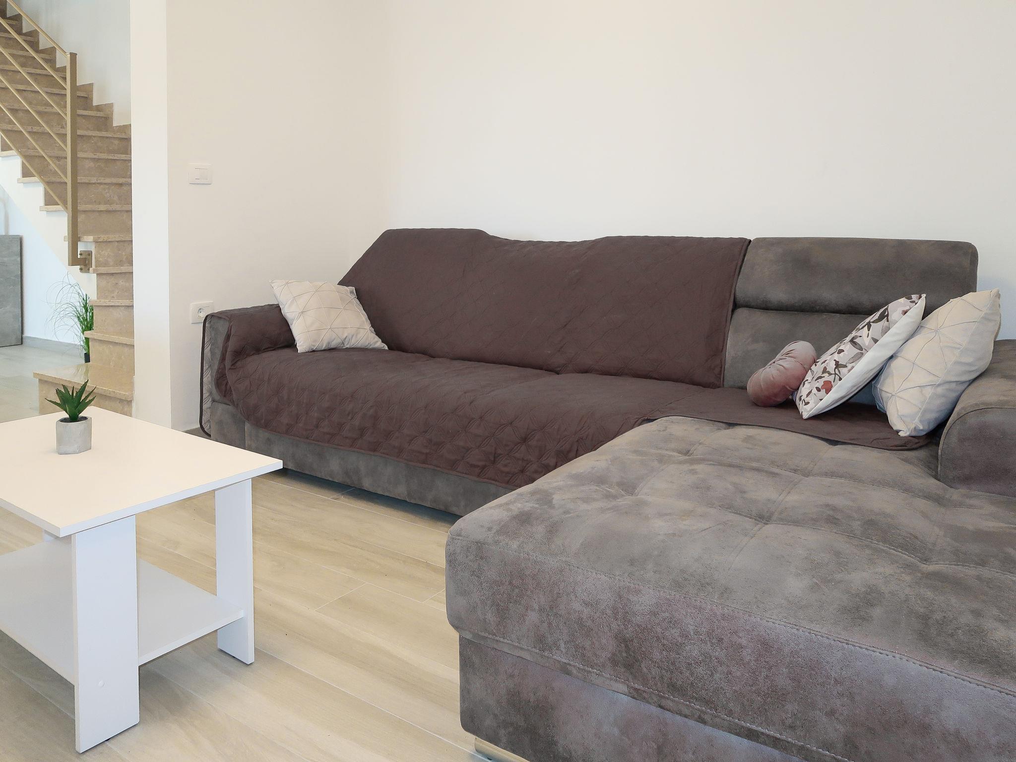 4-room house 110 m2 on 2 levels. Living/dining room with satellite TV and air conditioning. Exit to the terrace. Open kitchen (oven, dishwasher, 4 ceramic glass hob hotplates, toaster, kettle, microwave, freezer, electric coffee machine). Shower/WC. Upper floor: 1 room with 1 french bed (160 cm, length 200 cm), satellite TV and air conditioning. 1 room with 2 beds (90 cm, length 200 cm), satellite TV and air conditioning. 1 room with 1 french bed (180 cm, length 200 cm), satellite TV and air conditioning. Shower/WC. Forced-air heating. Terrace 15 m2. Terrace furniture, deck chairs. Beautiful view of the countryside. Facilities: iron, mosquito net, hair dryer. Internet (WiFi, free). Please note: non-smoking house.