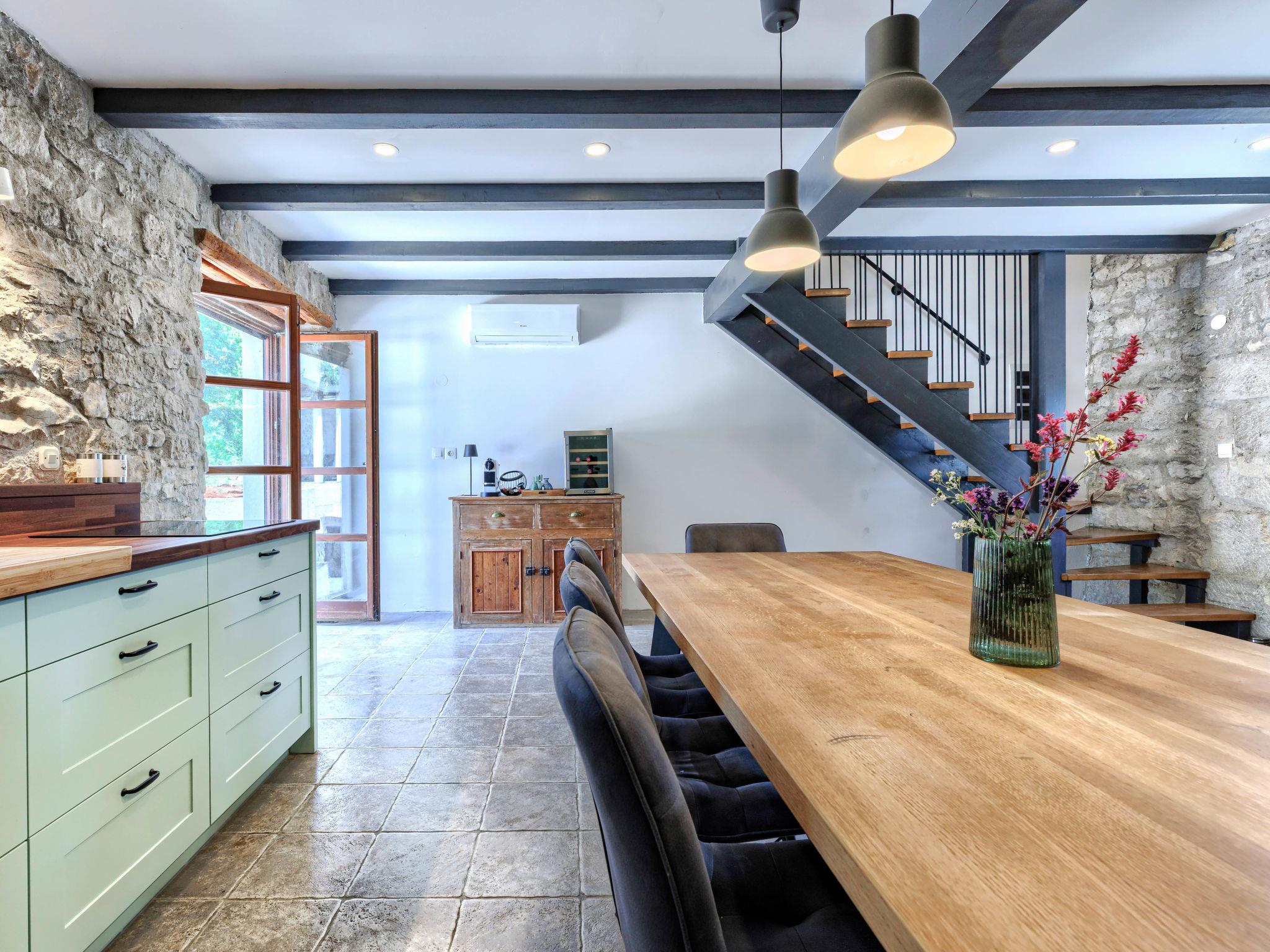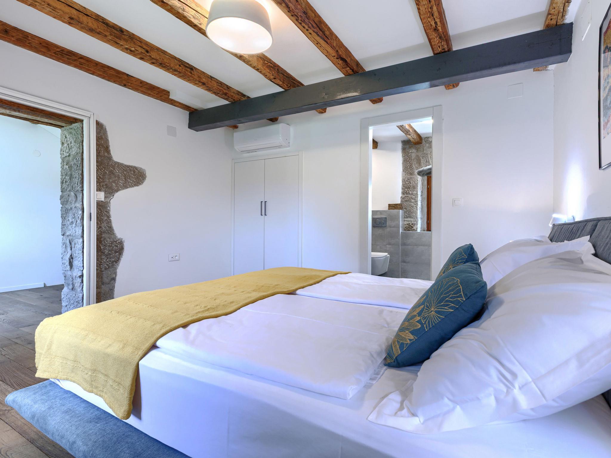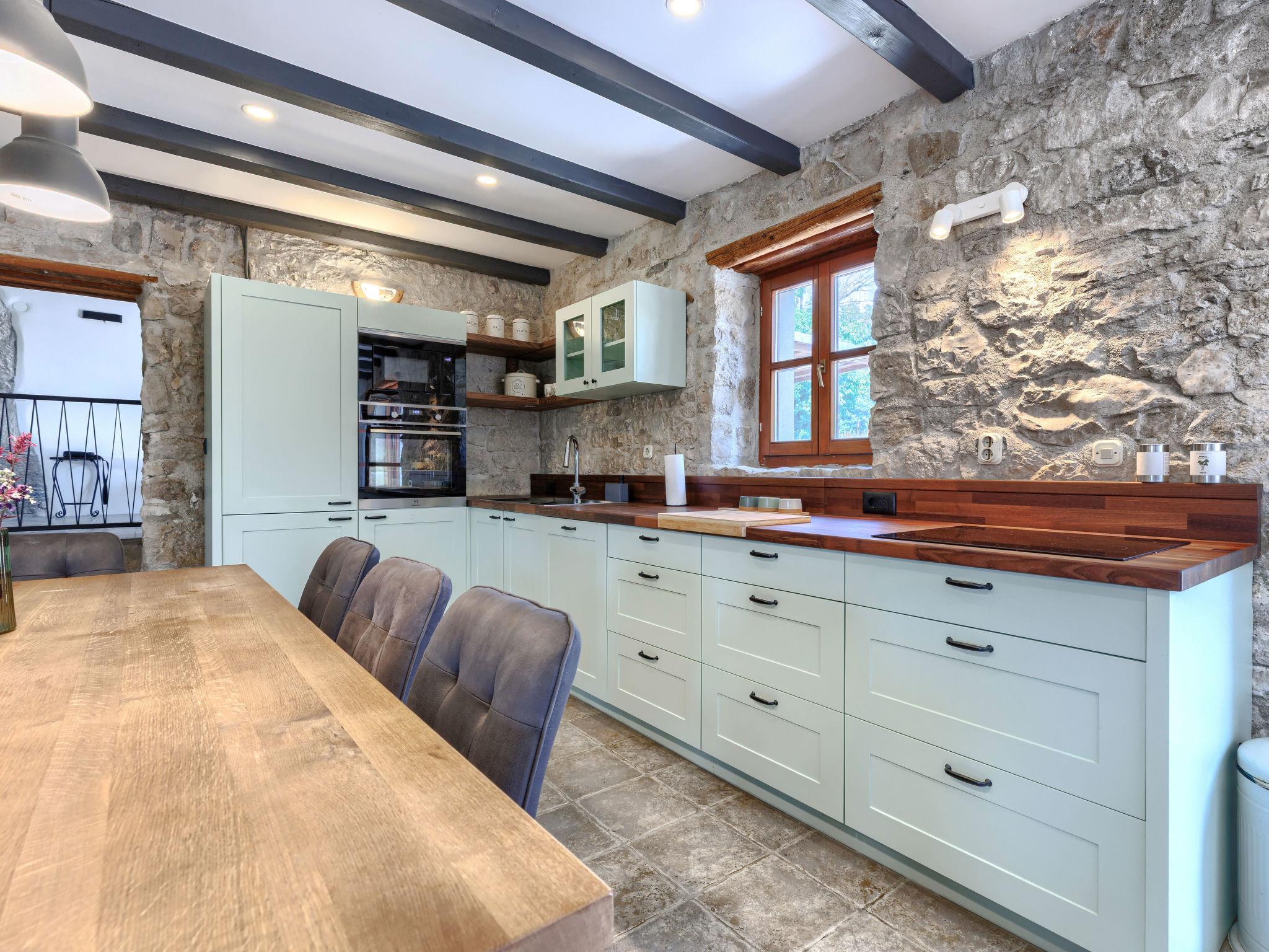 Terraced house "Perun", 3 storeys. 2 km from the centre of Labin, 7 km from the centre of Rabac, 7 km from the sea, in the countryside. Private: property 500 m2, swimming pool angular (8 x 4 m, depth 140 cm, seasonal availability: 01.May. - 30.Oct.) with internal staircase. Outdoor shower, terrace (70 m2), garden furniture, pool maintenance by the owner/gardener. In the house: internet access, washing machine. Parking (for 3 cars) at the house on the premises. Shop 2 km, supermarket 2500 km, restaurant 4 km, bus stop "Labin" 2.5 km, pebble beach 7 km. Please note: airfield 45 km from the property.