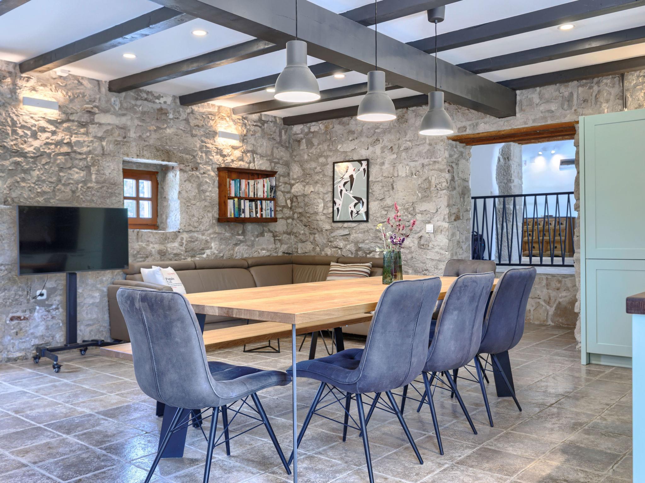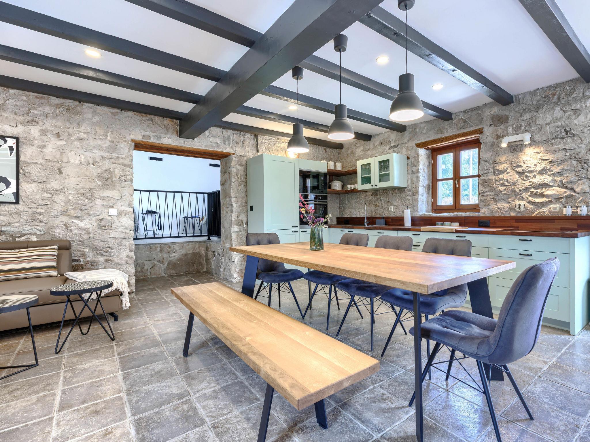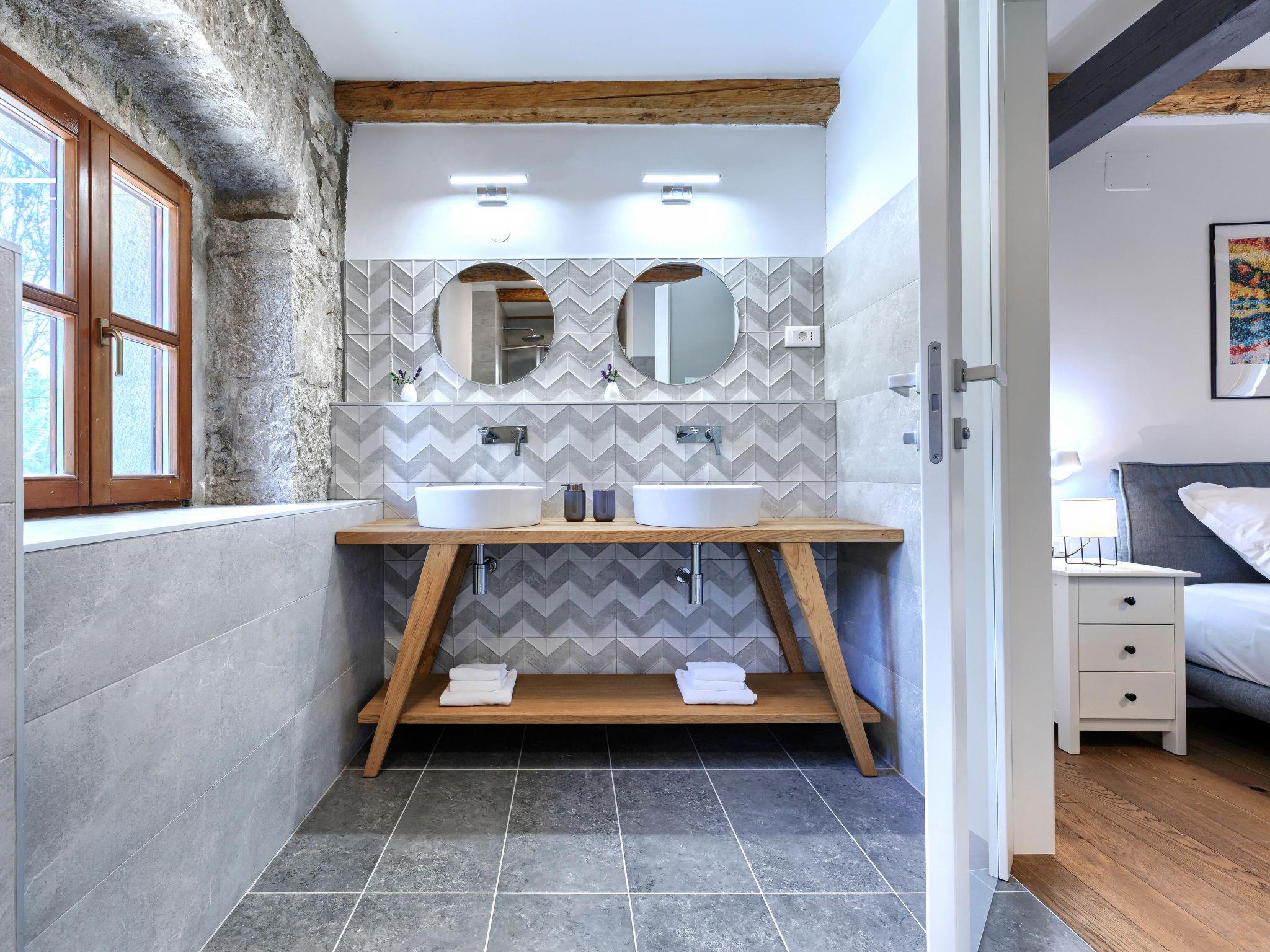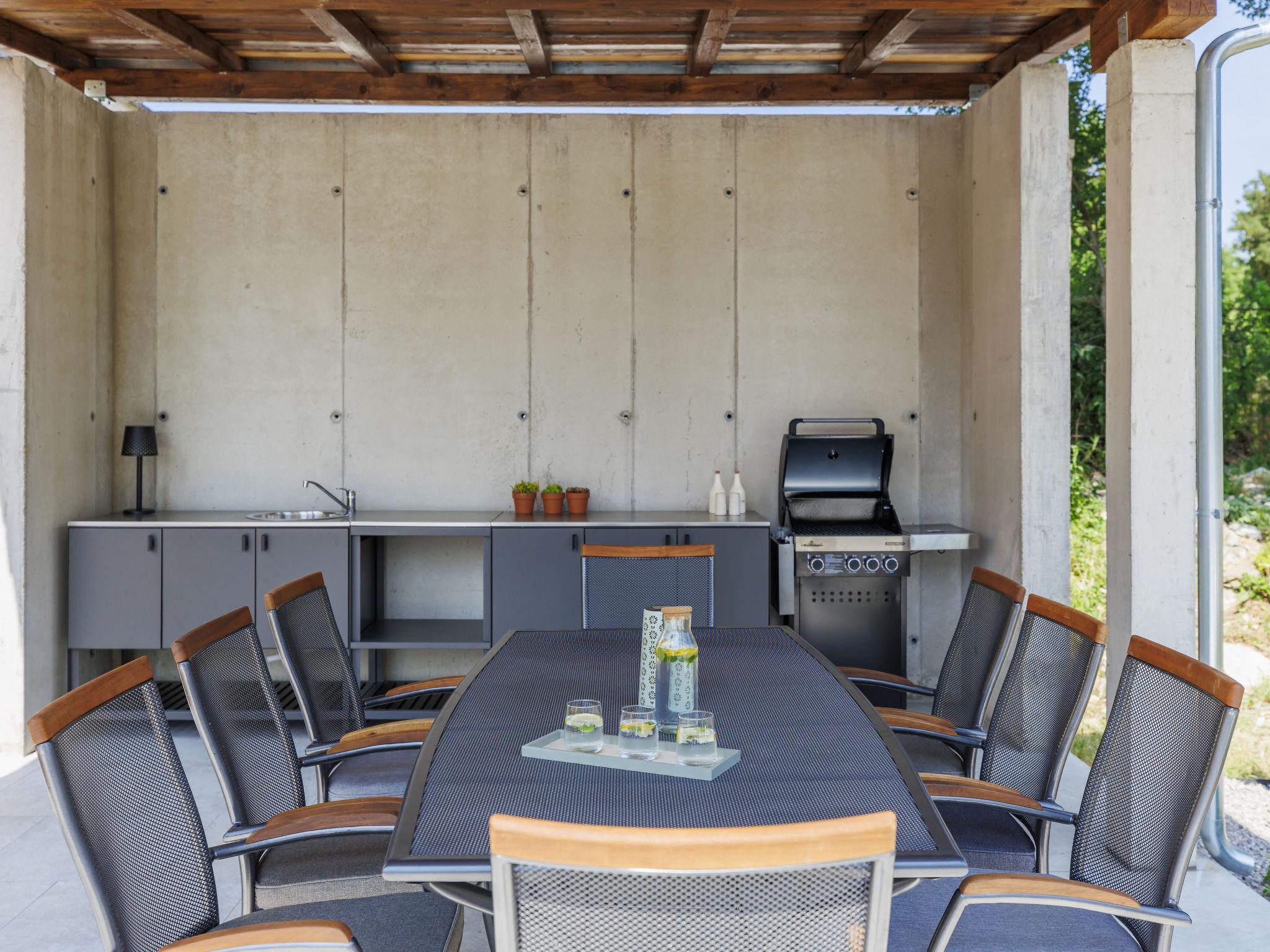 Terraced house "Perun", 3 storeys. 2 km from the centre of Labin, 7 km from the centre of Rabac, 7 km from the sea, in the countryside. Private: property 500 m2, swimming pool angular (8 x 4 m, depth 140 cm, seasonal availability: 01.May. - 30.Oct.) with internal staircase. Outdoor shower, terrace (70 m2), garden furniture, pool maintenance by the owner/gardener. In the house: internet access, washing machine. Parking (for 3 cars) at the house on the premises. Shop 2 km, supermarket 2500 km, restaurant 4 km, bus stop "Labin" 2.5 km, pebble beach 7 km. Please note: airfield 45 km from the property.