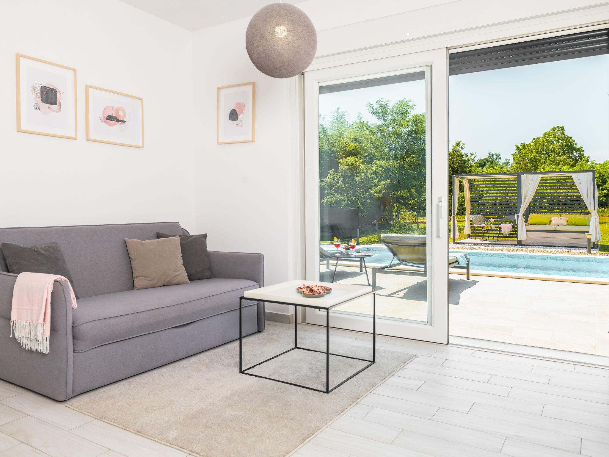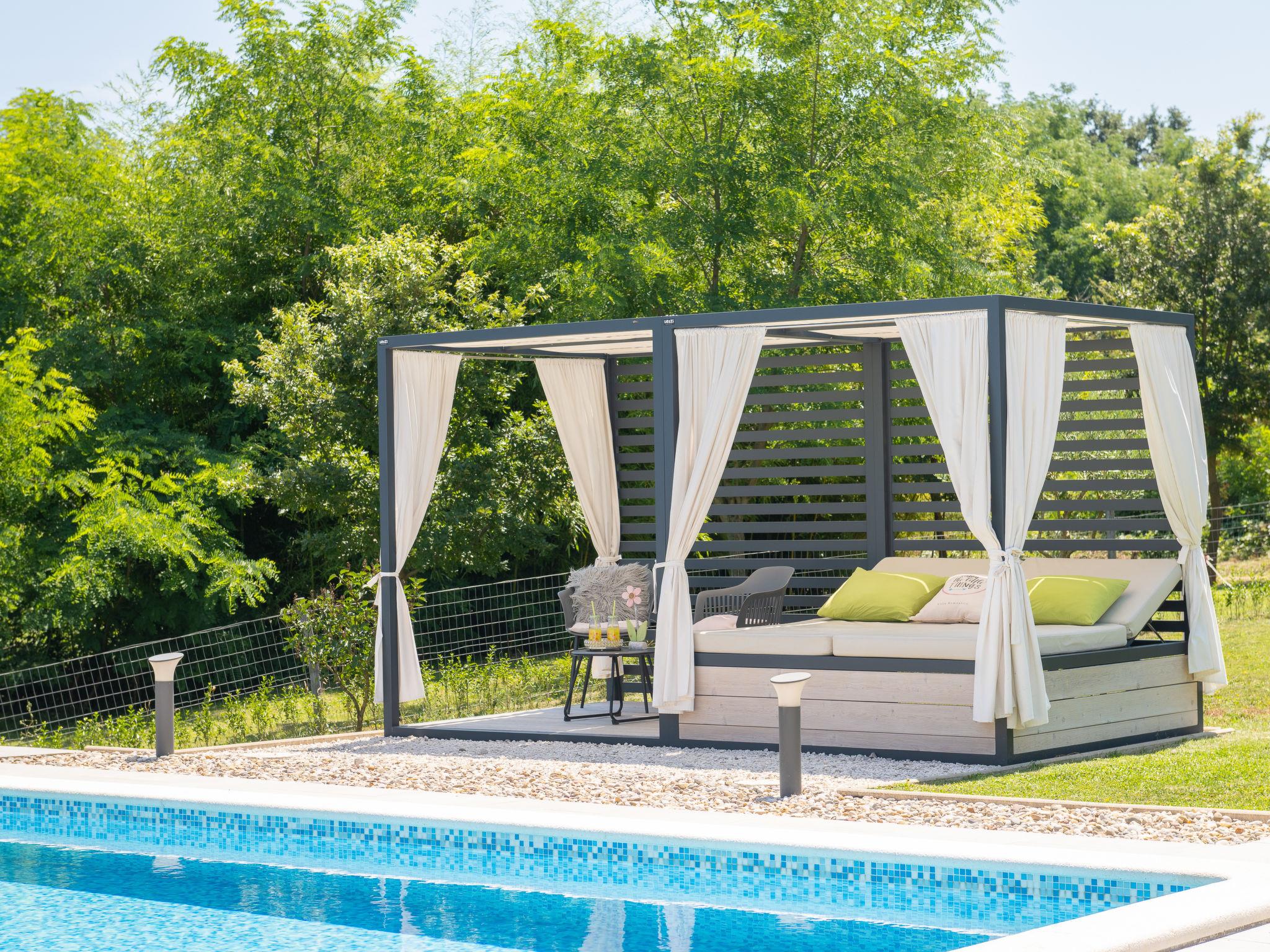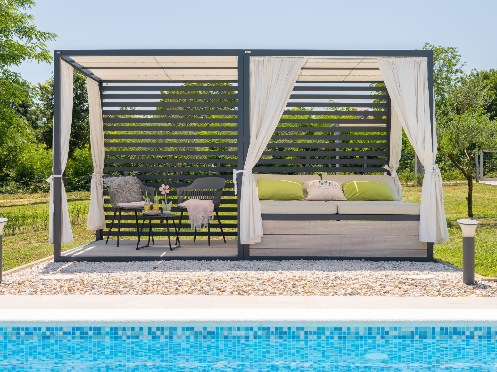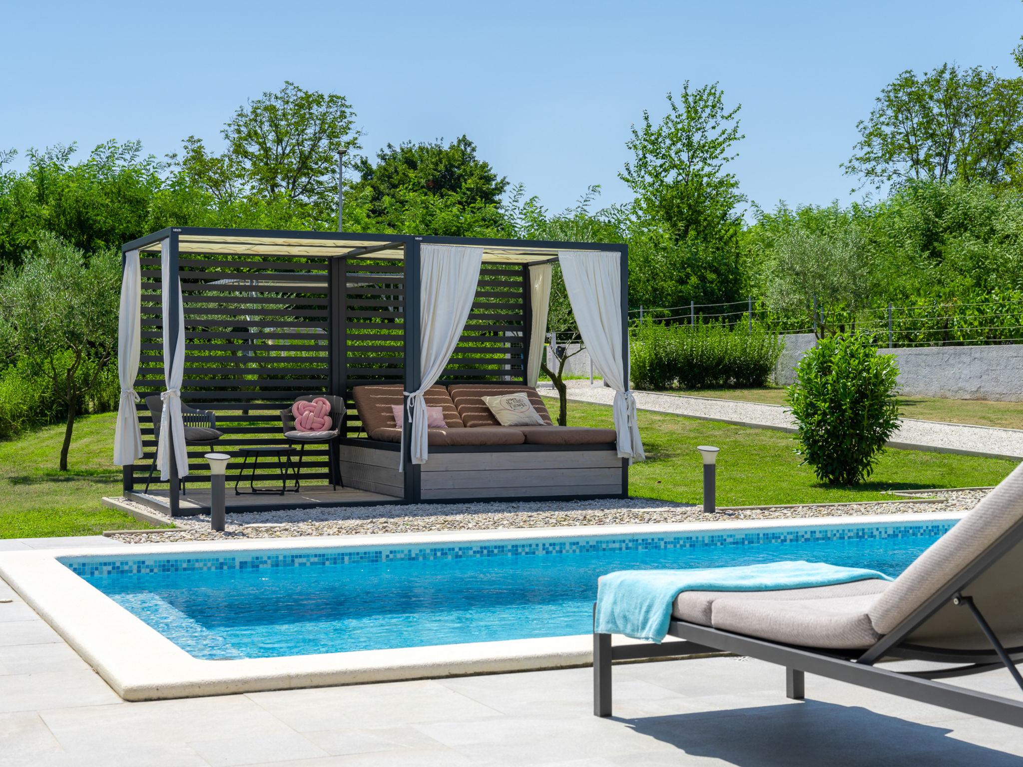 Small, cosy single-family house "Villa Romantica". In the hamlet Županici 7 km from the centre of Labin, 15 km from the centre of Rabac, in a quiet, sunny position, 15 km from the sea. Private: property 1'000 m2 (fenced) with lawn and wildlife garden, swimming pool angular, heated (8 x 4 m, depth 140 cm, seasonal availability: 01.Jan. - 13.Dec.) with internal staircase. Outdoor shower, terrace, barbecue, pool maintenance by the owner/gardener. In the house: internet access, sauna, hot tub (all included), washing machine. Parking at the house on the premises. Shop 2 km, supermarket 7 km, restaurant 2 km, bus stop "Labin" 7 km, pebble beach 15 km. Please note: airfield 45 km from the property. Outdoor kitchen (cooking stove, refrigerator). Swimming pool heated (extra). It is necessary to announce 7 days in advance if the heating (extra) is required.