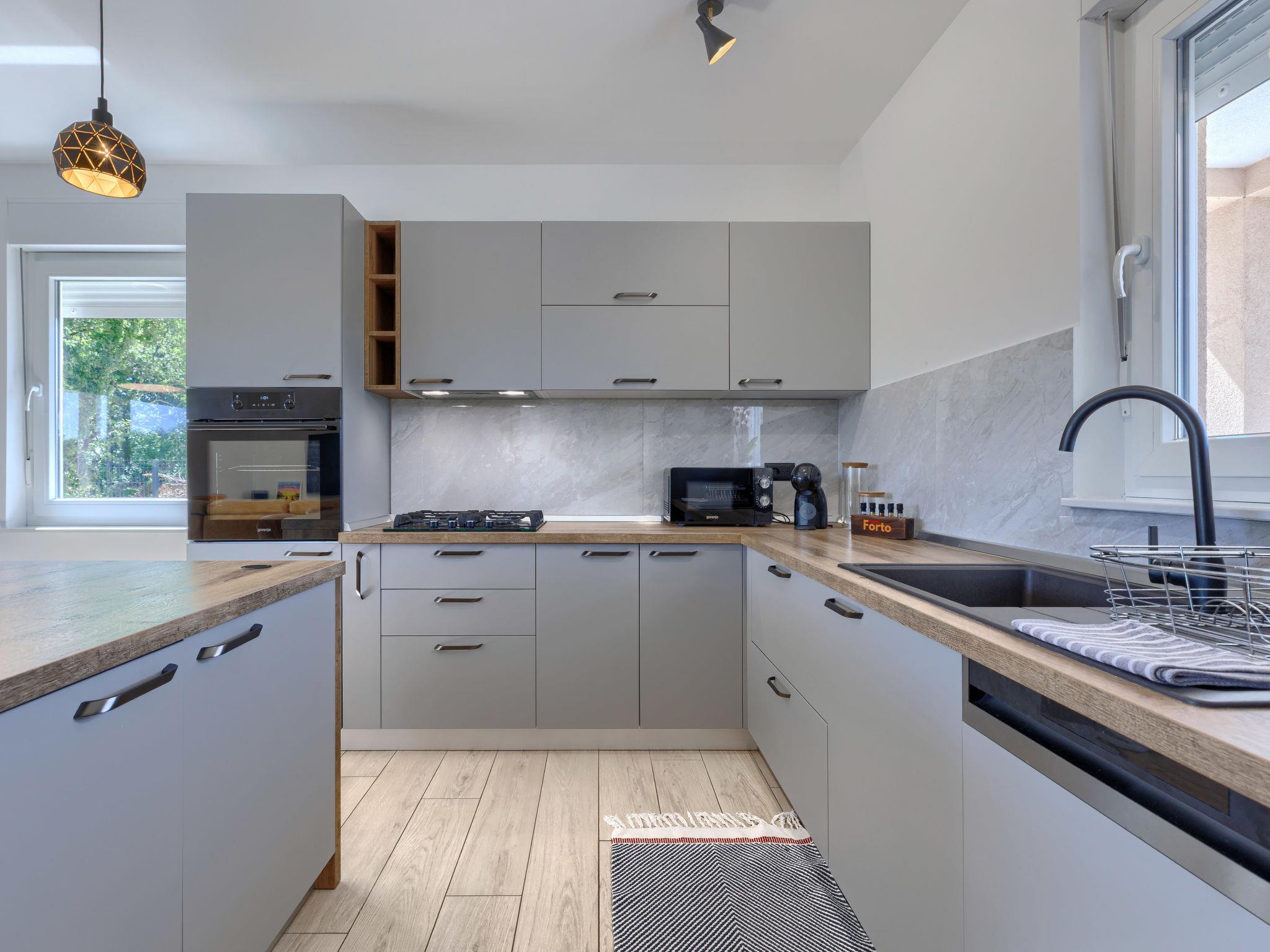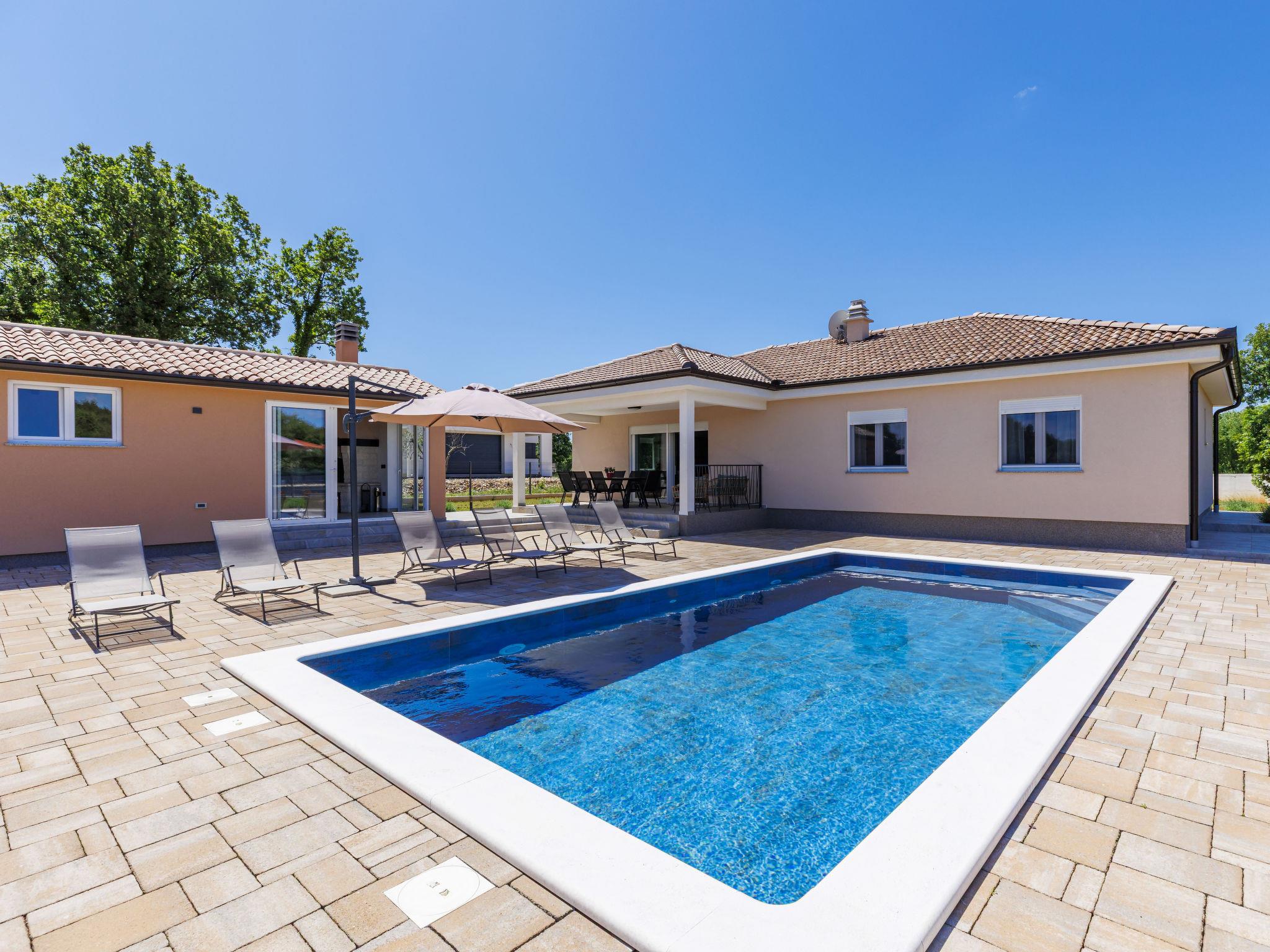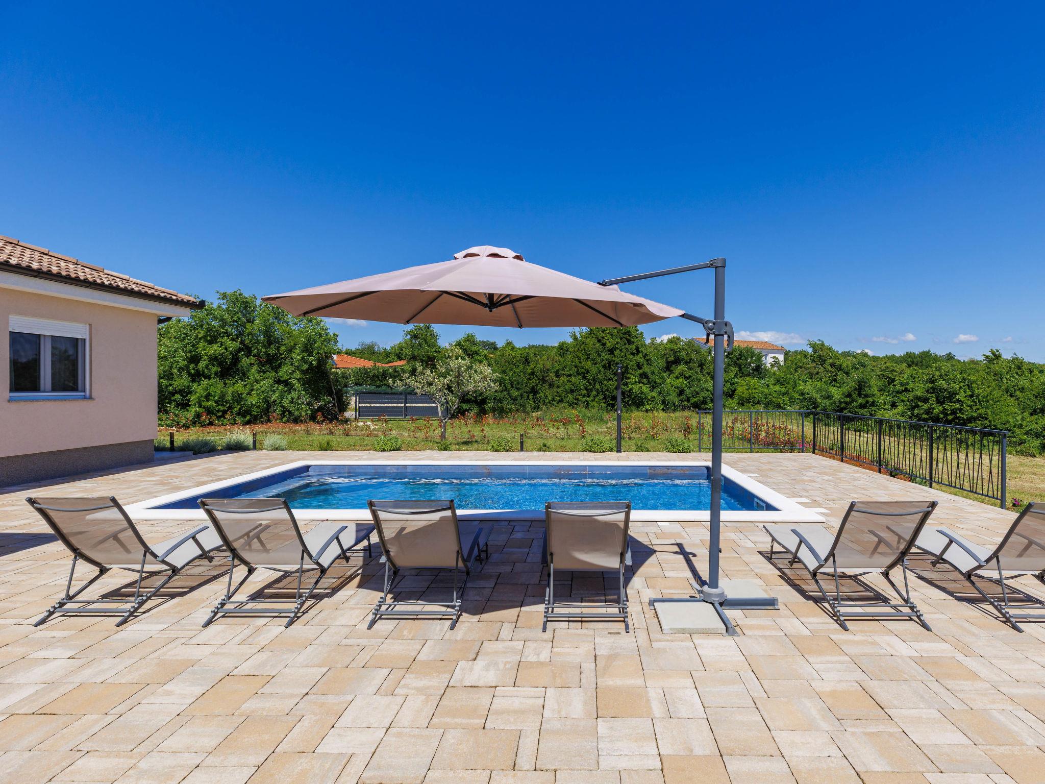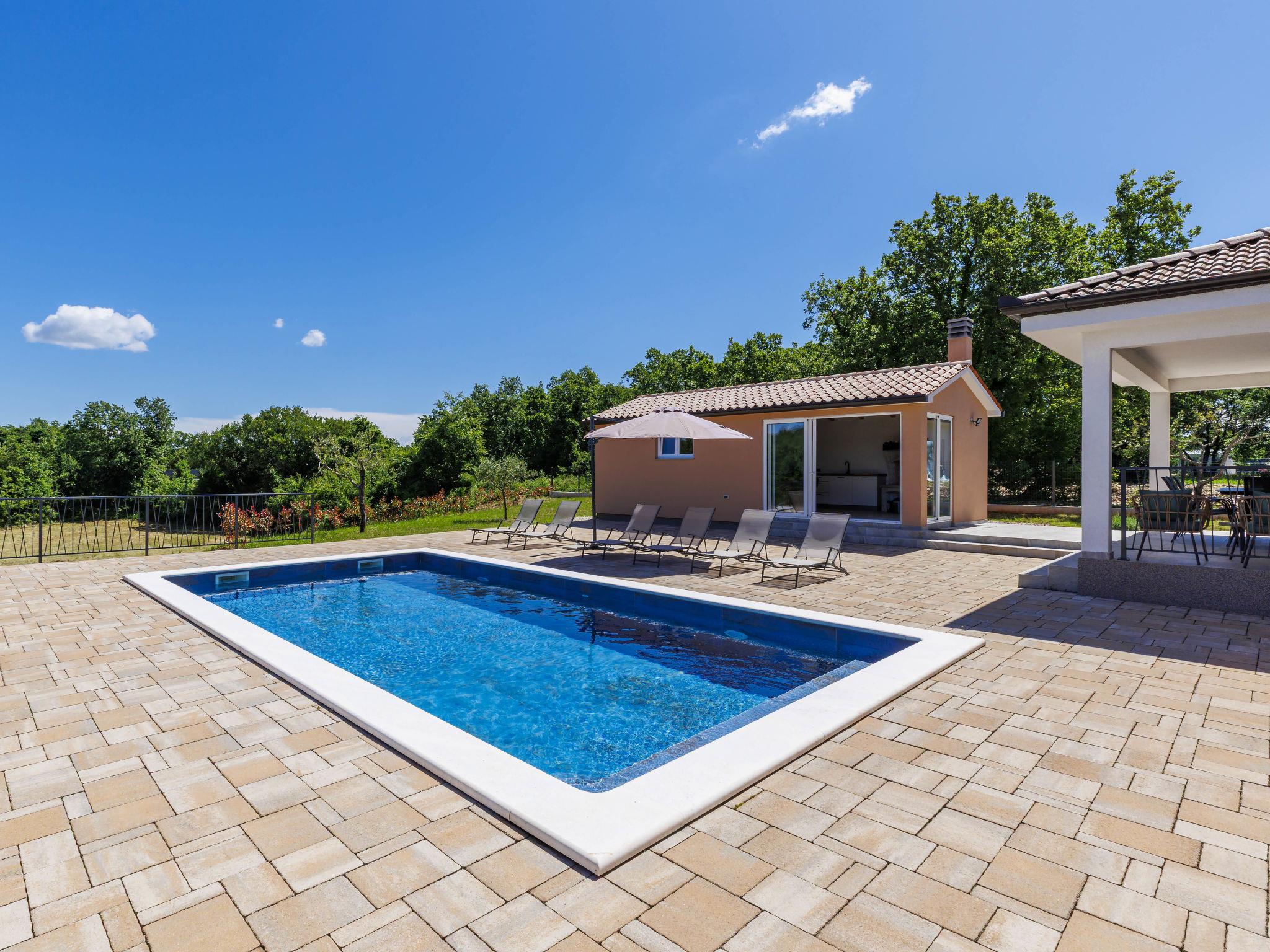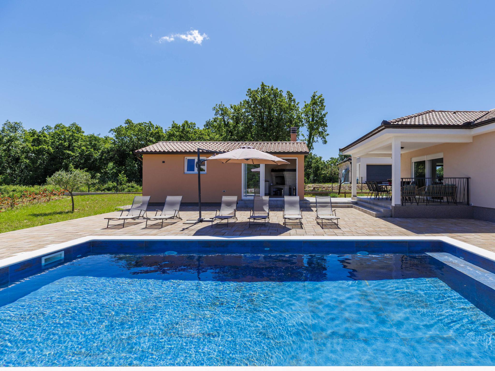Cosy single-family house "Villa Fortuna". In the hamlet Kunj 10 km from the centre of Labin, 15 km from the centre of Rabac, in a quiet, sunny position, 15 km from the sea. Private: property 2'000 m2 with lawn and wildlife garden, swimming pool angular (8 x 4 m, depth 140 cm, seasonal availability: 01.May. - 30.Oct.) with internal staircase. Outdoor shower, table tennis, terrace, barbecue, pool maintenance by the owner/gardener. In the house: WiFi, washing machine. Parking (for 4 cars) at the house on the premises. Shop 4 km, supermarket 10 km, restaurant 6 km, bus stop "Labin" 10 km, pebble beach 15 km. Please note: airfield 48 km from the property.