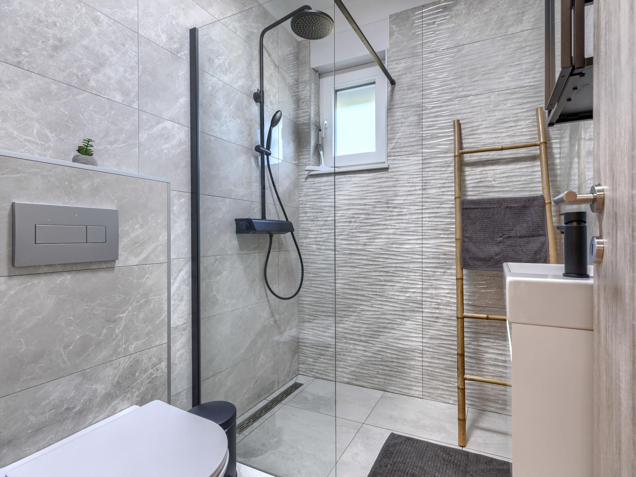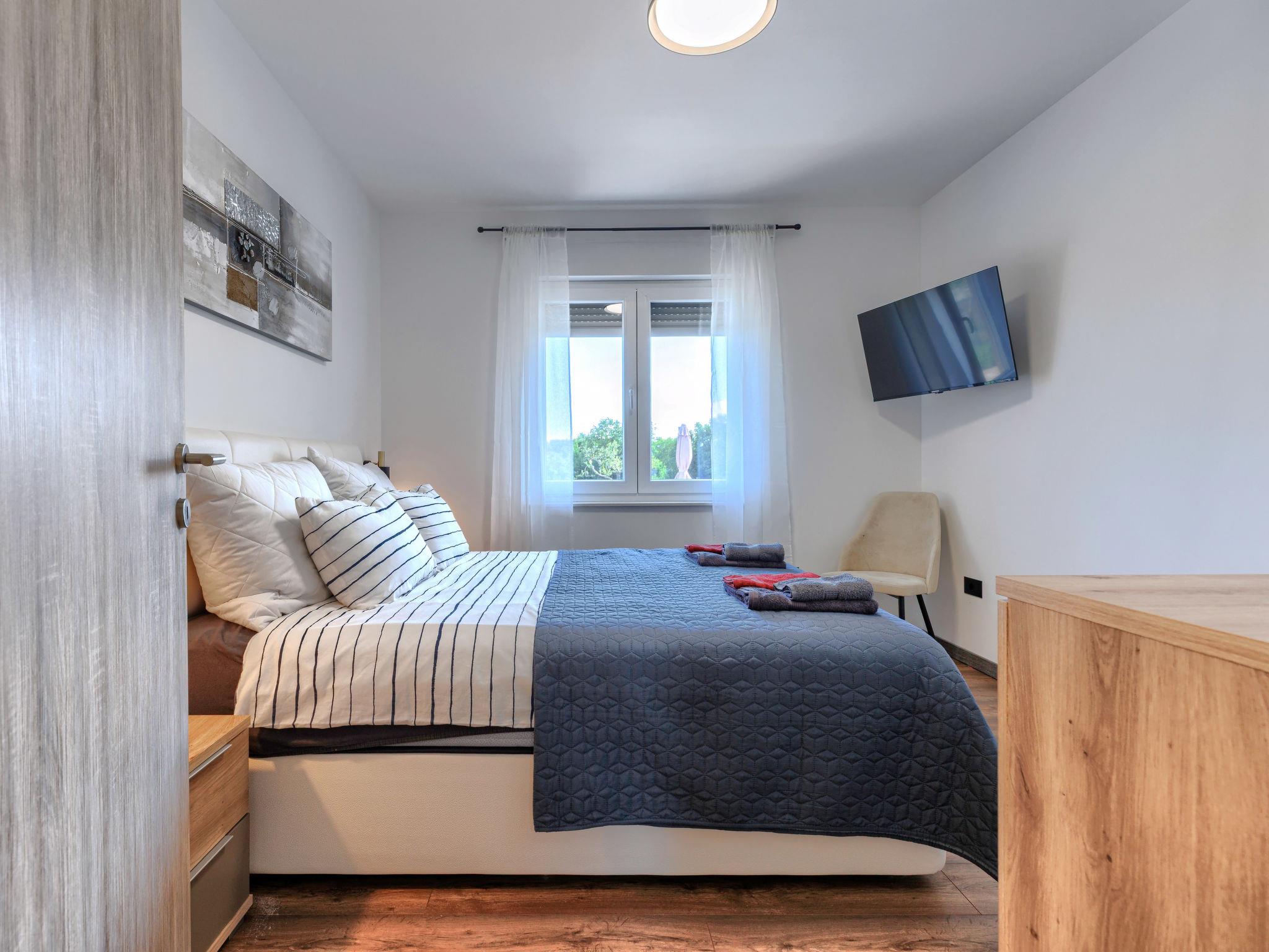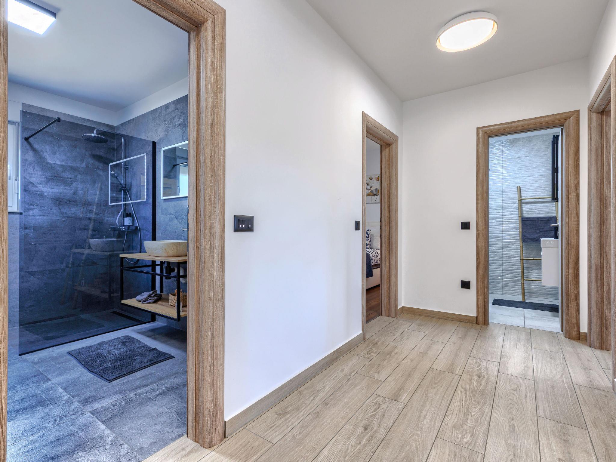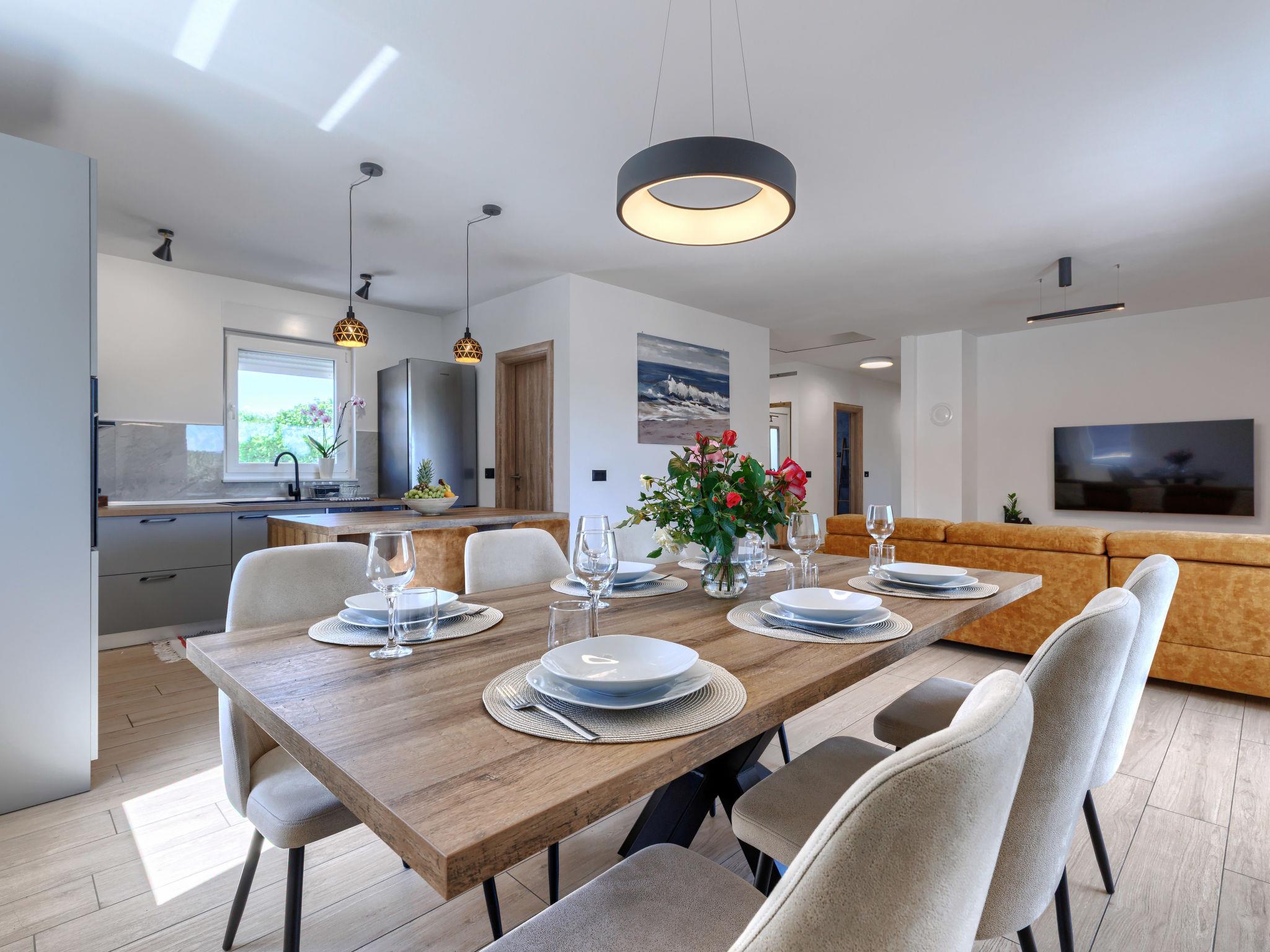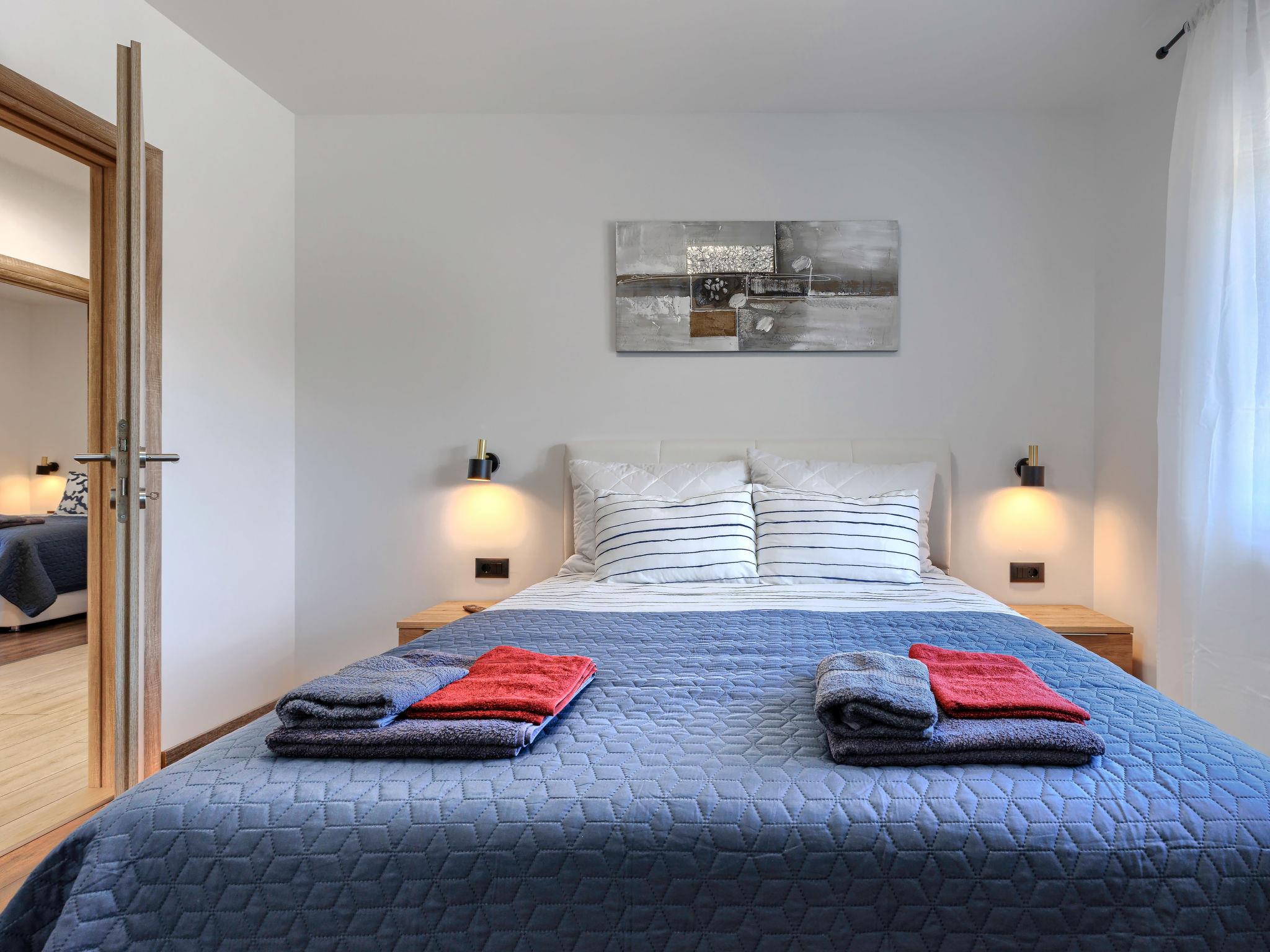 Cosy single-family house "Villa Fortuna". In the hamlet Kunj 10 km from the centre of Labin, 15 km from the centre of Rabac, in a quiet, sunny position, 15 km from the sea. Private: property 2'000 m2 with lawn and wildlife garden, swimming pool angular (8 x 4 m, depth 140 cm, seasonal availability: 01.May. - 30.Oct.) with internal staircase. Outdoor shower, table tennis, terrace, barbecue, pool maintenance by the owner/gardener. In the house: WiFi, washing machine. Parking (for 4 cars) at the house on the premises. Shop 4 km, supermarket 10 km, restaurant 6 km, bus stop "Labin" 10 km, pebble beach 15 km. Please note: airfield 48 km from the property.