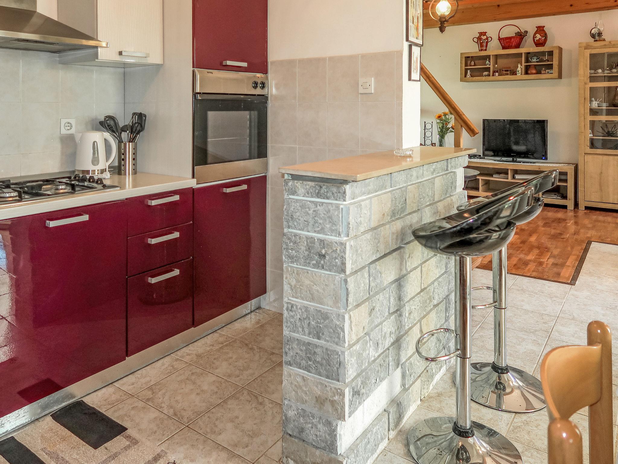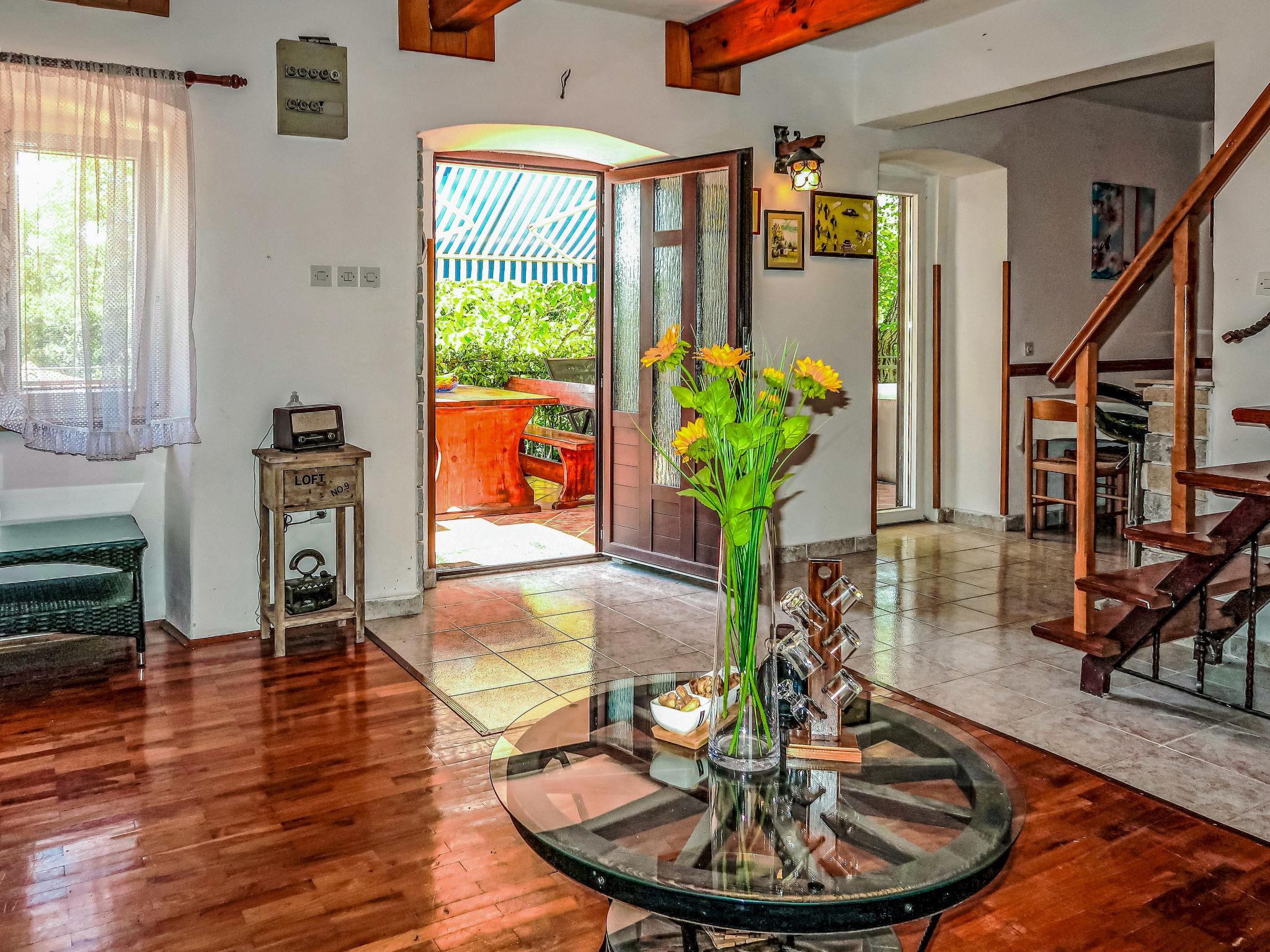 Single-family house "Marija", 2 storeys. In the hamlet Jurazini 1 km from the centre of Nedešcina, 7 km from the centre of Labin, 13 km from the centre of Rabac. Private: property 200 m2 with wildlife garden. Hot tub, terrace, barbecue (slide, swing). In the house: WiFi, washing machine. Available: bicycles (5). Parking (for 2 cars) at the house on the premises. Shop 1 km, supermarket 5 km, restaurant 1 km, bus stop "Labin" 7 km, pebble beach 13 km. Please note: airfield 50 km from the property.