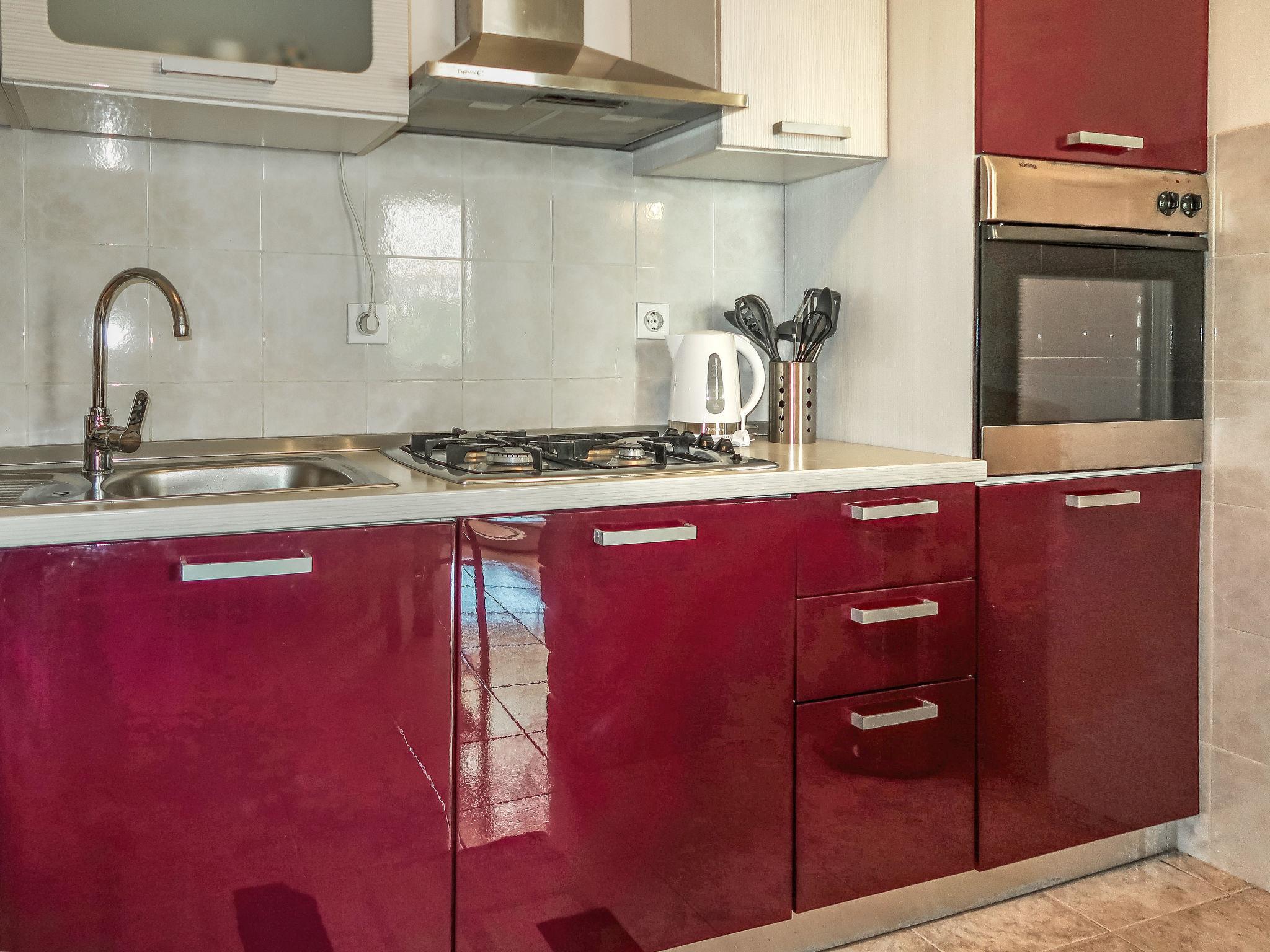 4-room house 80 m2 on 2 levels. Living/dining room with satellite TV. Exit to the terrace. Open kitchen (1 hot plate, oven, dishwasher, 3 gas rings, toaster, kettle, microwave, freezer, electric coffee machine). Shower/WC. Upper floor: entrance hall with air conditioning. 1 room with 1 french bed (160 cm, length 200 cm). 1 room with 1 french bed (180 cm, length 200 cm). 1 room with 2 beds (90 cm, length 200 cm). Shower/WC. No heating option. Terrace 30 m2 partly roofed. Terrace furniture. Facilities: iron, hair dryer. Internet (WiFi, free). Please note: non-smoking house. Maximum 1 pet/ dog allowed.