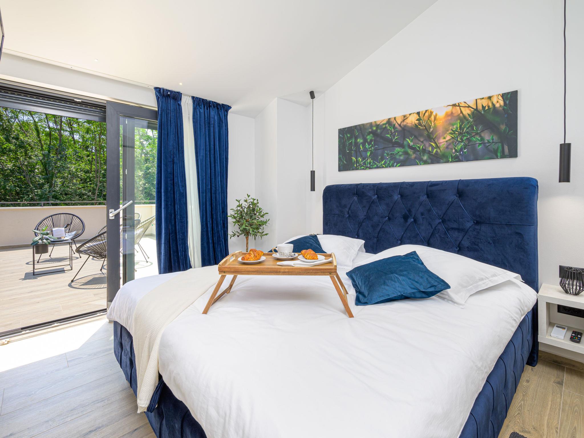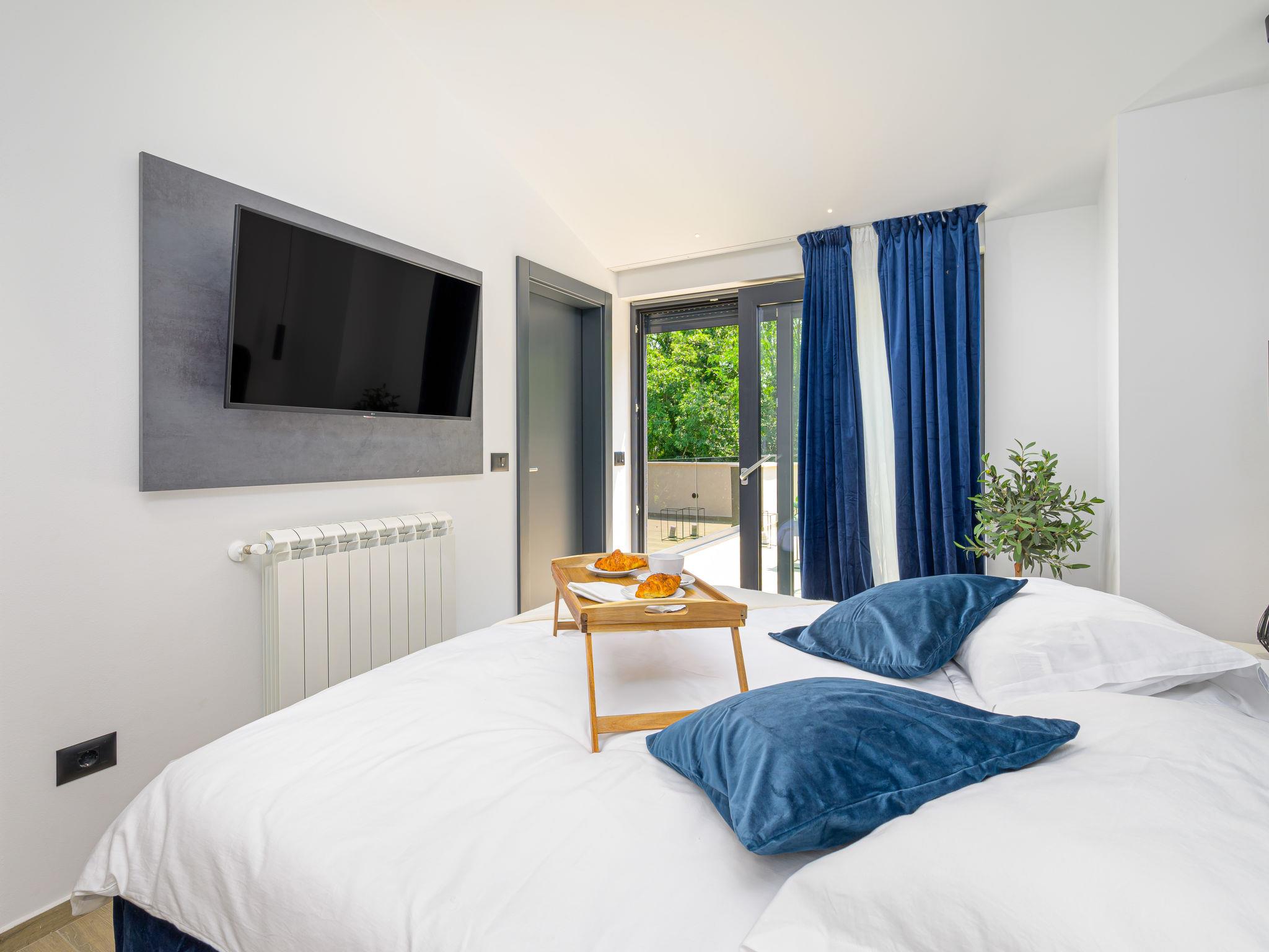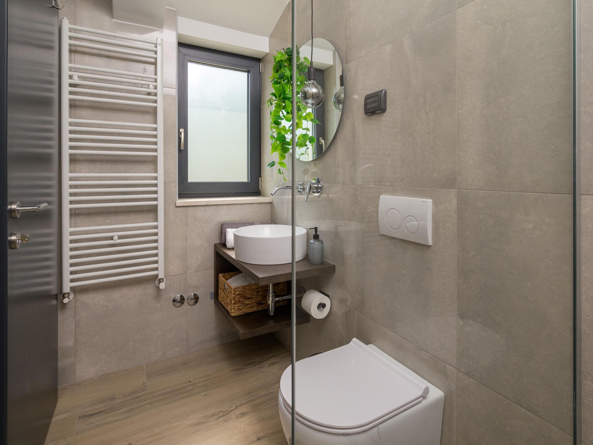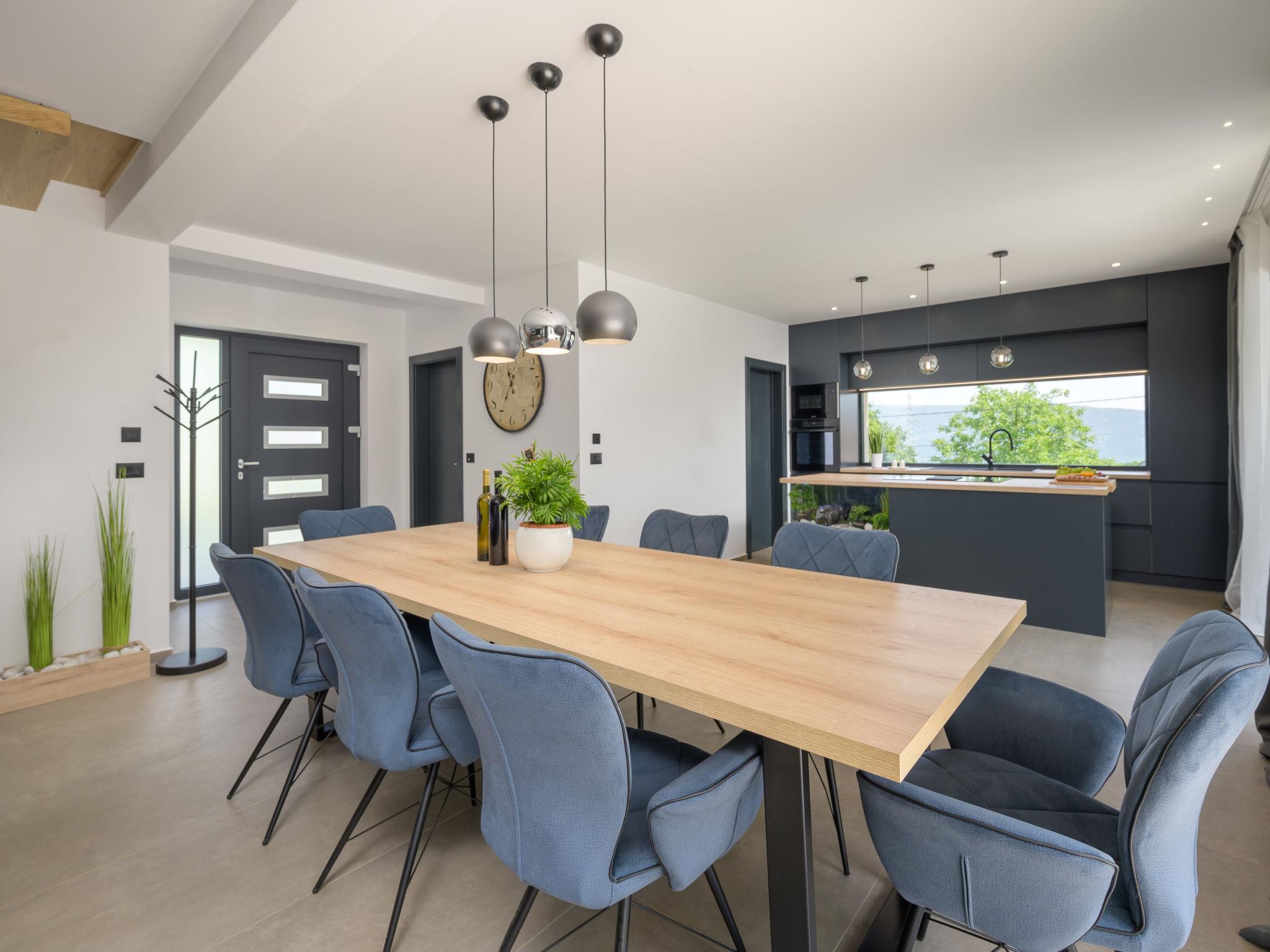 Very beautiful, luxurious villa "Ollea", 3 storeys. In the hamlet Radovici 10 km from the centre of Labin, 15 km from the centre of Rabac, 15 km from the sea. Private: property 900 m2 (fenced) with wildlife garden and trees, swimming pool angular (8 x 4 m, depth 150 cm, seasonal availability: 01.Apr. - 30.Oct.) with internal staircase. Outdoor shower, hot tub, table tennis, barbecue (slide, swing), pool maintenance by the owner/gardener. In the house: internet access, sauna, table football, washing machine, tumble dryer. Roofed, parking (for 4 cars) at the house on the premises. Shop 4 km, supermarket 10 km, restaurant 4 km, bus stop "Labin" 10 km, pebble beach 15 km. The owner does not accept any youth groups. Please note: airfield 53 km from the property. Video surveillance of the driveway and parking.