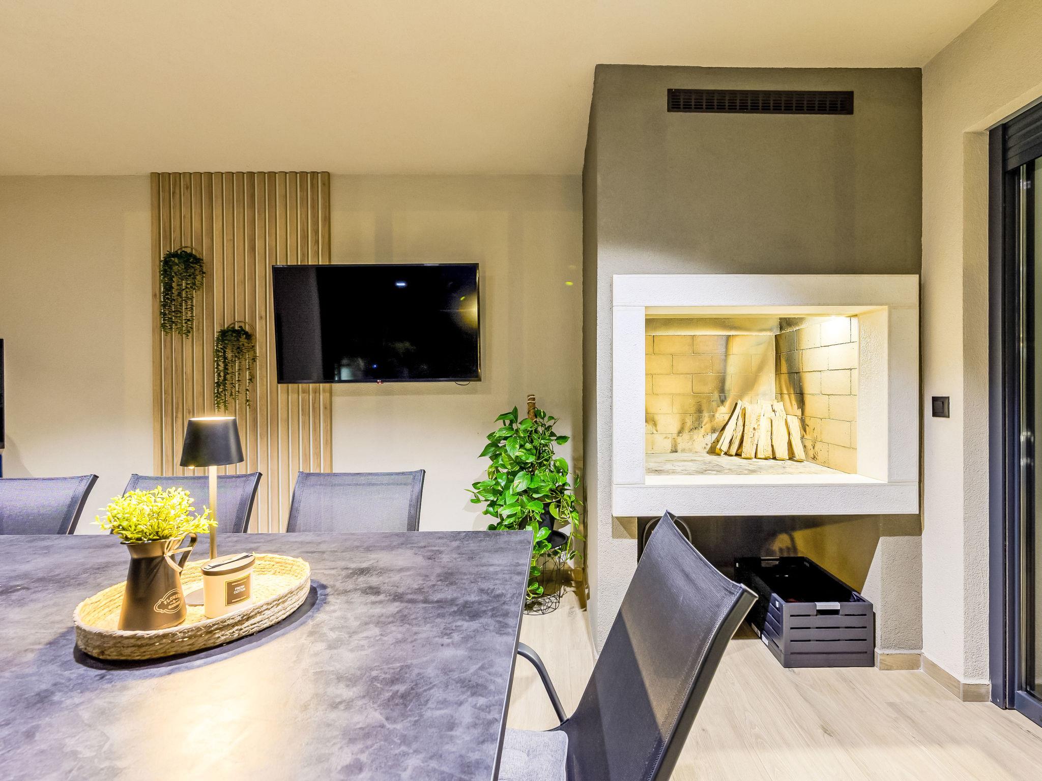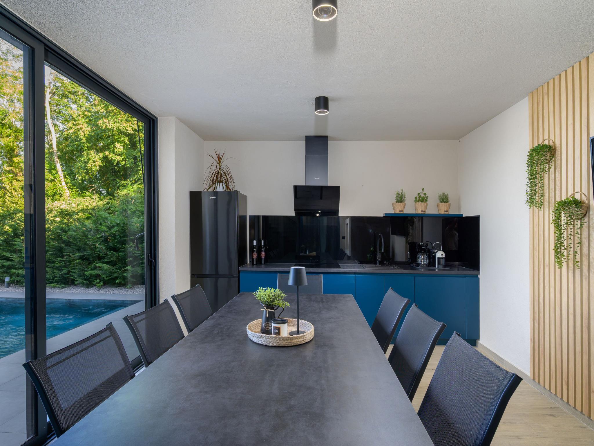 5-room villa 213 m2 on 3 levels. Dining room with kitchen corner and satellite TV. Exit to the terrace, to the swimming pool. Living/dining room with satellite TV and air conditioning. Exit to the terrace, to the swimming pool. Open kitchen (oven, dishwasher, 4 induction hot plates, toaster, kettle, microwave, freezer, electric coffee machine, cooking island). Exit to the terrace, to the swimming pool. Shower/WC. On the lower ground floor: 1 room with 1 french bed (180 cm, length 200 cm), satellite TV and air conditioning. Upper floor: 1 room with 1 french bed (180 cm, length 200 cm), shower/bidet/WC, satellite TV and air conditioning. Exit to the terrace. 1 room with 1 french bed (180 cm, length 200 cm), shower/WC, satellite TV and air conditioning. Exit to the terrace. 1 room with 1 french bed (160 cm, length 200 cm), shower/WC, satellite TV and air conditioning. Exit to the terrace. Forced-air heating. Terrace 30 m2 partly roofed terrace 35 m2 partly roofed. Terrace furniture, deck chairs. Facilities: safe, iron, hair dryer. Internet (WiFi, free). Please note: non-smoking house. Maximum 2 pets/ dogs allowed. Available: playstation 5 (included in the price).