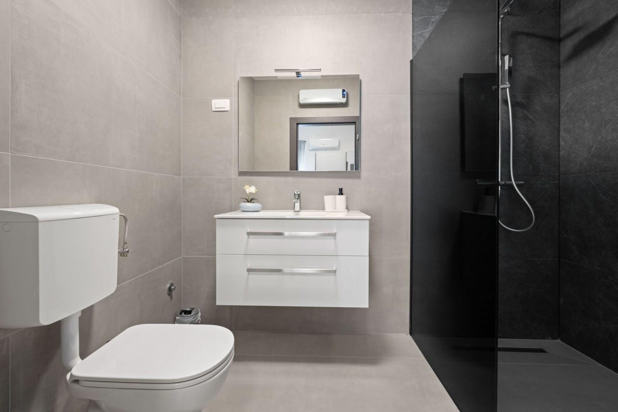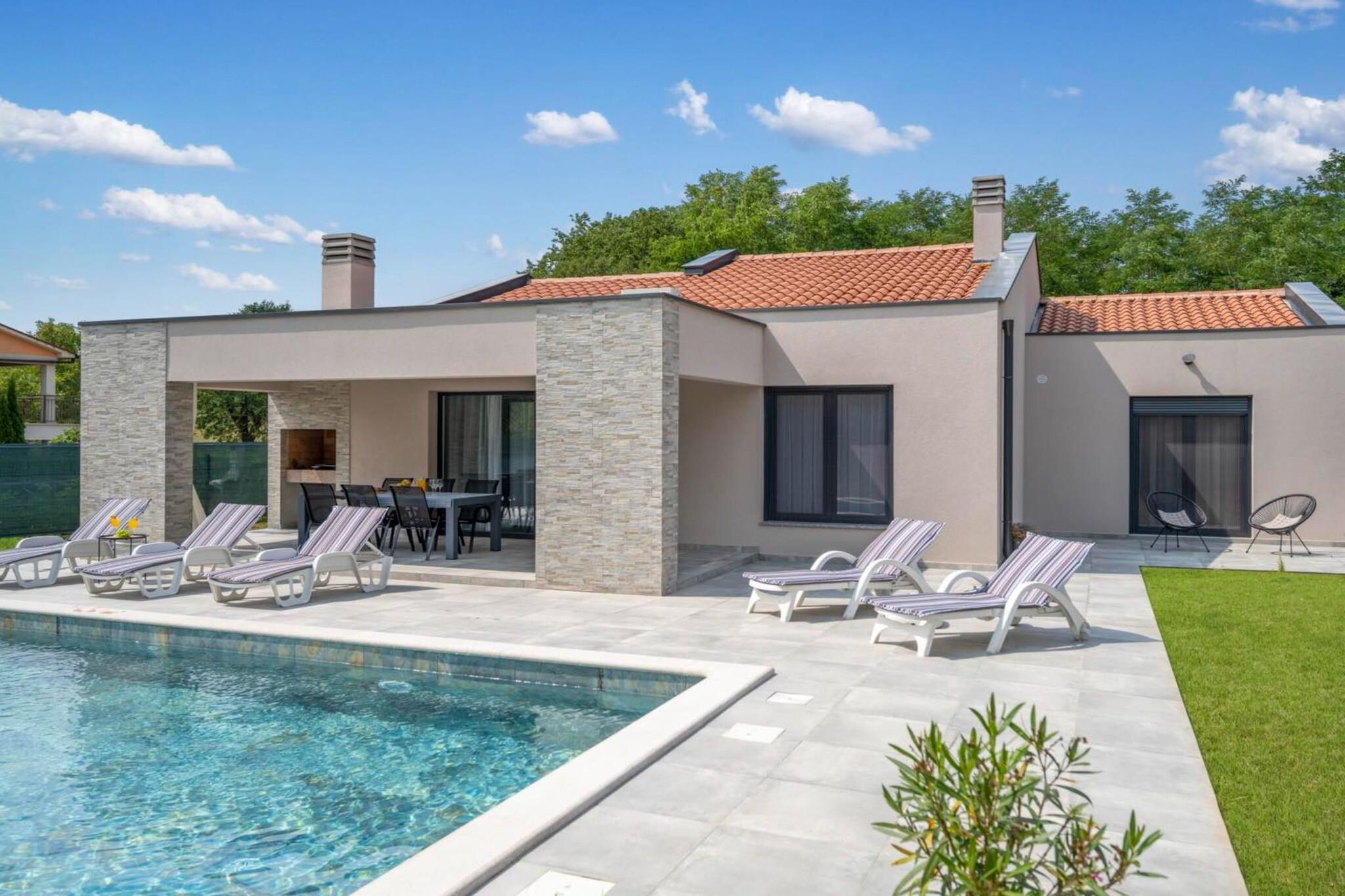 Villa SABINA - Santalezi is situated in Labin, Croatia, town nestled on the eastern coast of the Istrian peninsula. Renowned for its abundant history, exquisite architecture, and awe-inspiring natural landscapes, Labin presents visitors with a delightful fusion of cultural richness and outdoor escapades. Whether you're interested in historical sites, beach activities, local cuisine, or outdoor excursions. Note: Baby cot is available upon request. Baggage drop-off is available before Check In. Pets are allowed. BBQ facilities are at guests' disposal. Private parking, reservation is not required. Wi-Fi is provided throughout the property. The House is completely surrounded by the fence. This Three Bedroom Villa with Swimming Pool can accommodate up to 6 people. It features air- conditioning as well as Internet enabled, Satellite TV. Three Bedroom Villa with Swimming Pool is fitted with single bed, double beds and private bathroom. Thanks to its excellent location, everything you'll need for your vacation is just a short walk away from the property. Grocery store / supermarkets can be found within 3 km and café/ bar, restaurants—everything is within 1 km radius. The airport is 40 km away from the property.